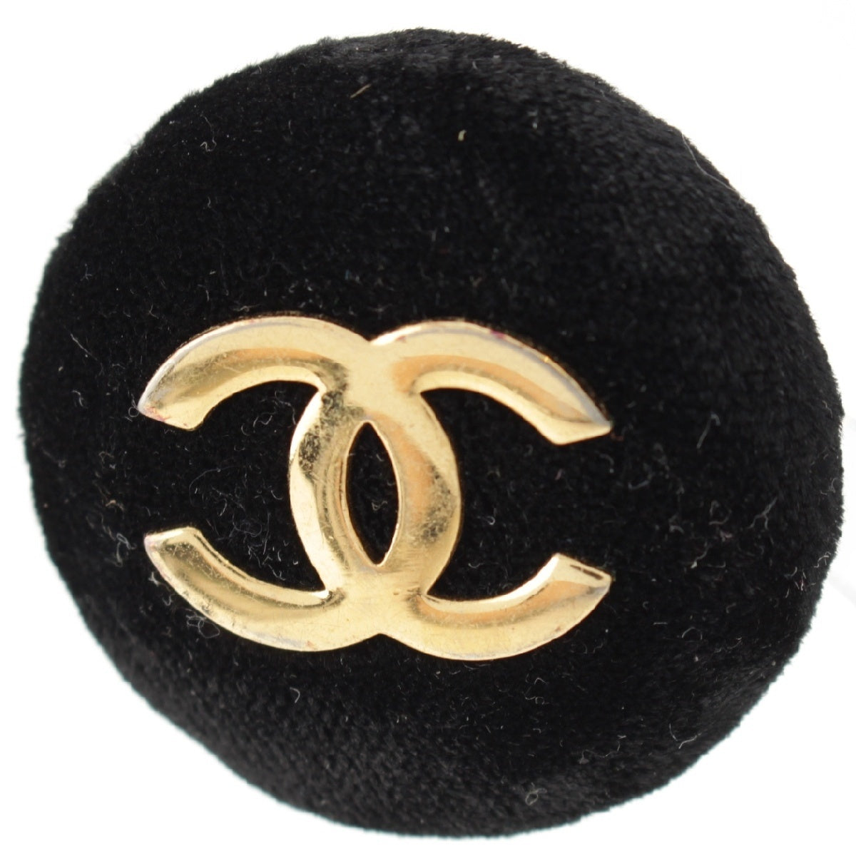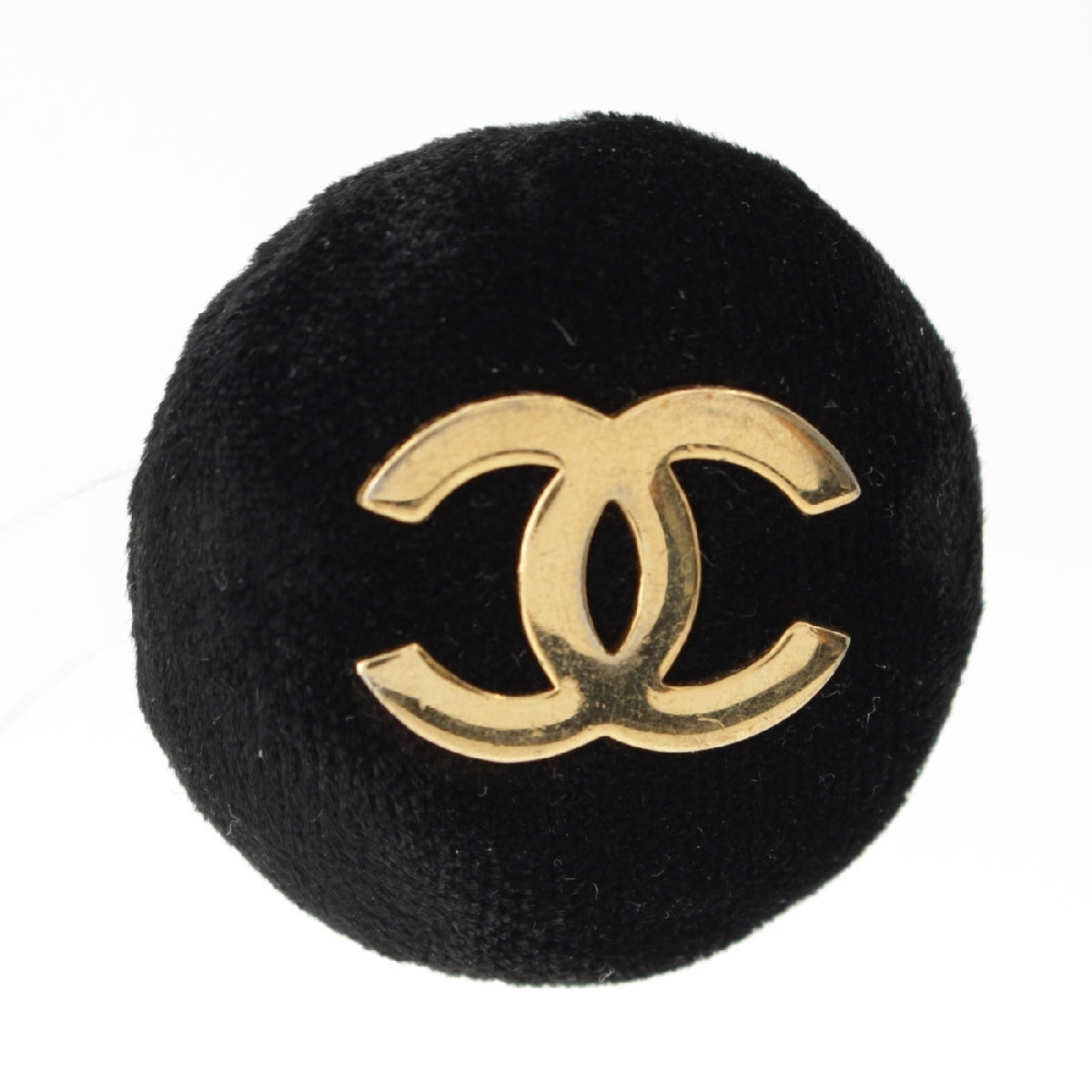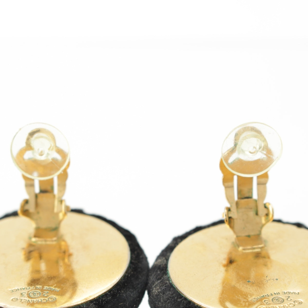 CHANEL 23 Velor Vintage COCO Mark Round Earring Pierce accessories black