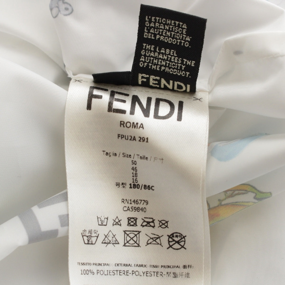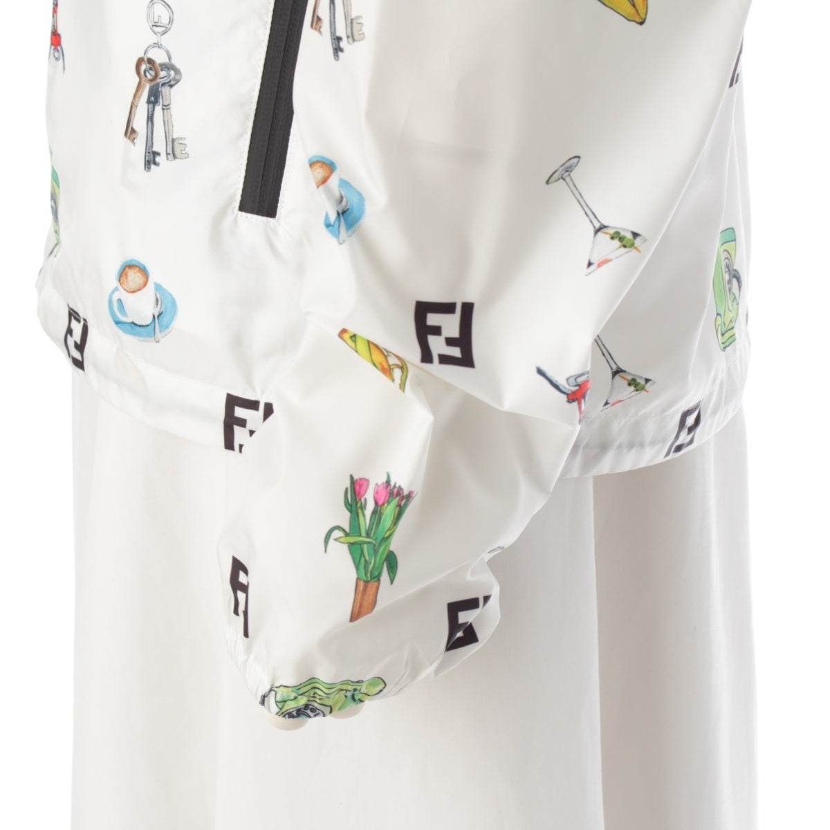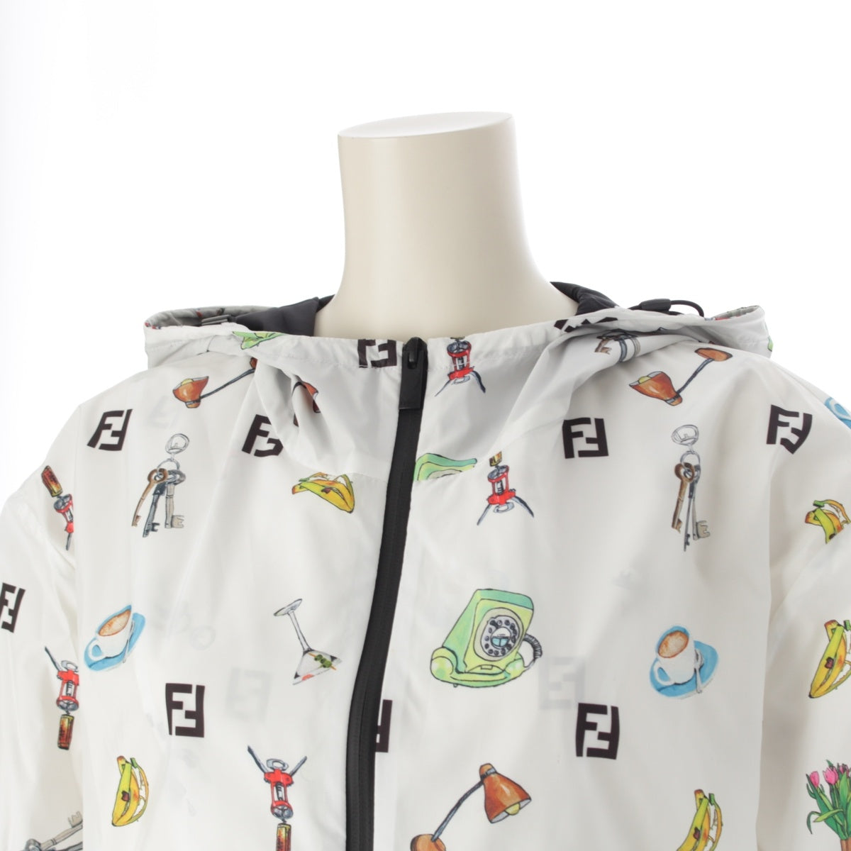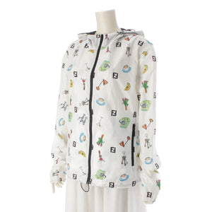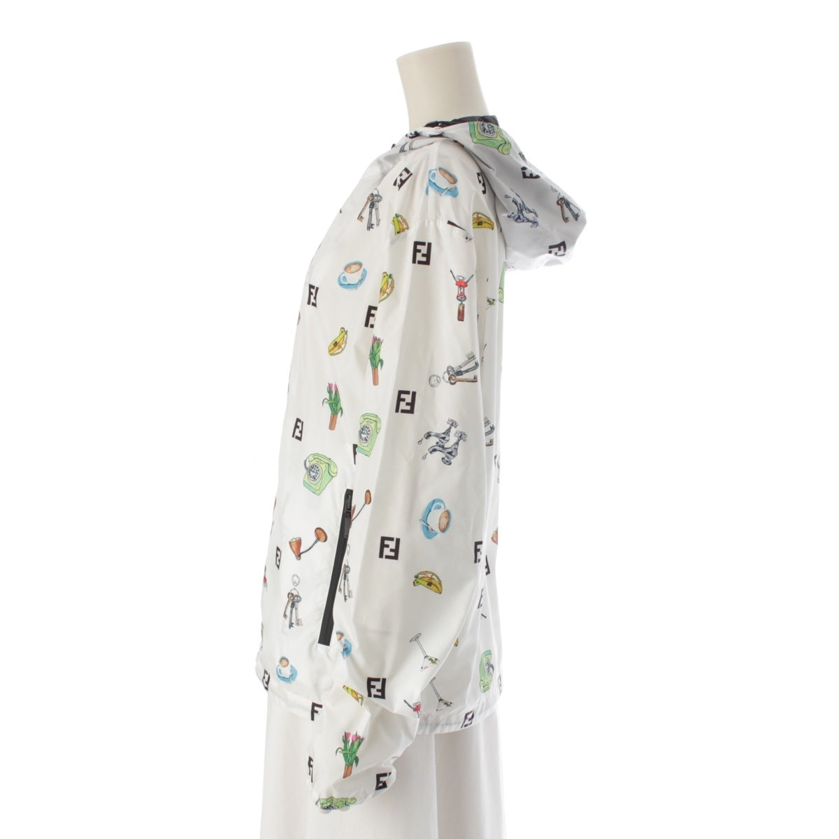 FENDI Logo All-over Print Zip-up Hood Jacket Windbreaker Blouson Tops white 48