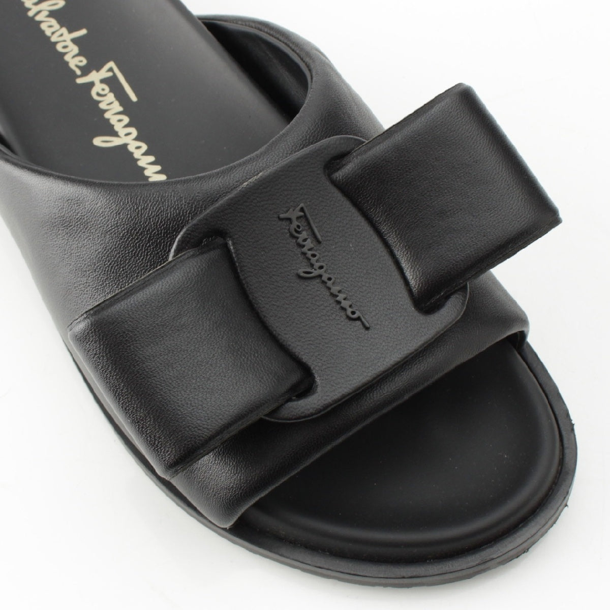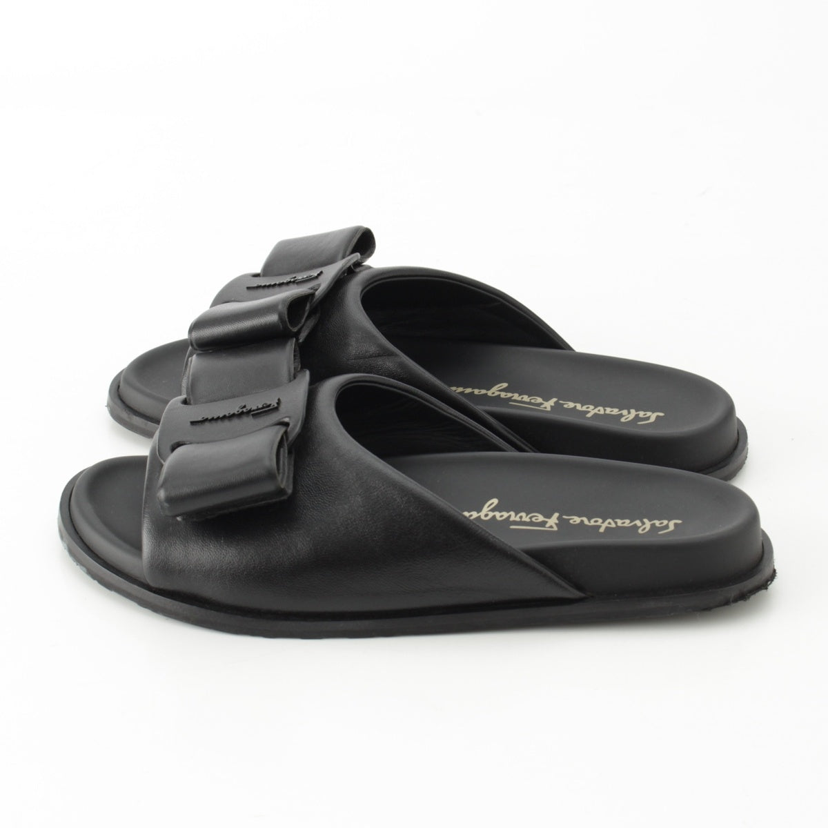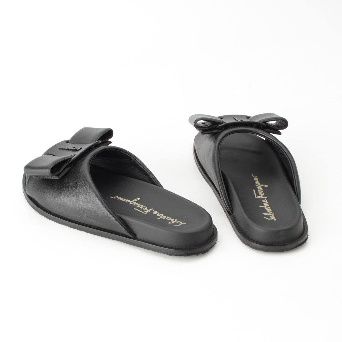 Salvatore Ferragamo leather Vara Ribbon Flats Sandals Mule Shoes 0745404 black 8