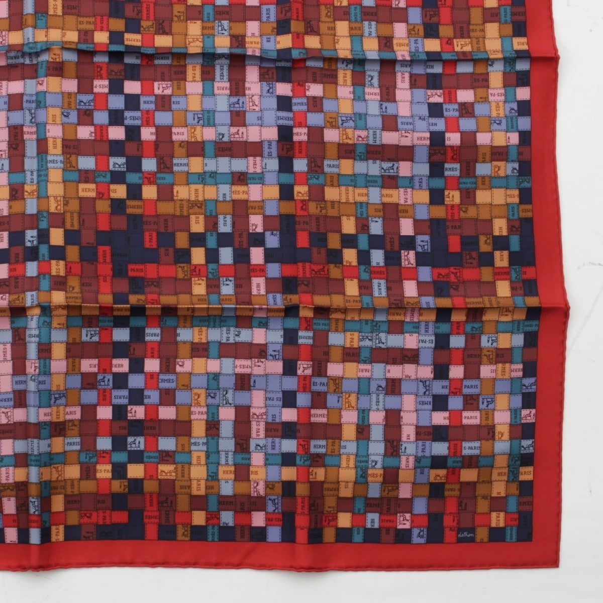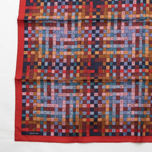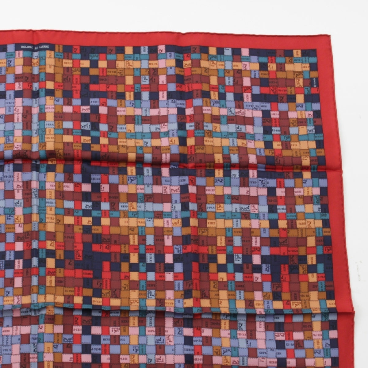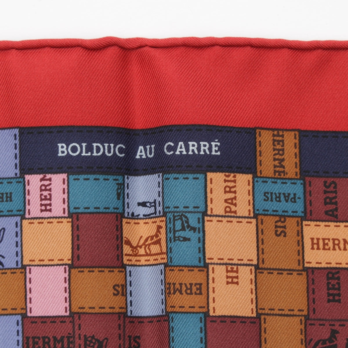 HERMES Calle 90 silk BOLDUC AU CARRE Bolduc check scarf Red