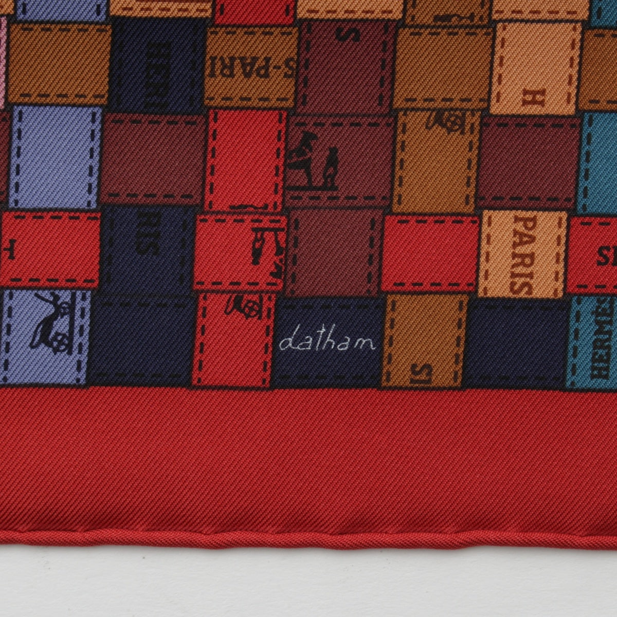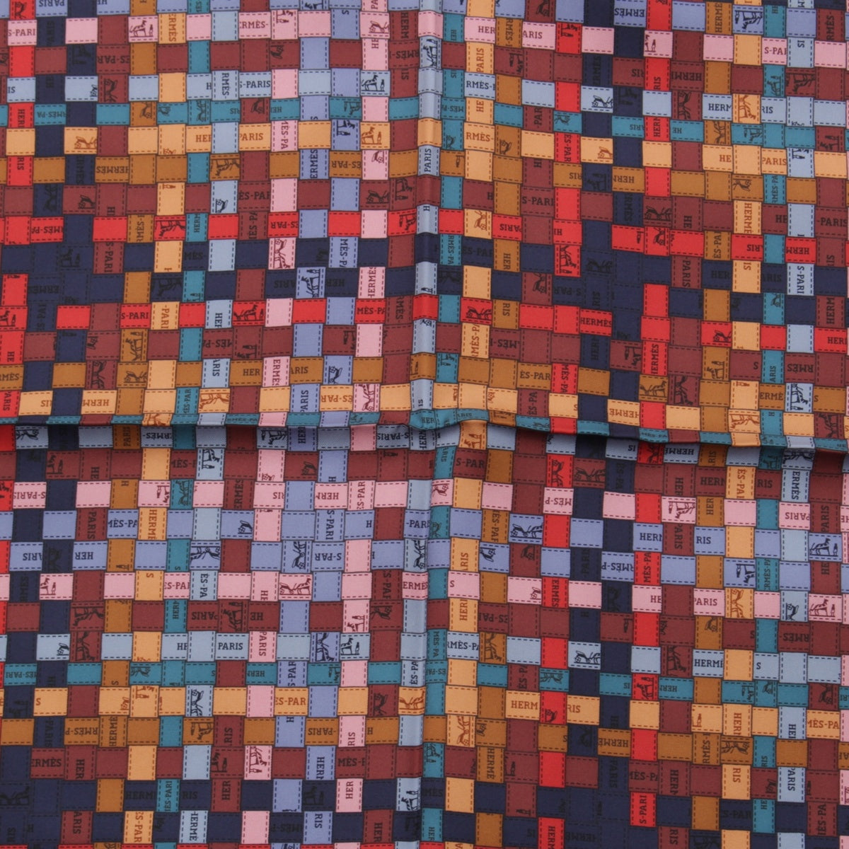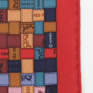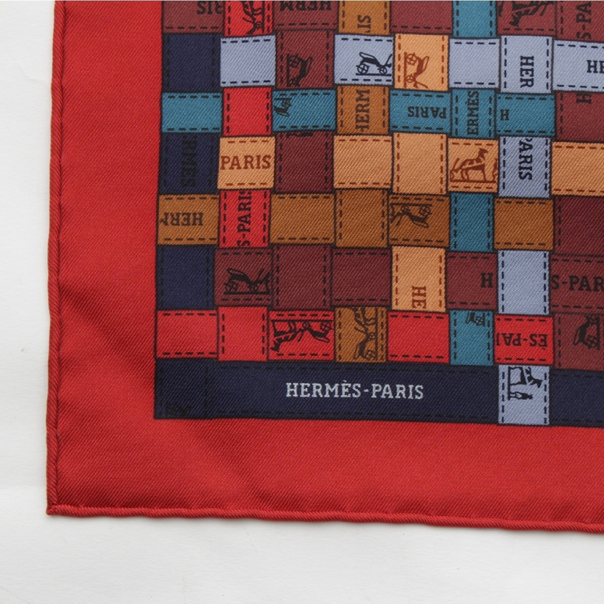 HERMES Calle 90 silk BOLDUC AU CARRE Bolduc check scarf Red