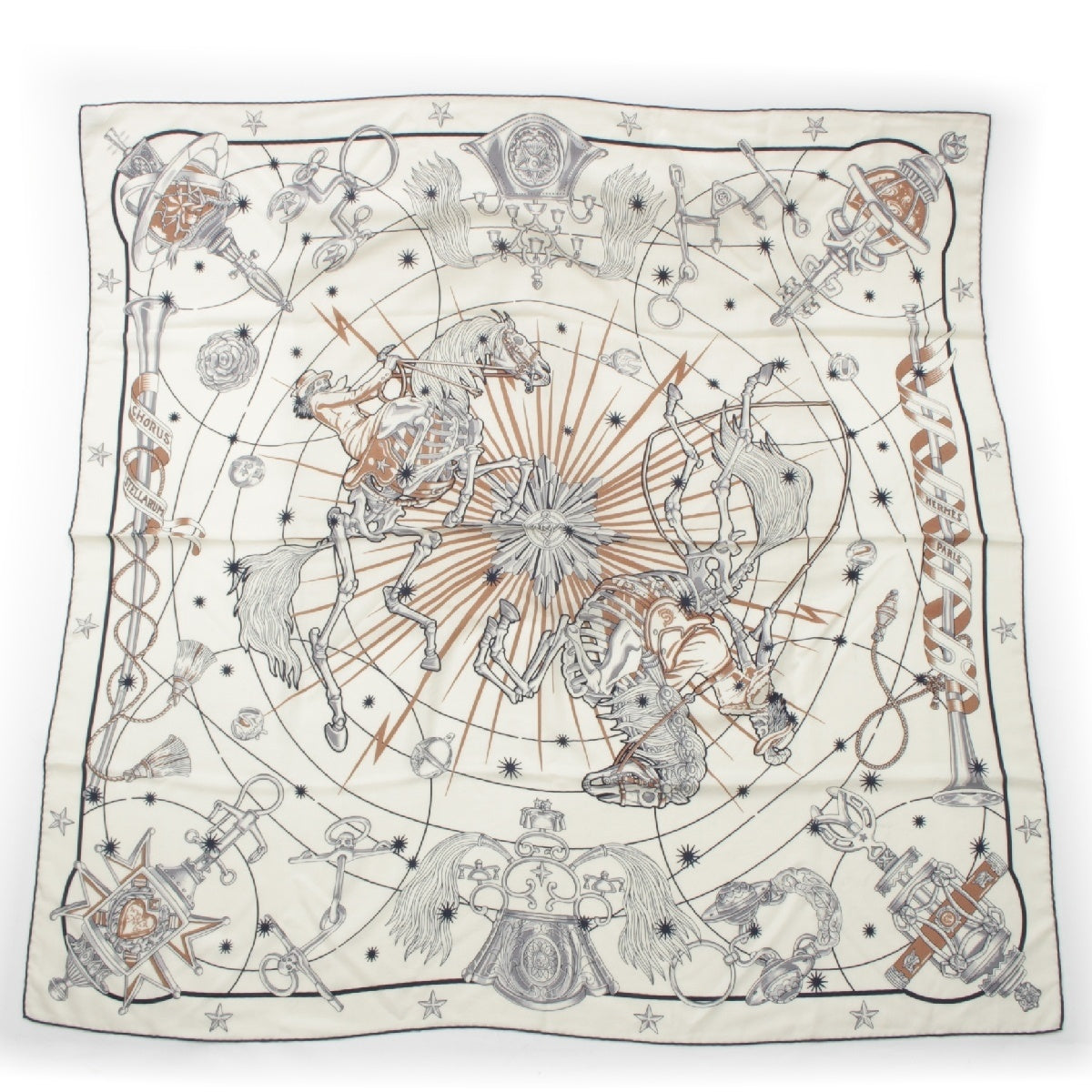 HERMES 25 years Calegean 140 cashmere silk CHORUS STELLARUM scarf Stall shawl white