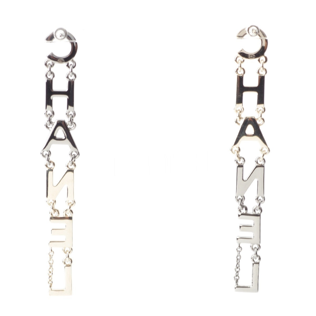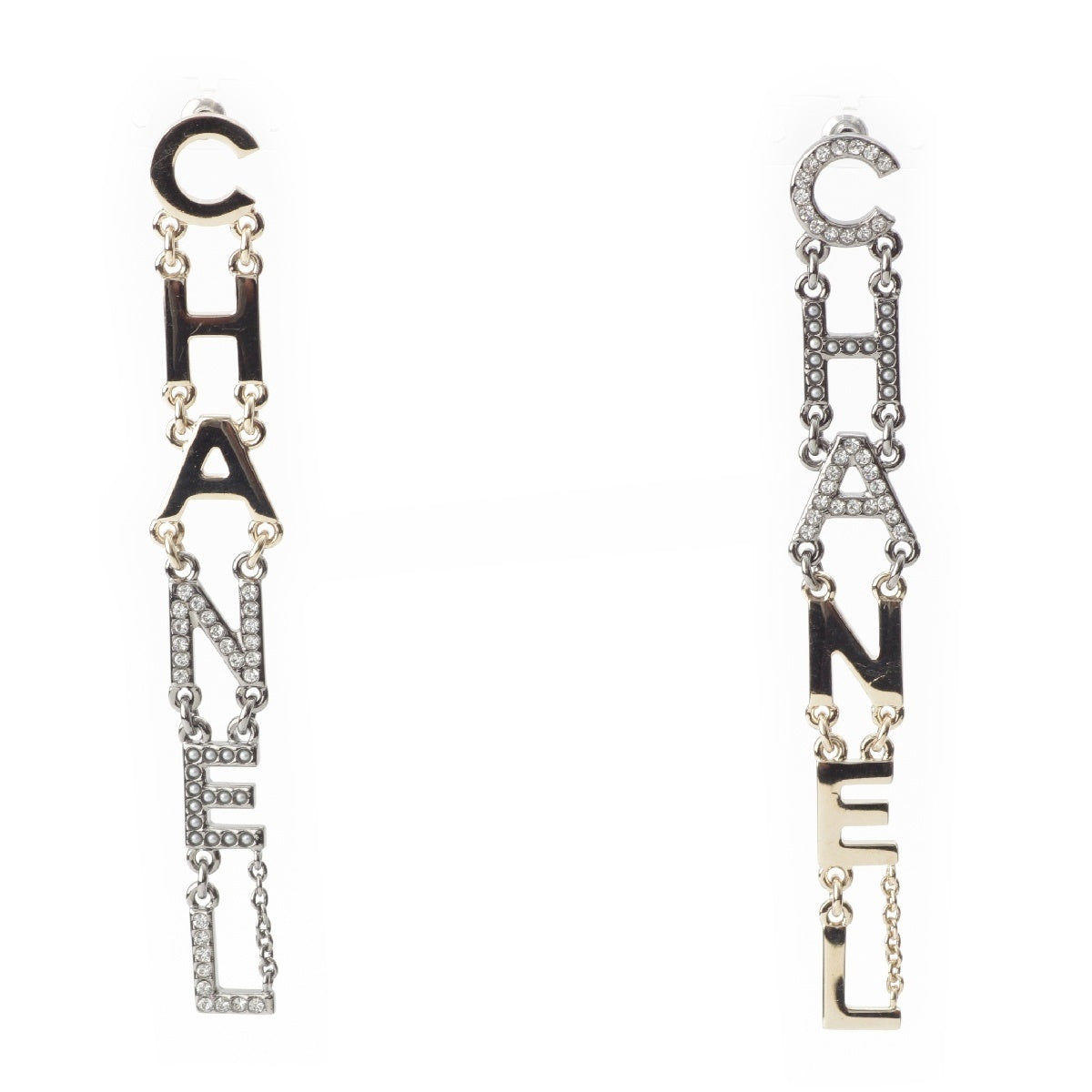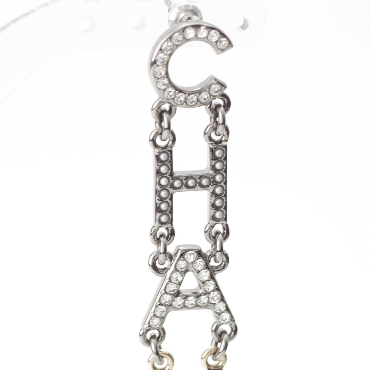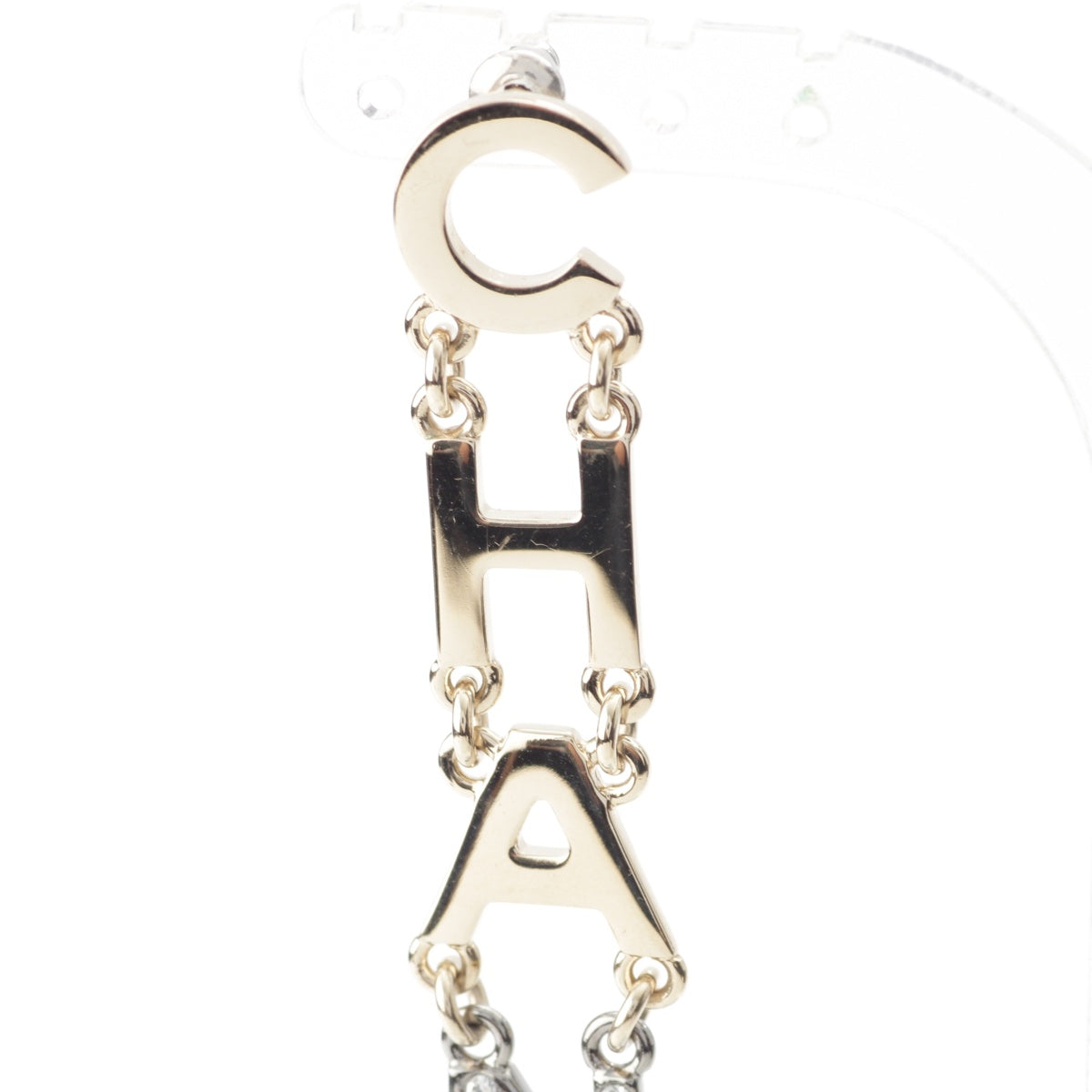 CHANEL B20P Gold Plated Metal Rhinestone Logo Pierce Accessories Gold silver