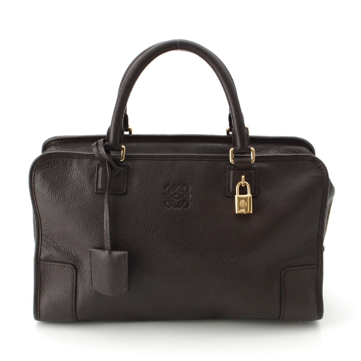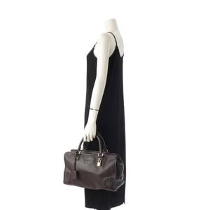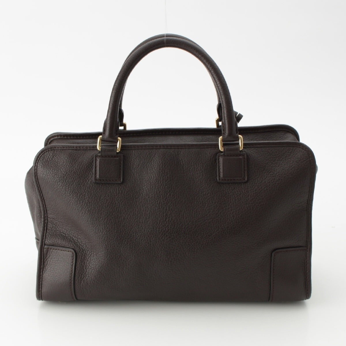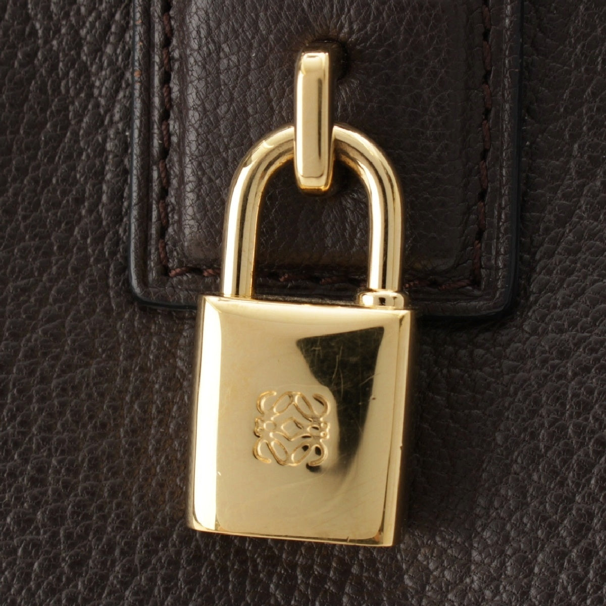 LOEWE Amazona 36 Leather genuine leather Handbag Embossed logo bag with lock Brown Gold Metal