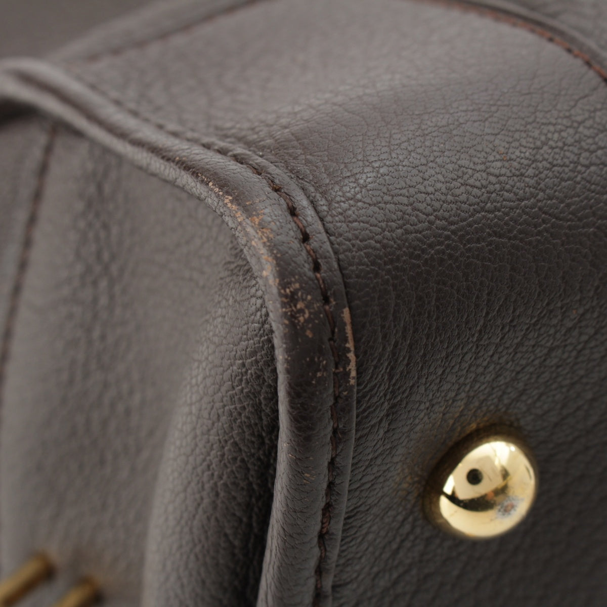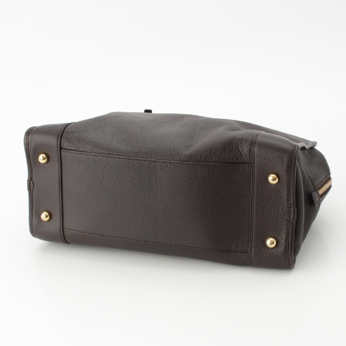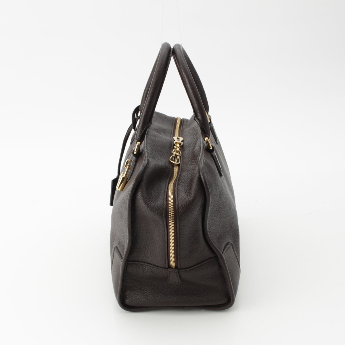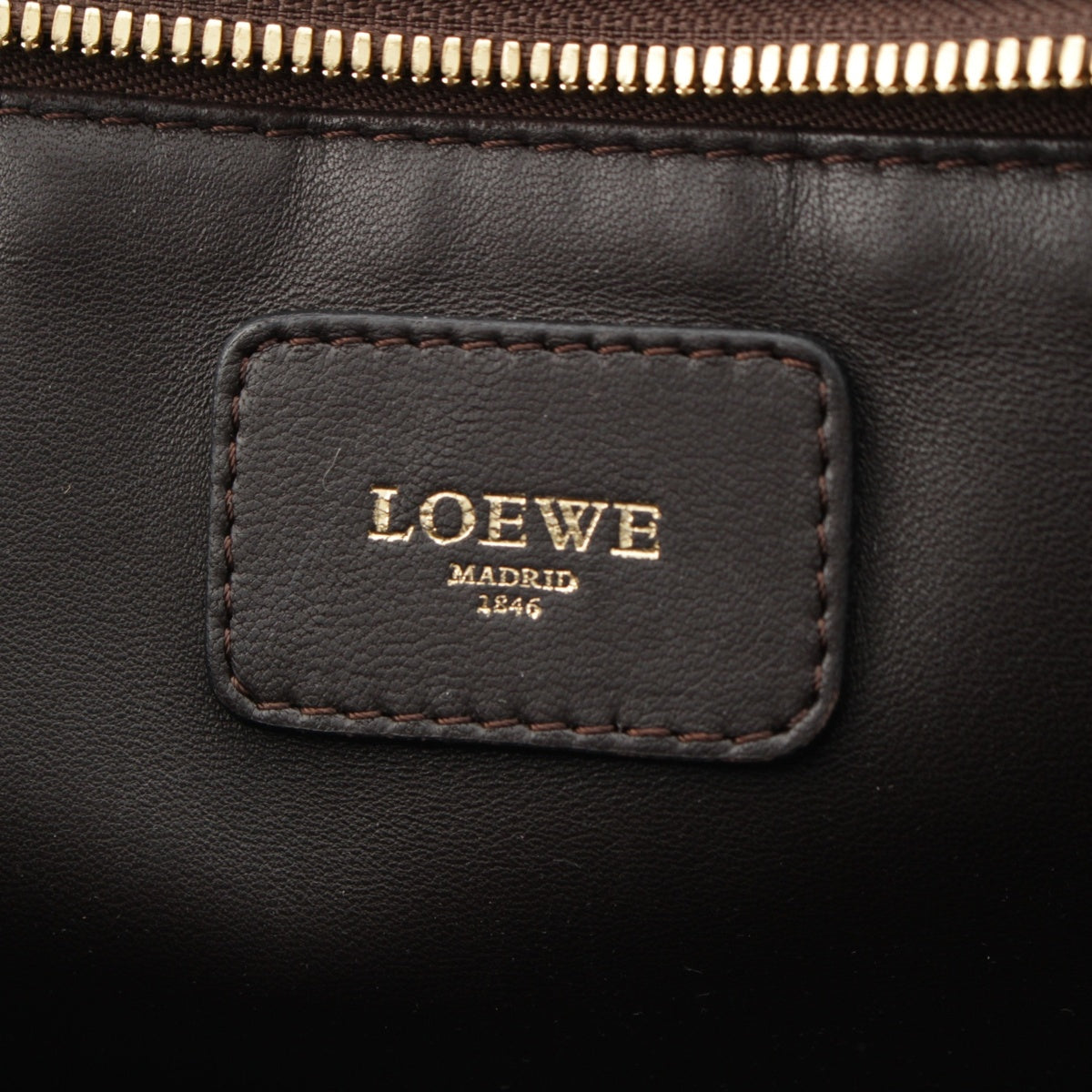 LOEWE Amazona 36 Leather genuine leather Handbag Embossed logo bag with lock Brown Gold Metal