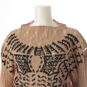 ISSEY MIYAKE Lace Pleated one piece Mini Dresses Pullovers Tops IM82‐FH922 beige M