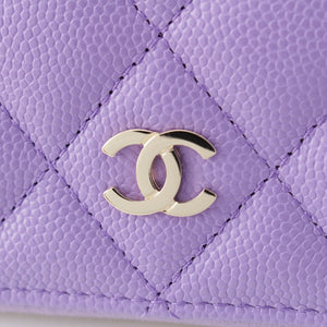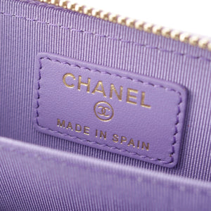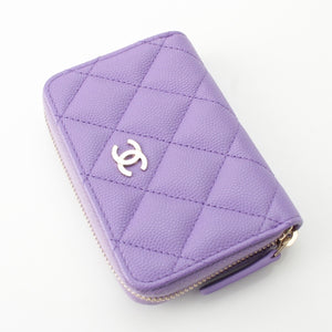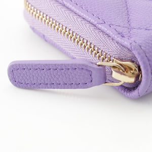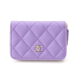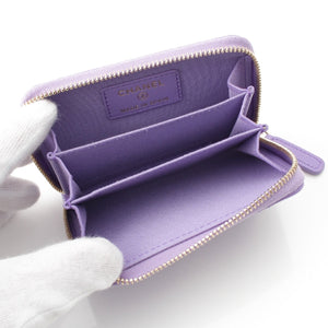 CHANEL Caviar skin Matelasse COCO Mark Zip Around Wallet Card Case purple