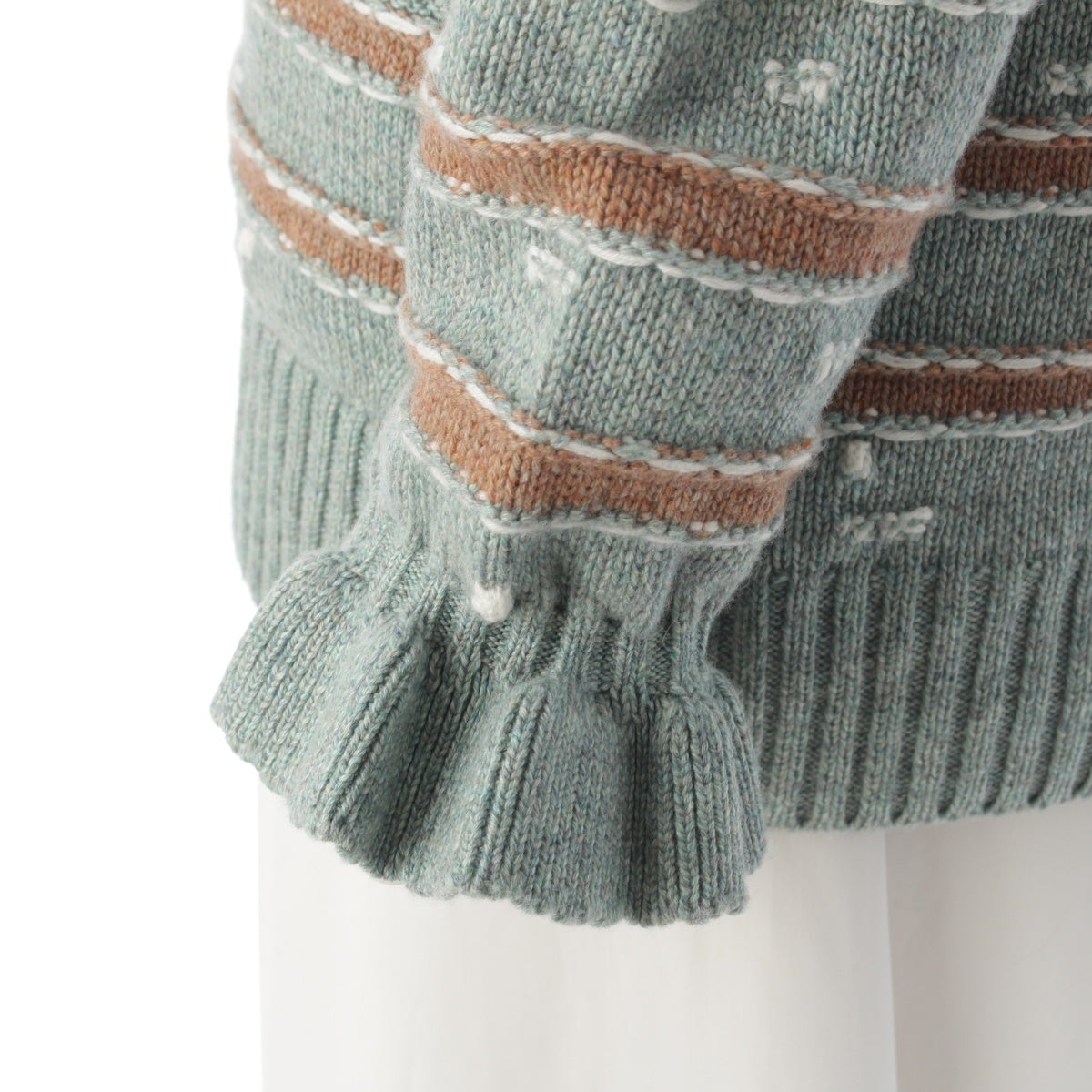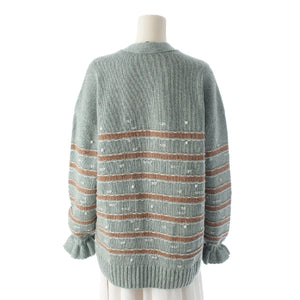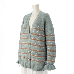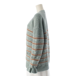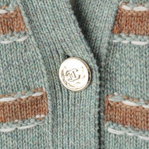 CHANEL 24AW cashmere blend Border knit cardigan COCO Mark Button Long Sleeve Top P78456 Light blue 38