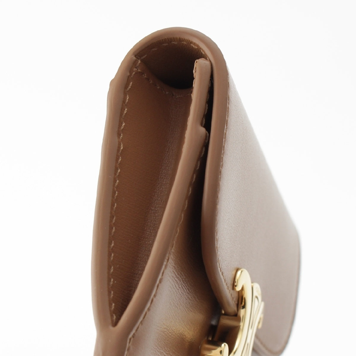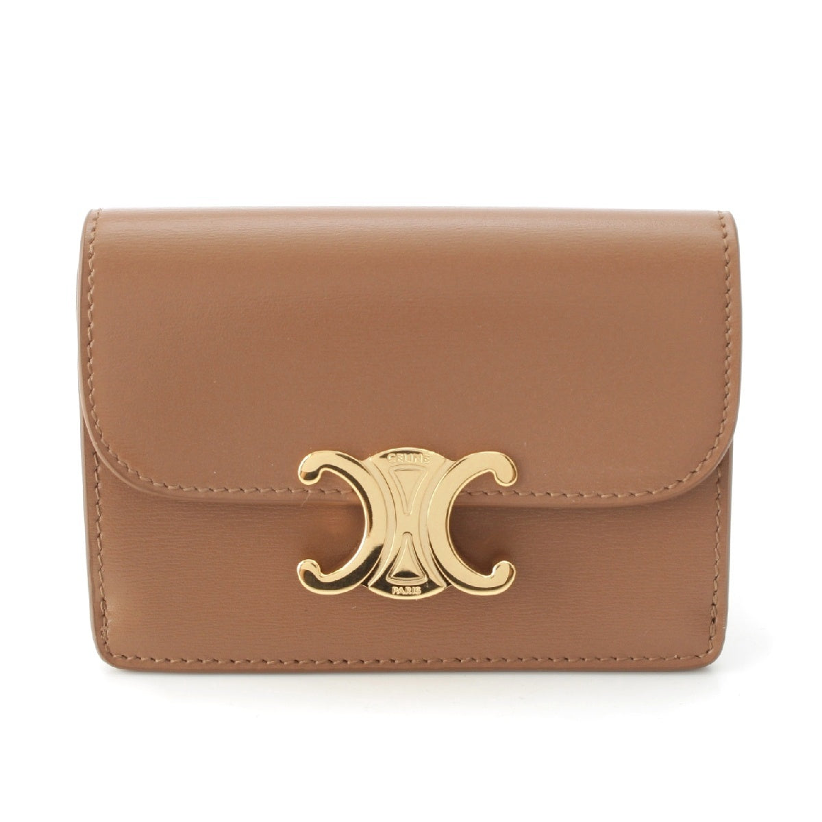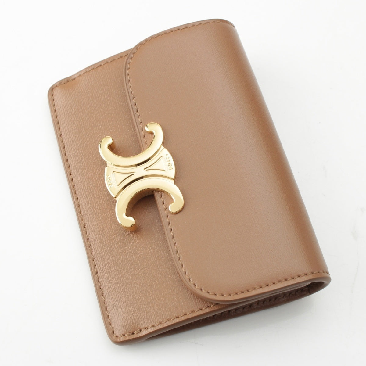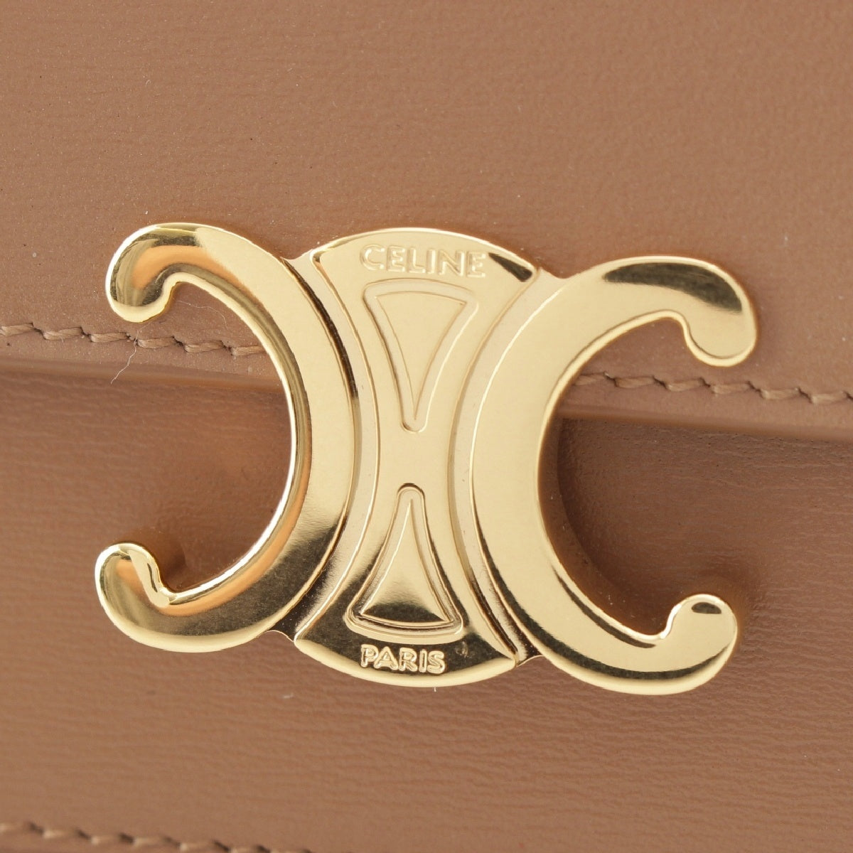 CELINE Calfskin Triomphe Flap Card Case Business card holder 10I583DPV Brown Gold Metal