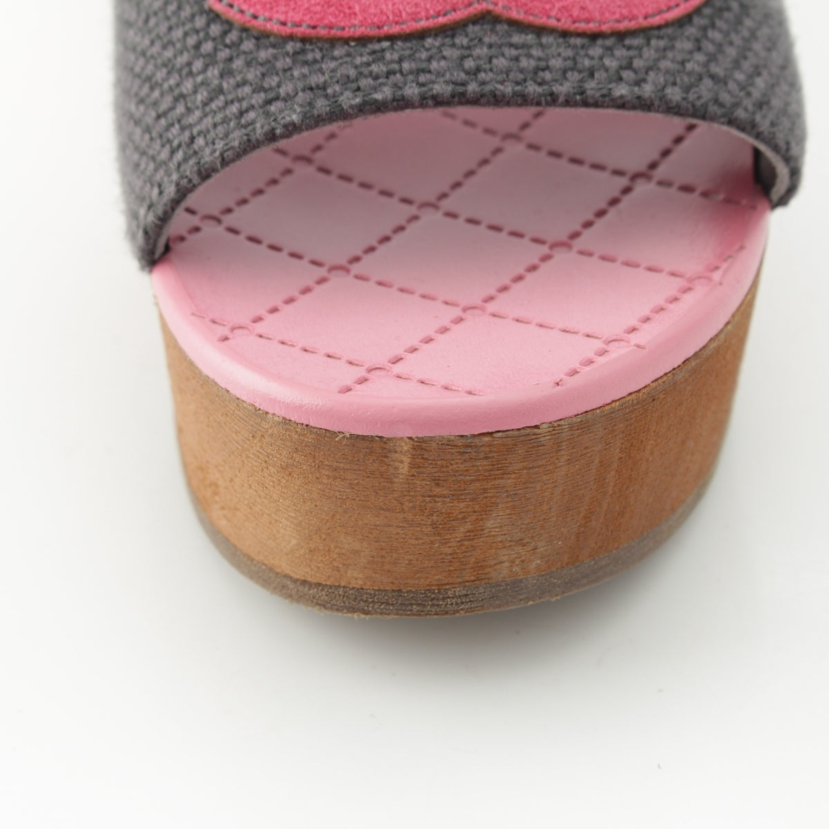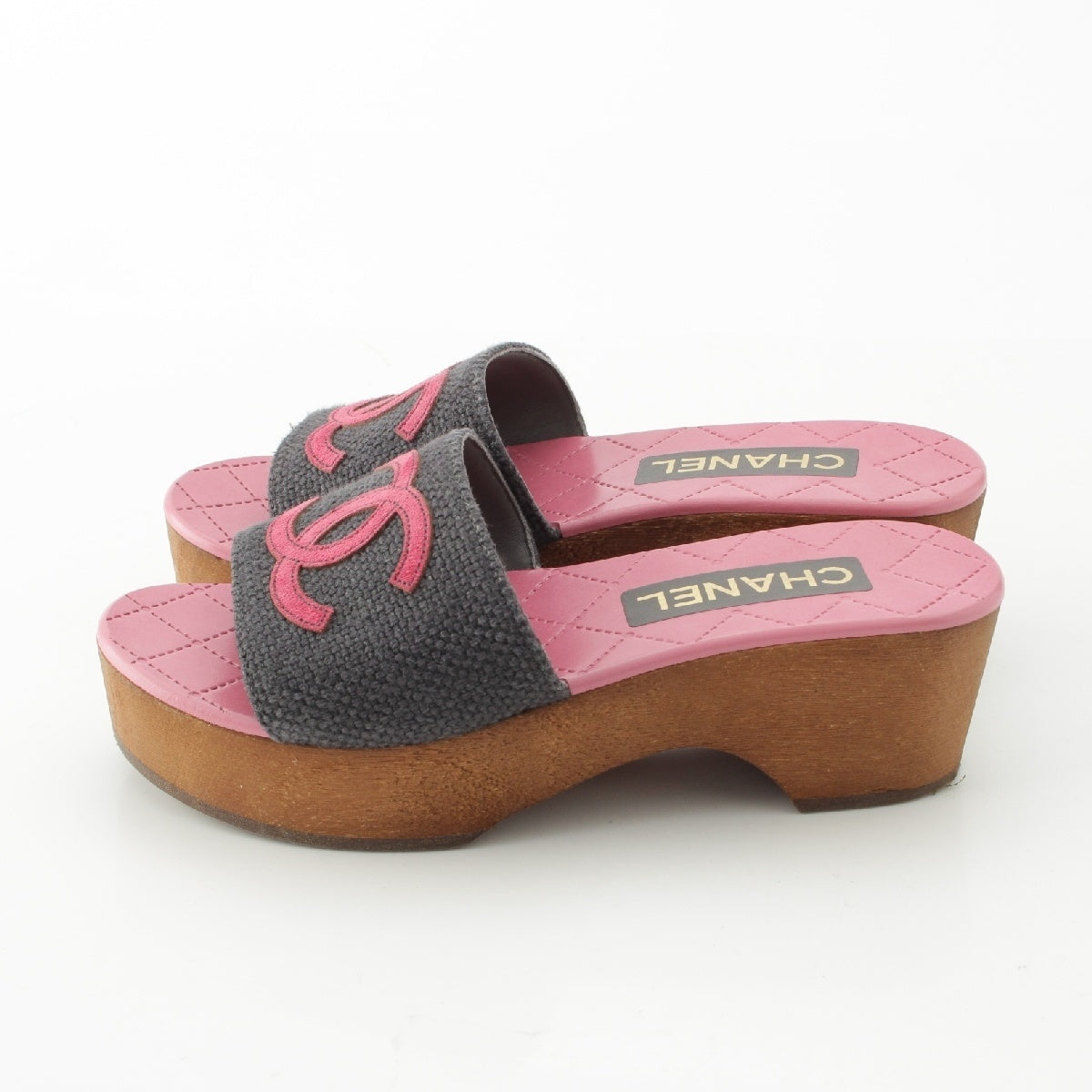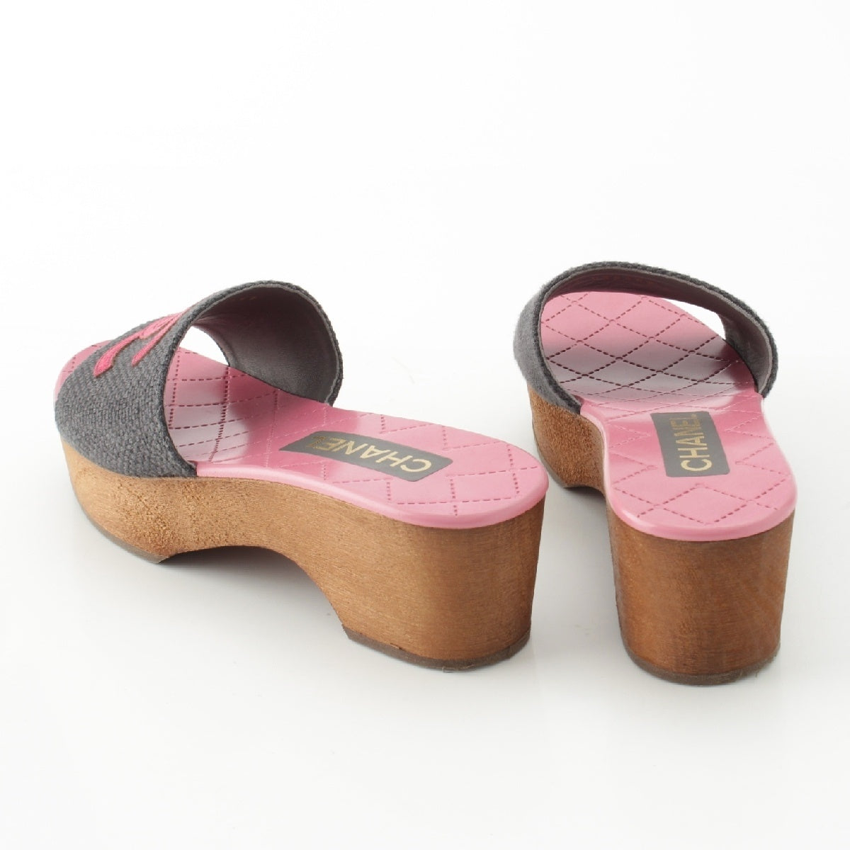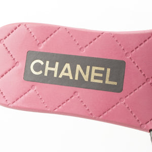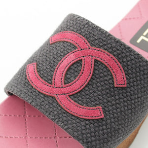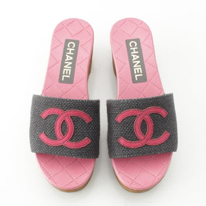 CHANEL 24P Wood Sole COCO Mark Matelasse Sandals G45557 Pink gray 36C
