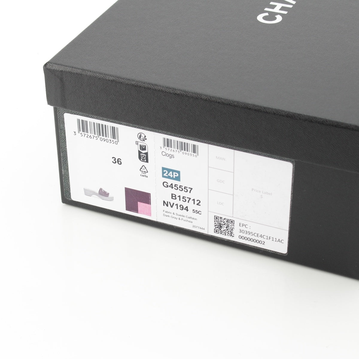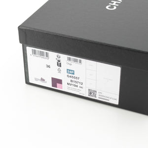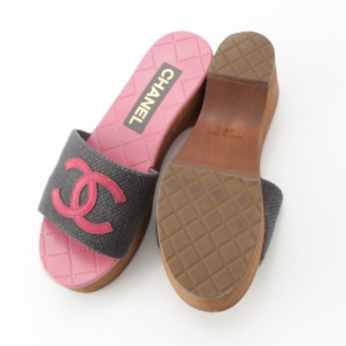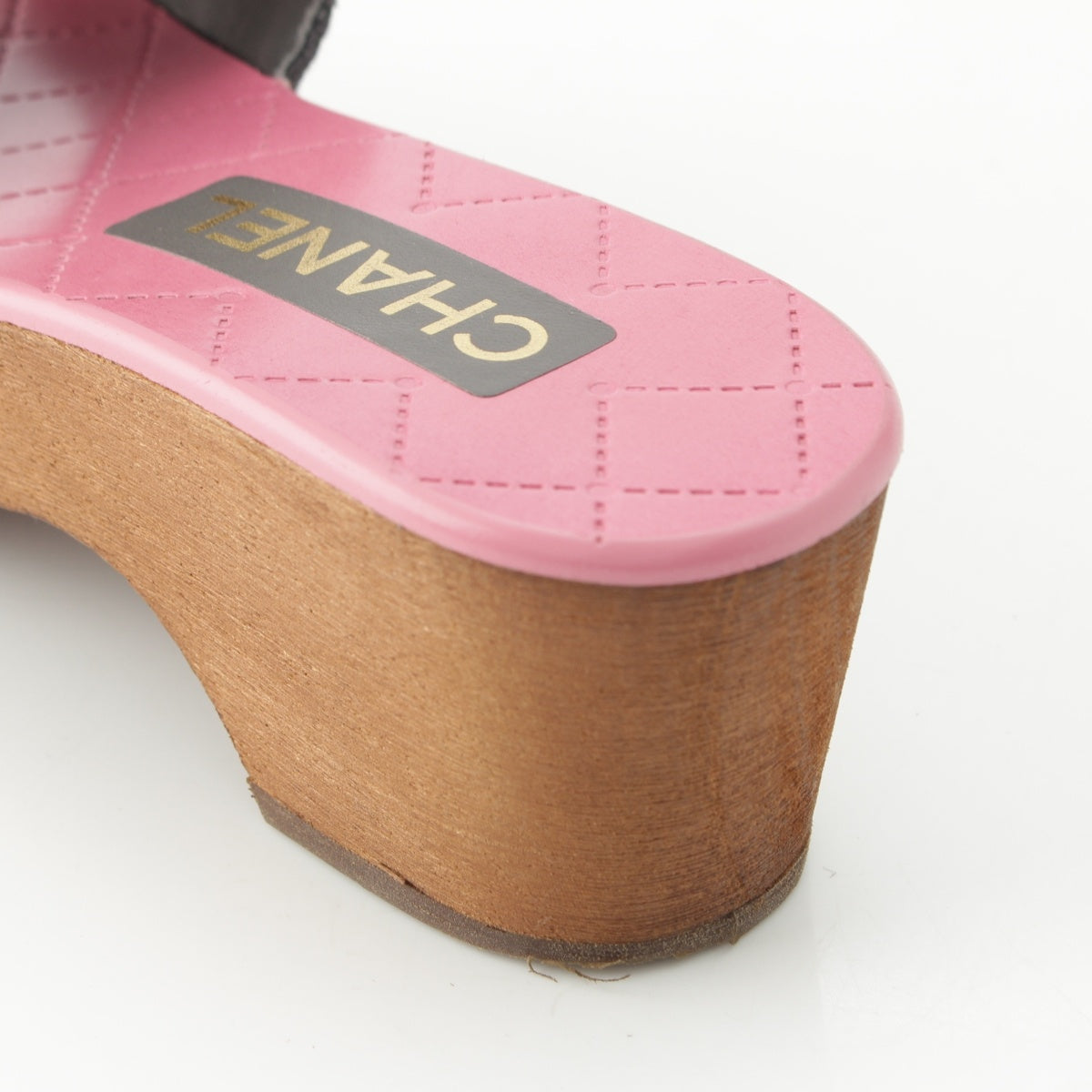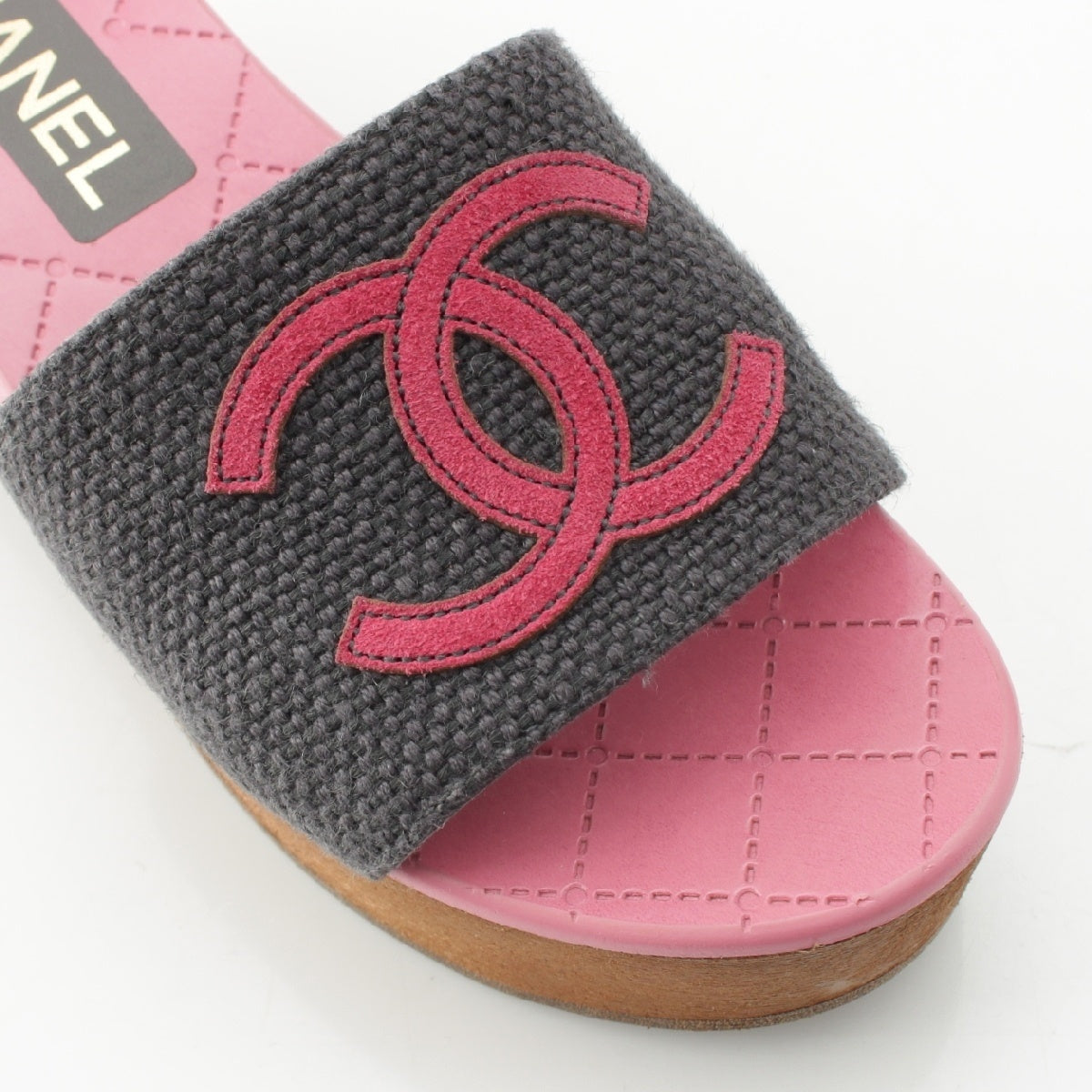 CHANEL 24P Wood Sole COCO Mark Matelasse Sandals G45557 Pink gray 36C