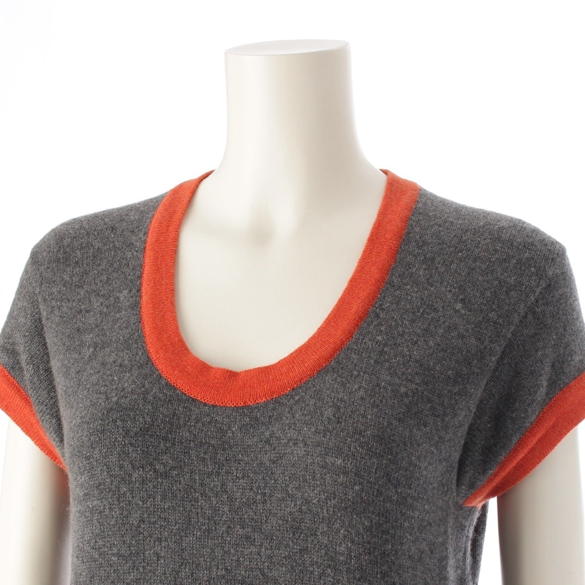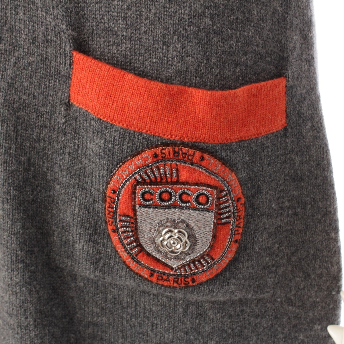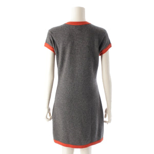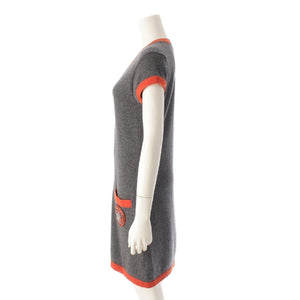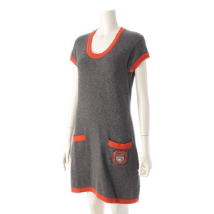 CHANEL 07A cashmere Camellia COCO Emblem Short Sleeve Knit one piece dress P31792 gray 40