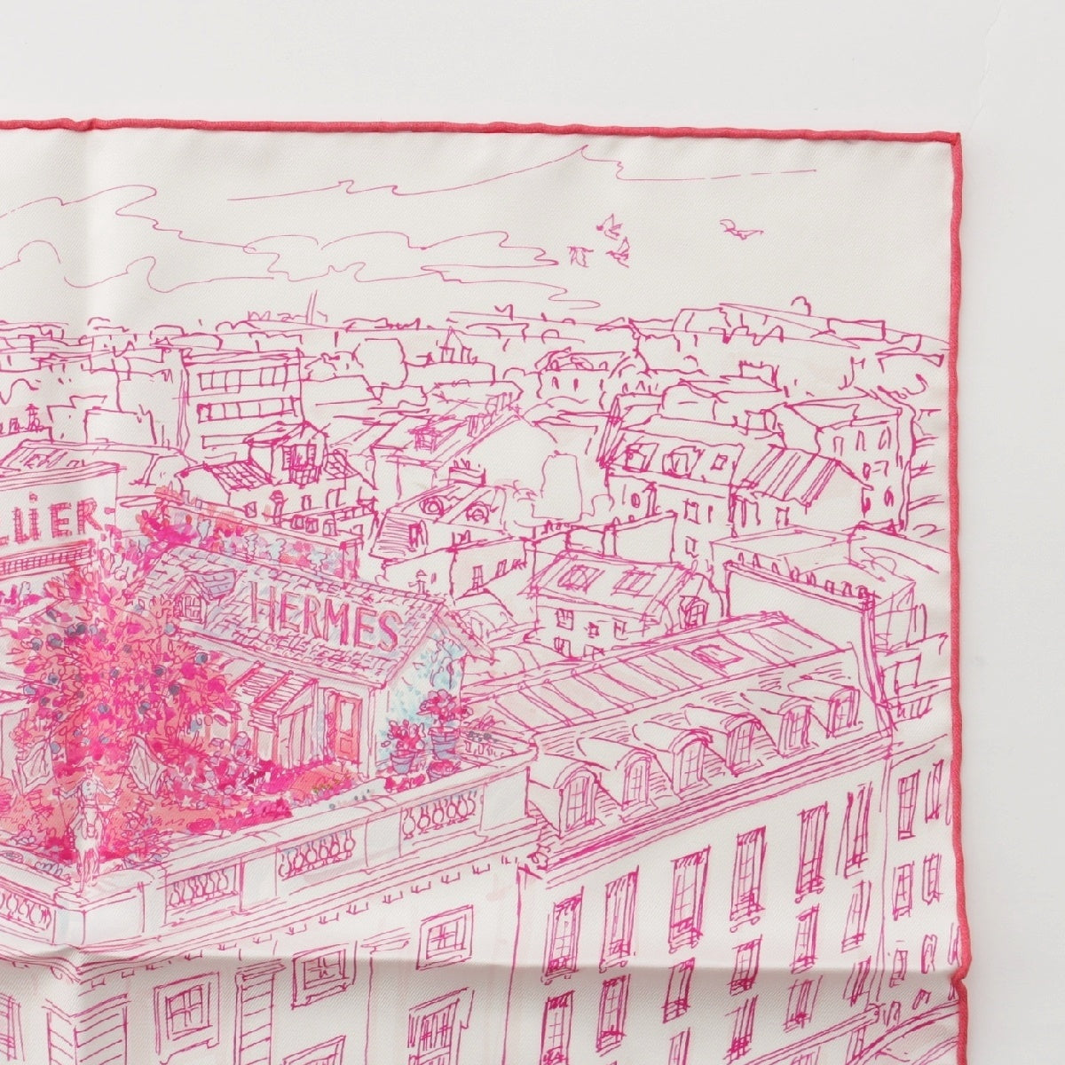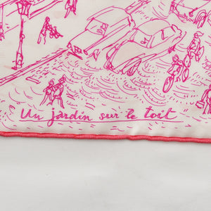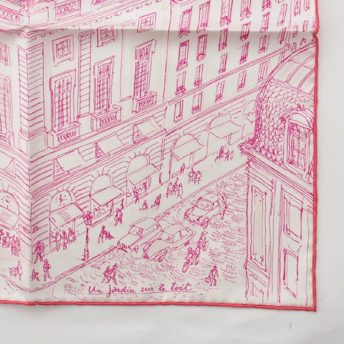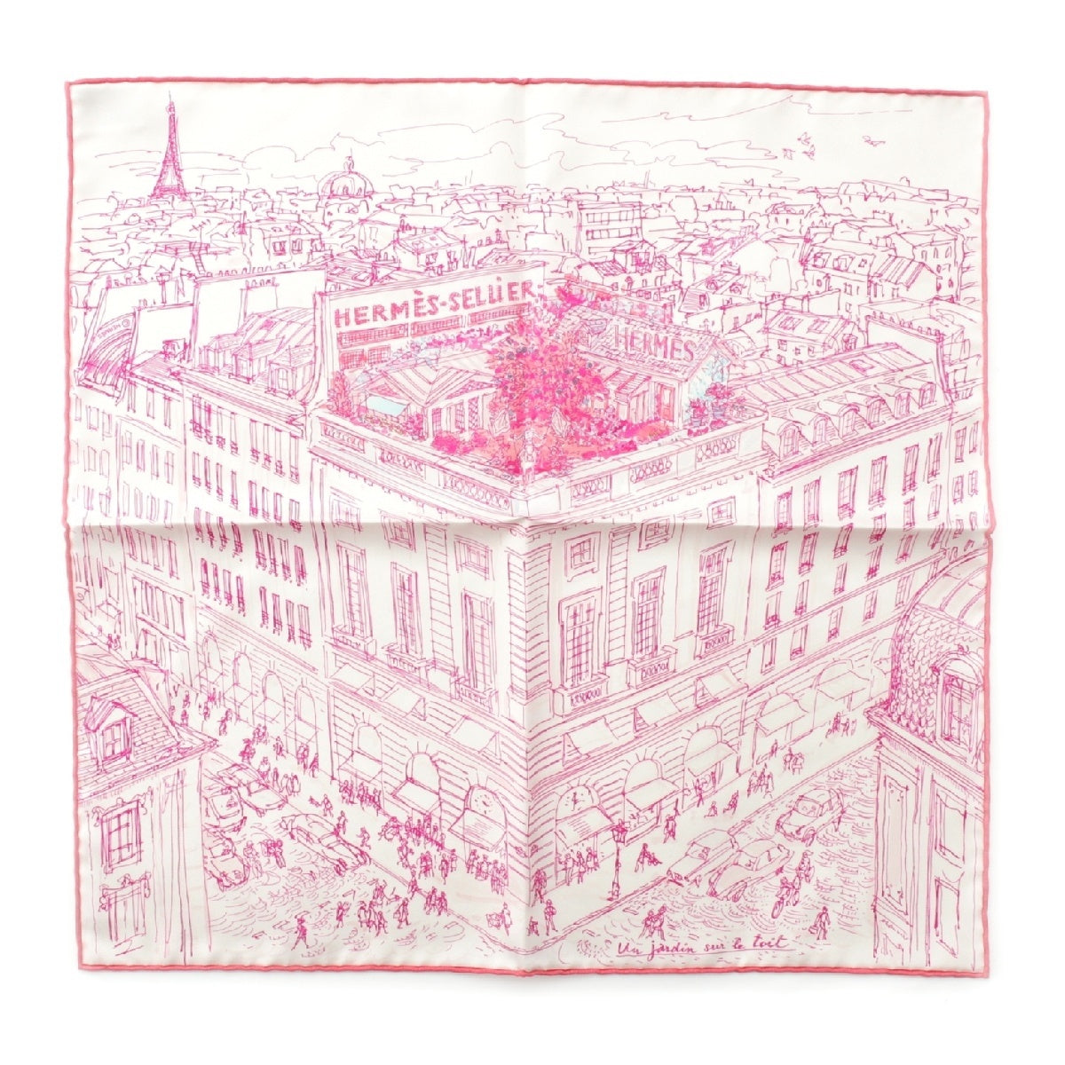 HERMES Carre 45 silk Gavroche rooftop garden Un Jardin sur le Toit building Hermes flagship store scarf White pink