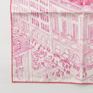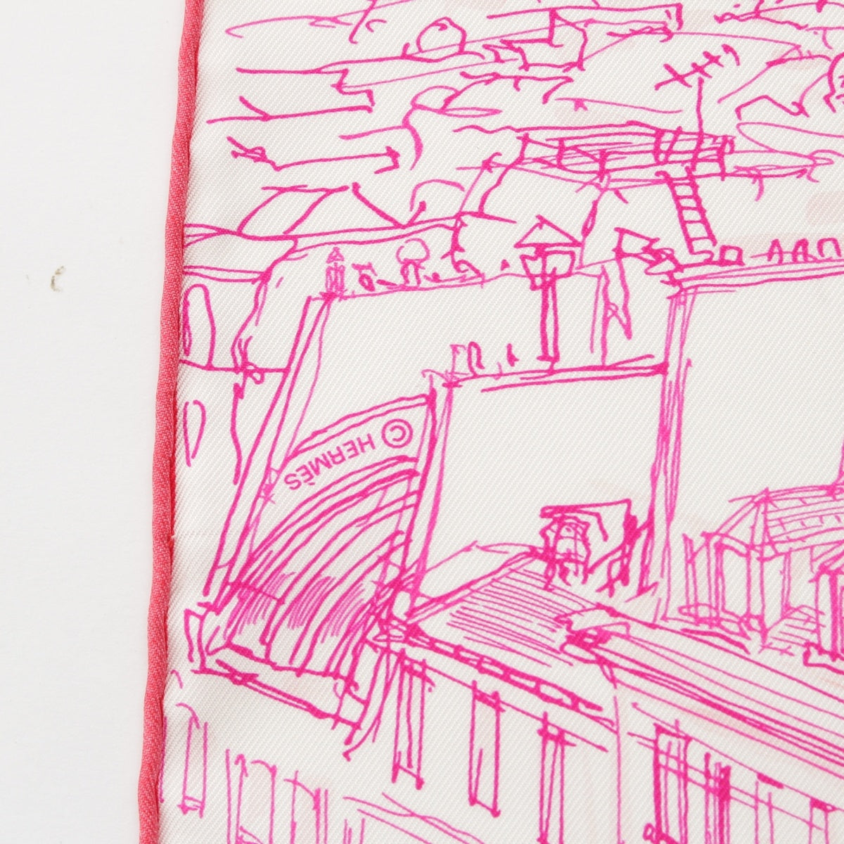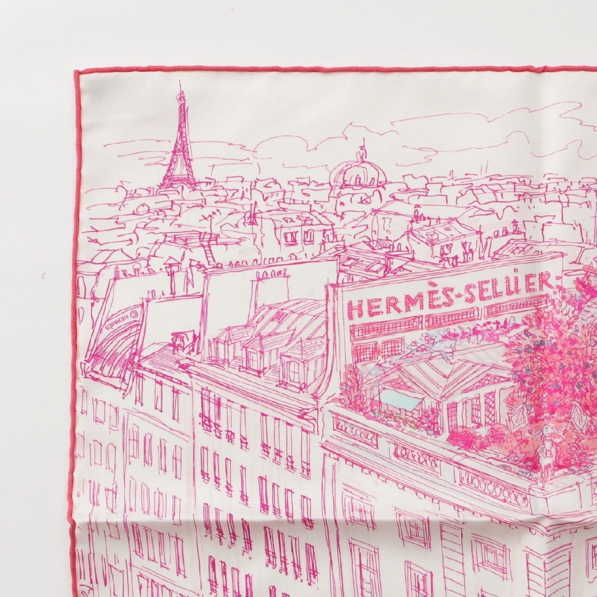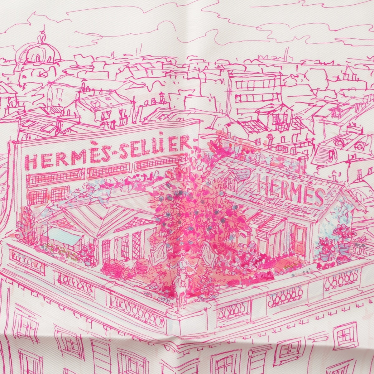 HERMES Carre 45 silk Gavroche rooftop garden Un Jardin sur le Toit building Hermes flagship store scarf White pink