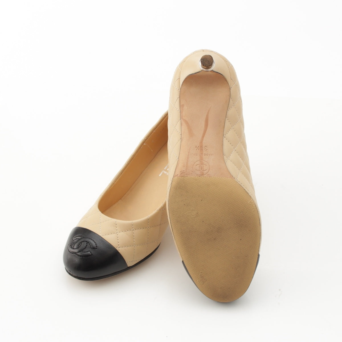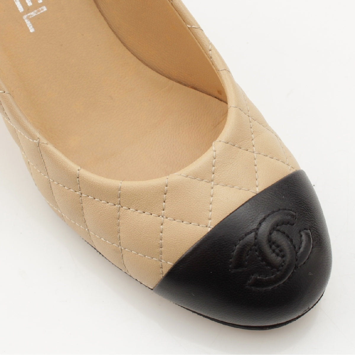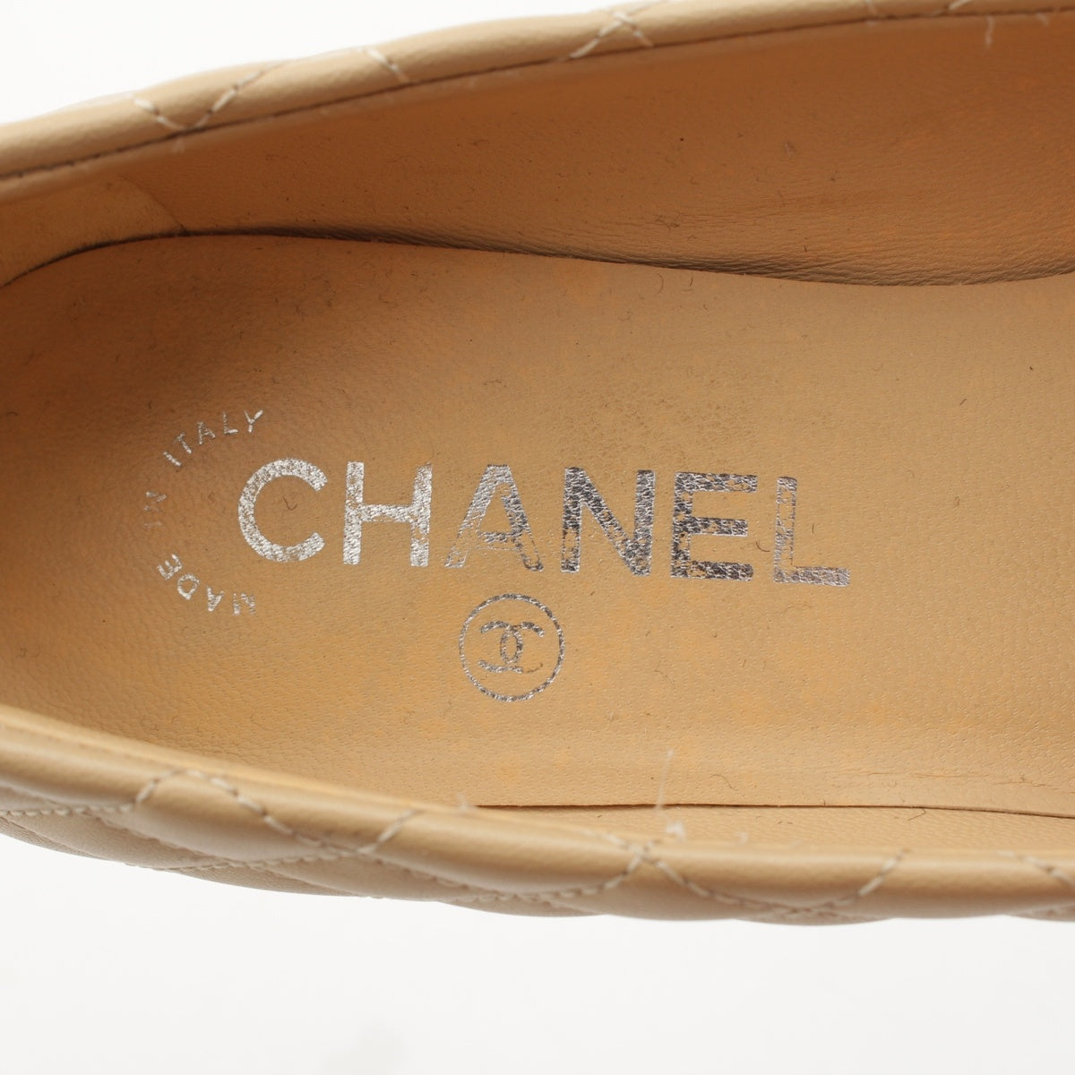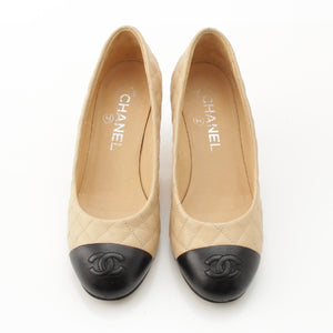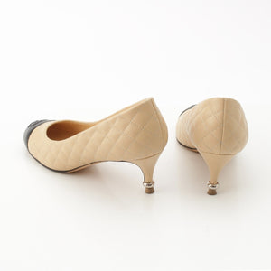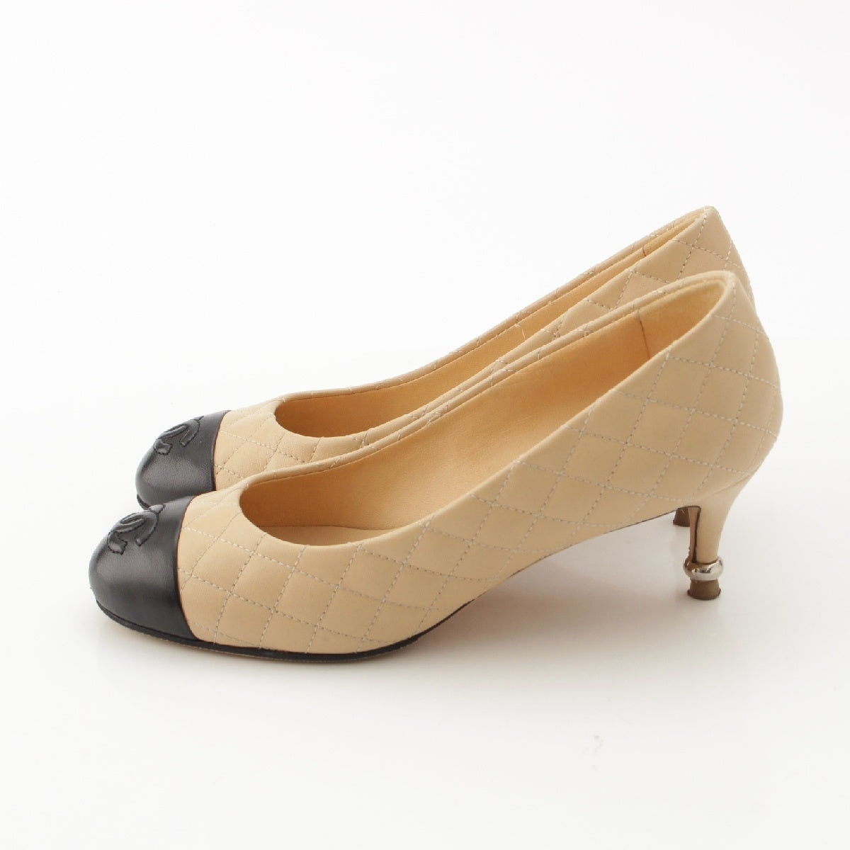CHANEL leather Matelasse heels pumps shoes G30354 beige 36 1/2