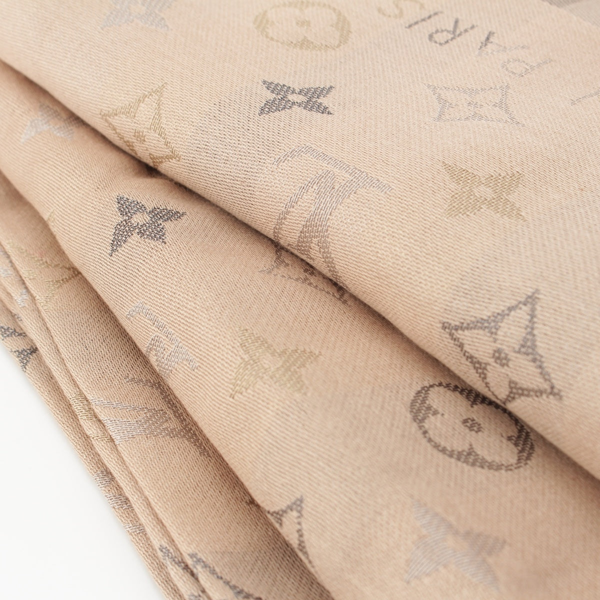 LOUIS VUITTON Monogram Socialine Large Scarf Stall M76337 beige
