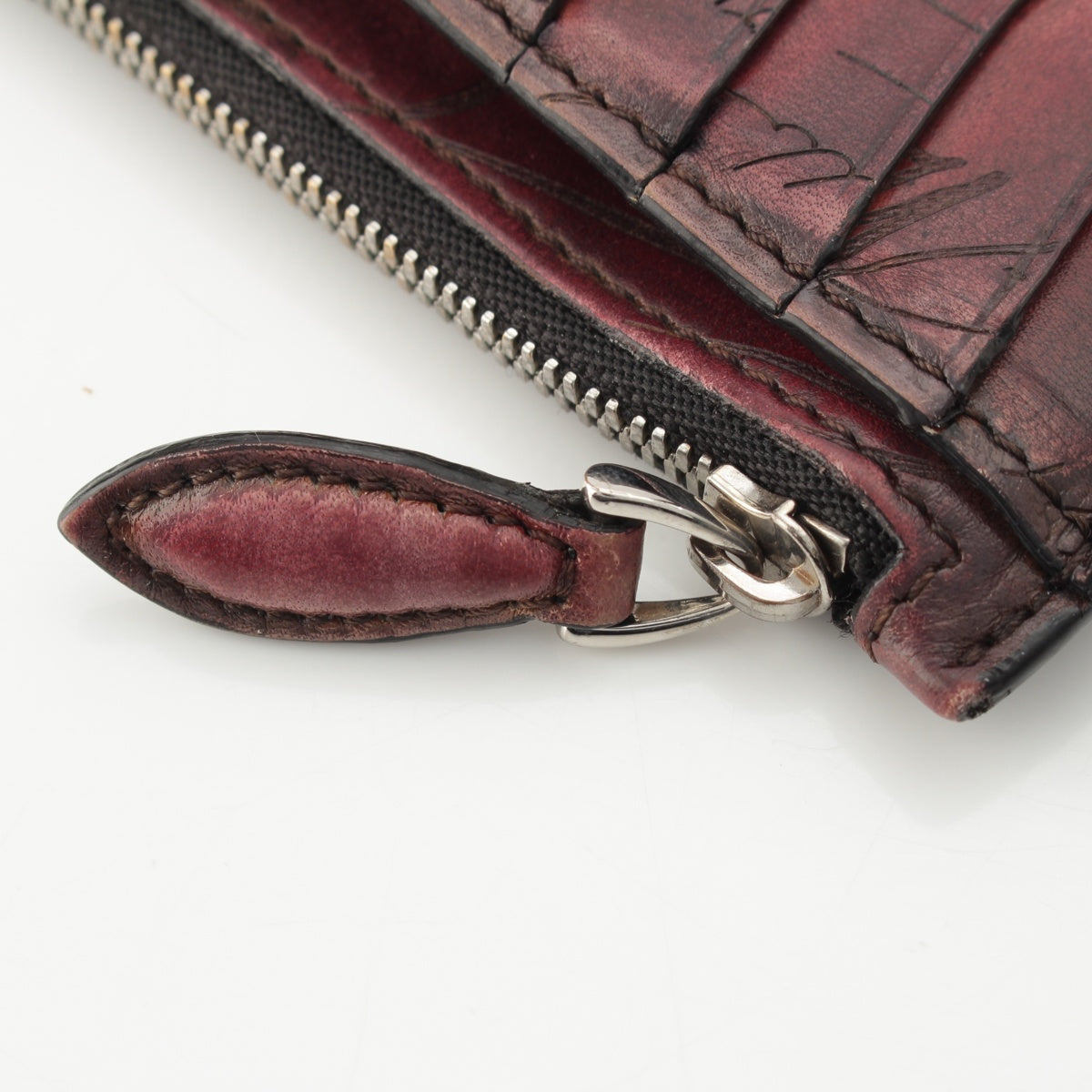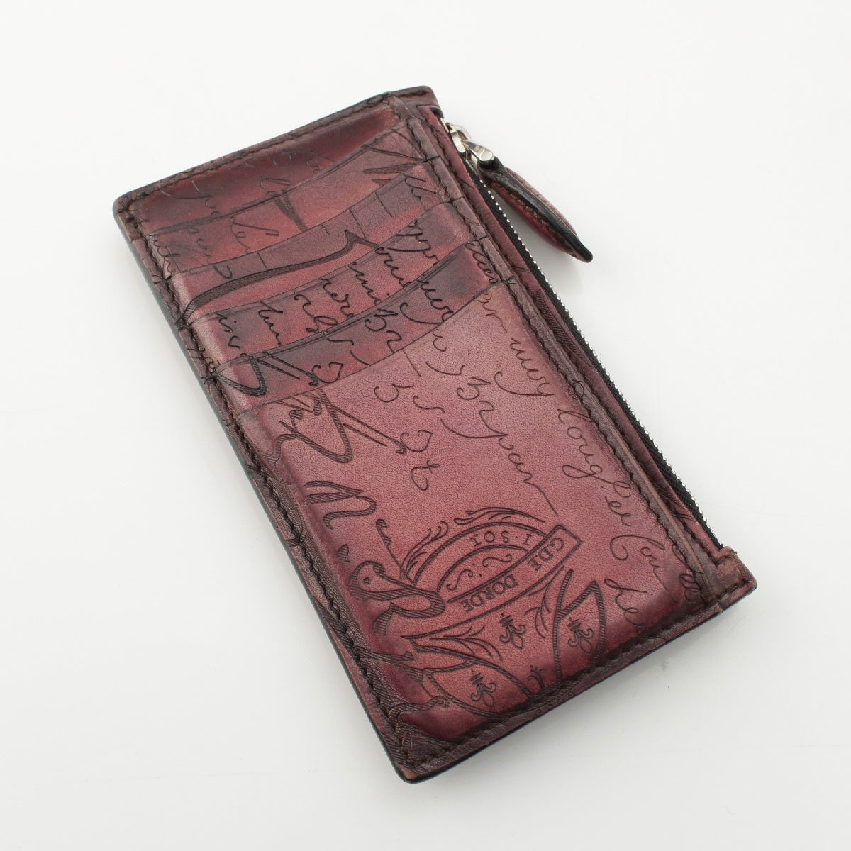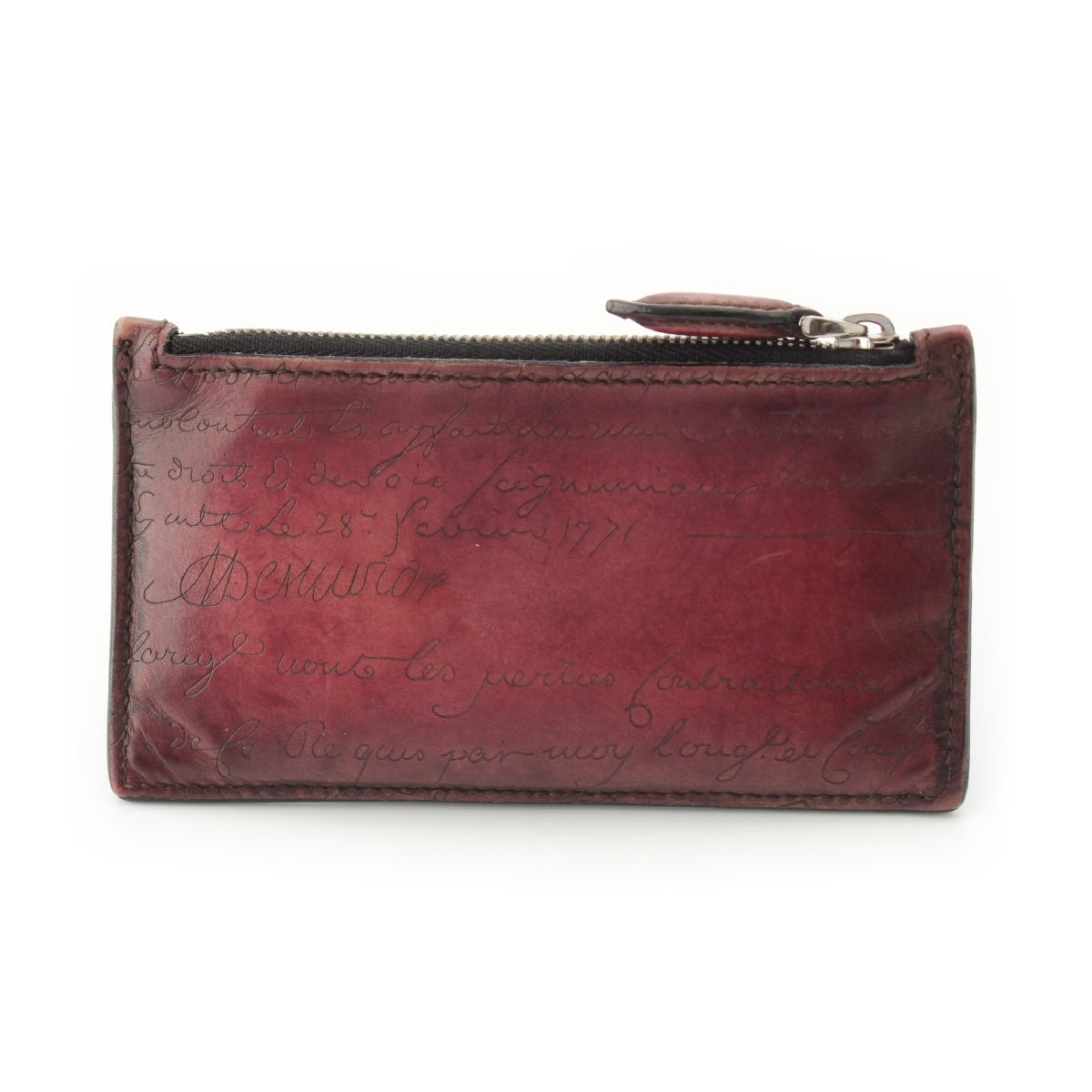 Berluti leather Calligraphy Patine Card Coin case Fragment Case with Key Ring Bordeaux