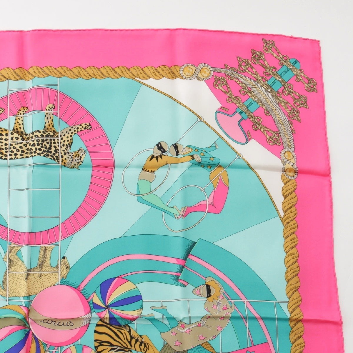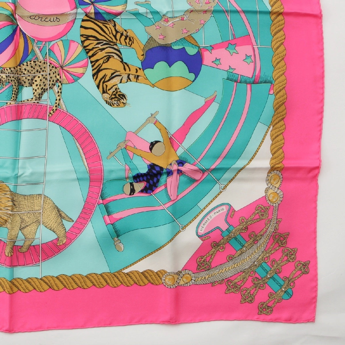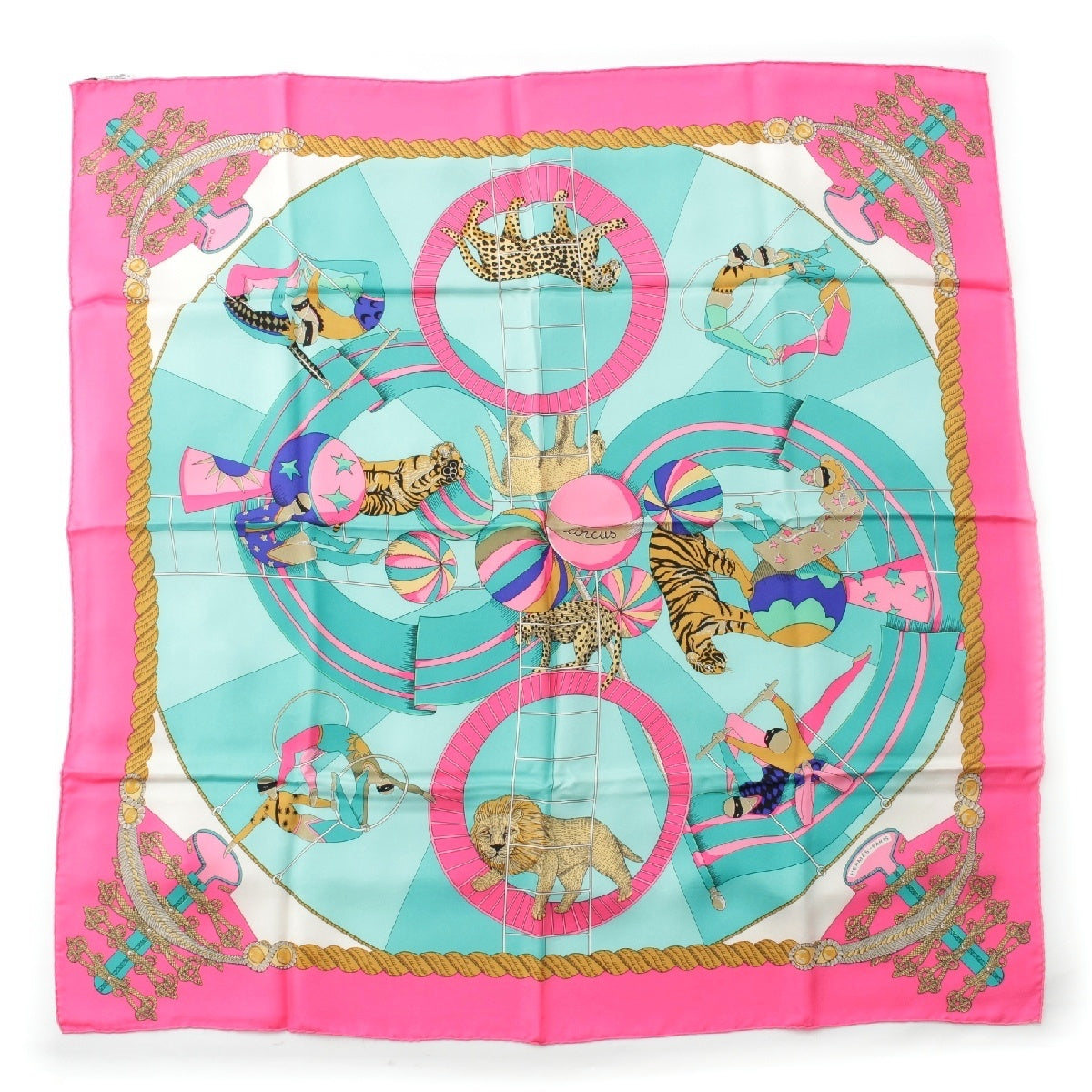 HERMES silk Curry 90 circus Circus scarf Pink