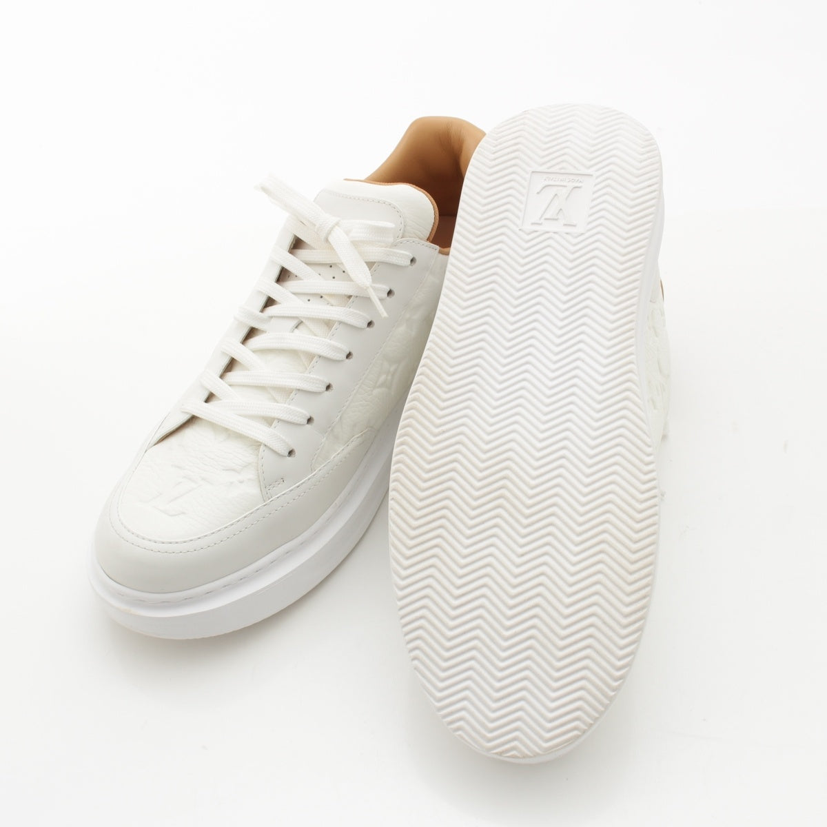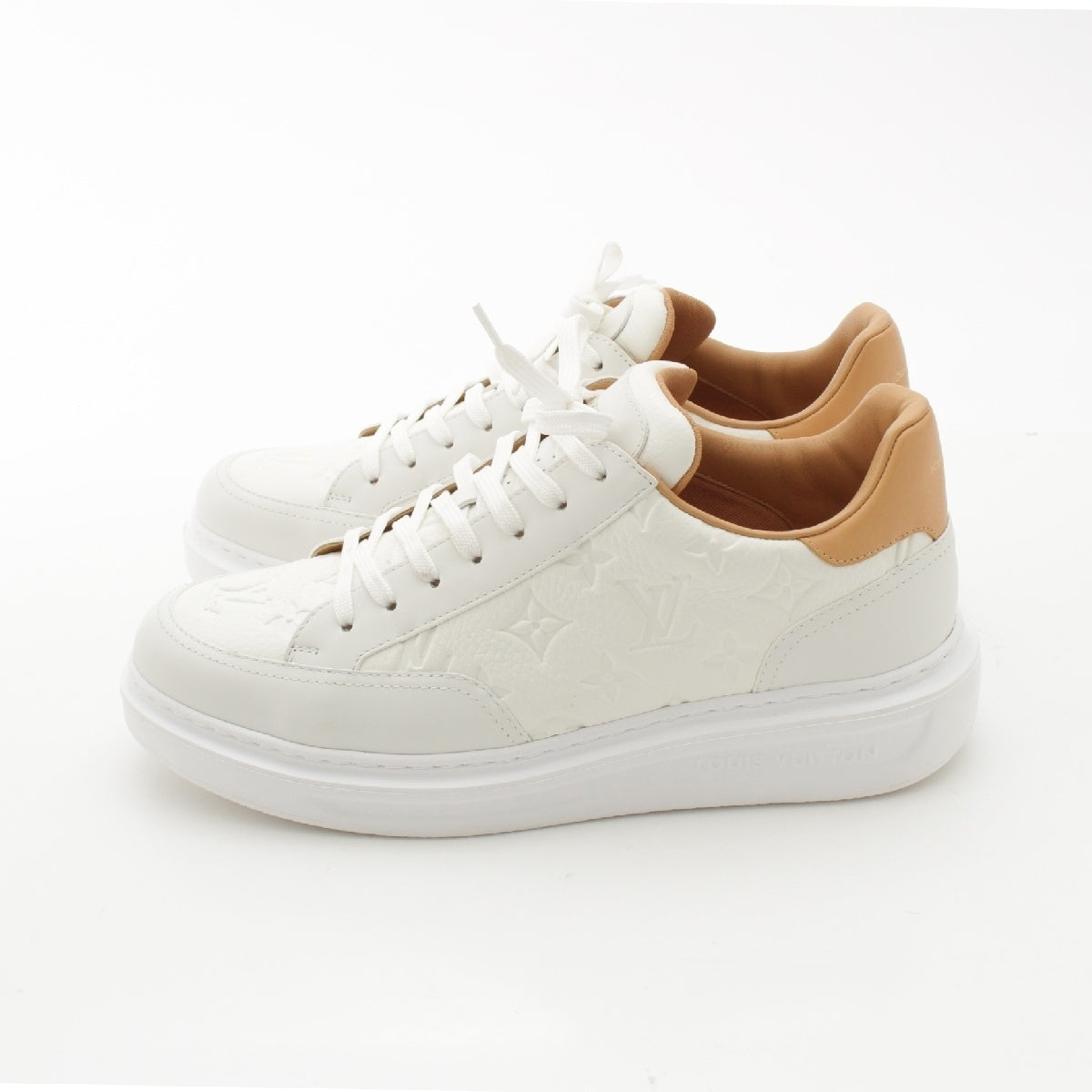 LOUIS VUITTON leather Beverly Hills sneakers Shoes LD0273 White beige 7 1/2