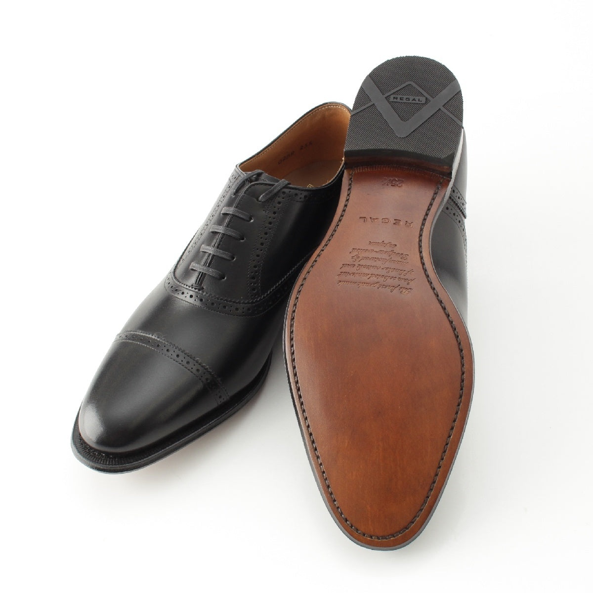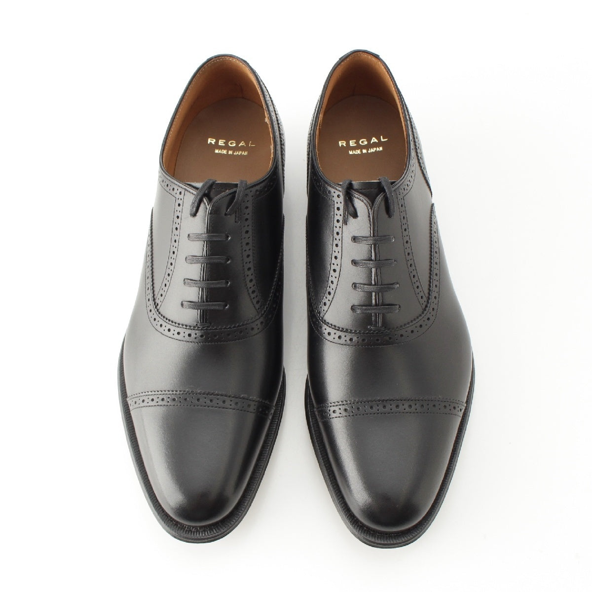 REGAL Leather cowhide Straight Tip Quarter Brogue Dress shoes business 02DR black 25 1/2