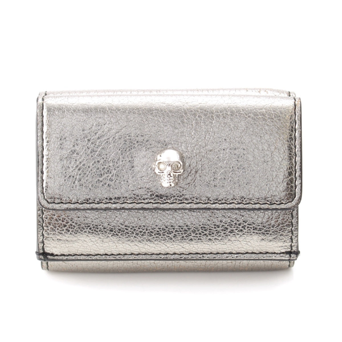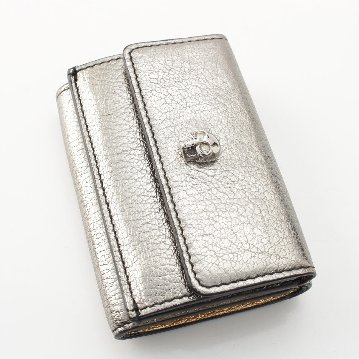 Alexander McQueen leather Compact wallet Tri-fold wallet Silverx Gold