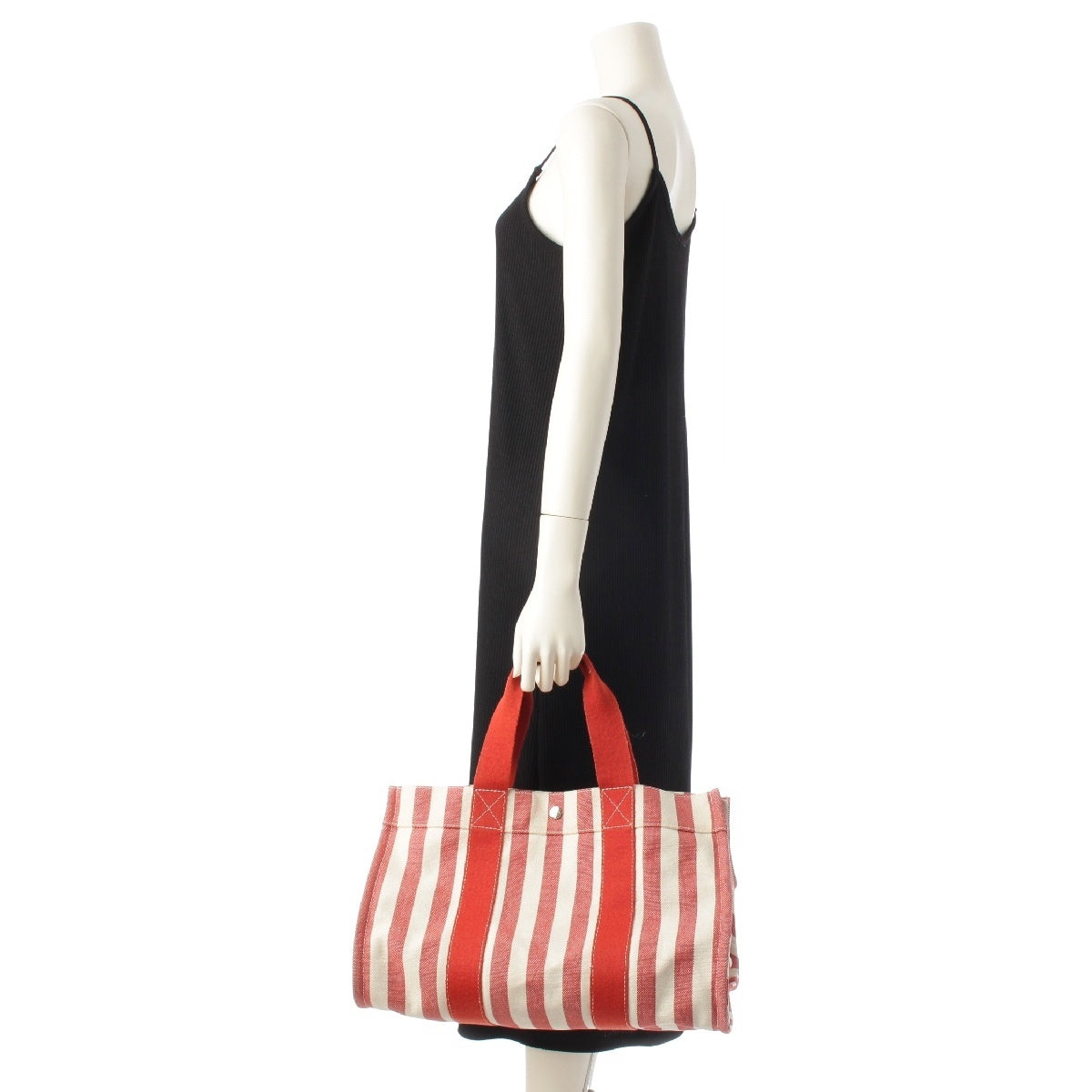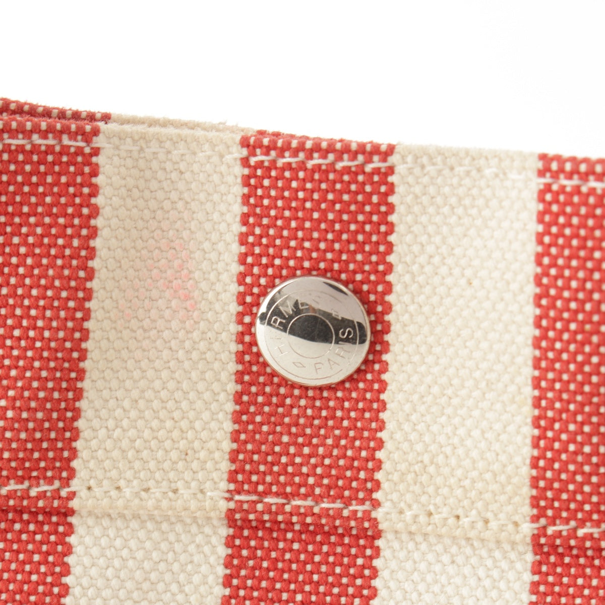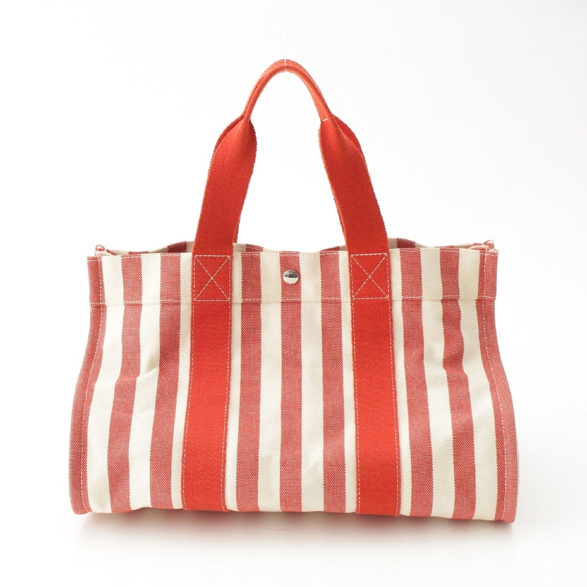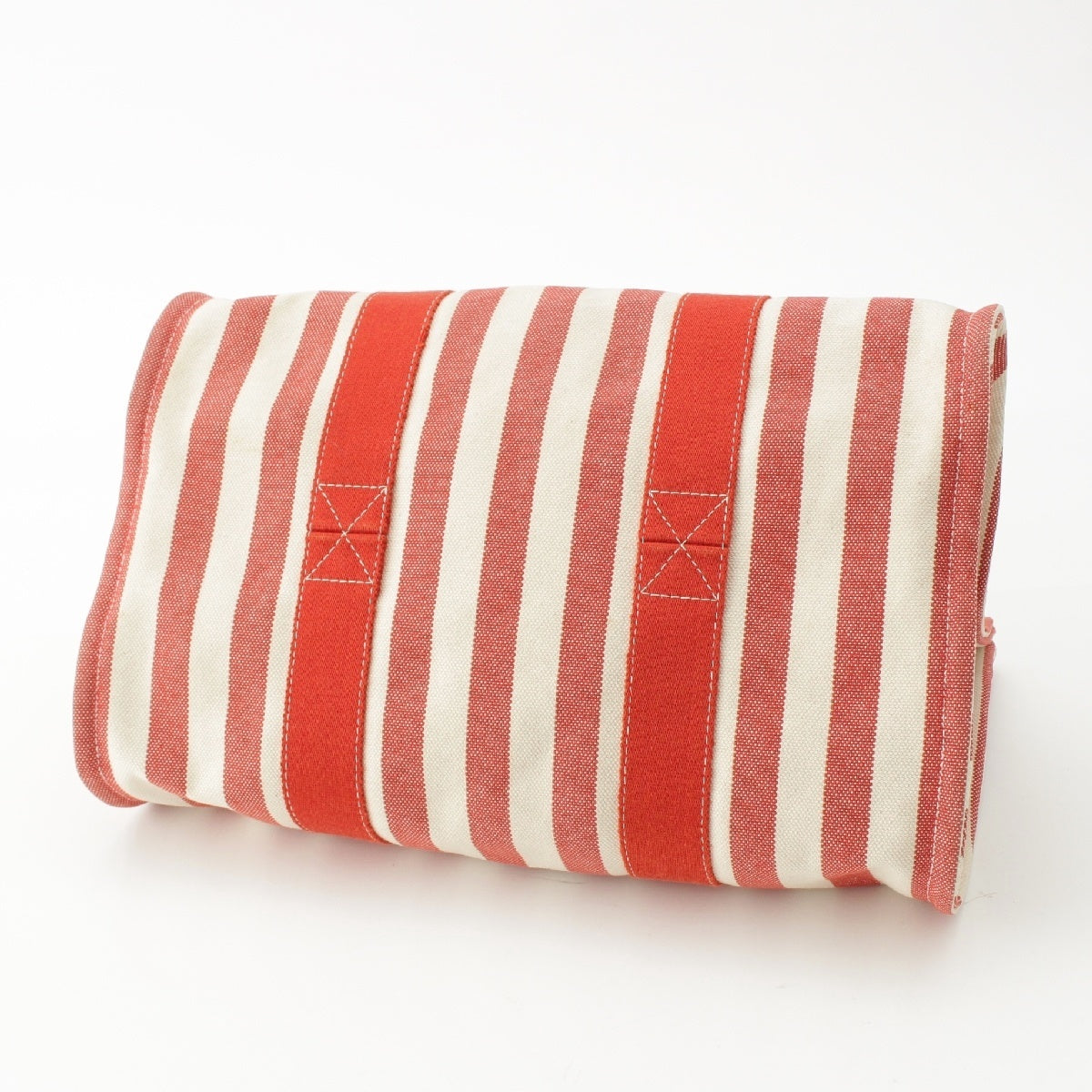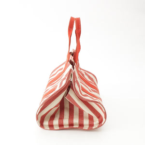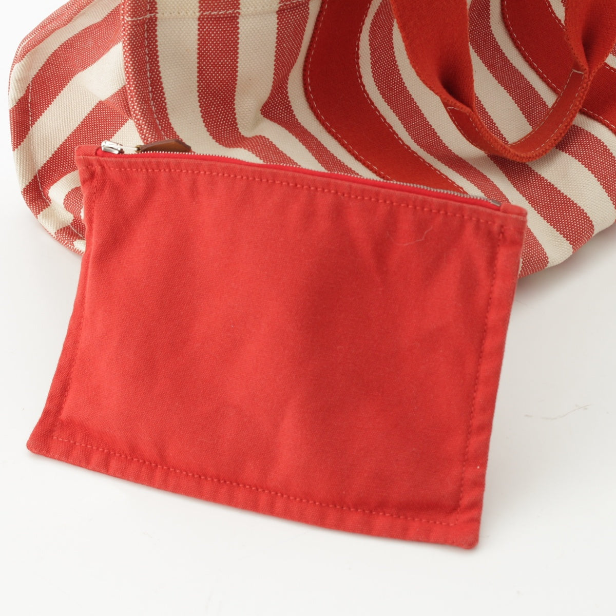 HERMES Cannes MM cotton Pouch included Stripe Handbag Tote Bag Red white