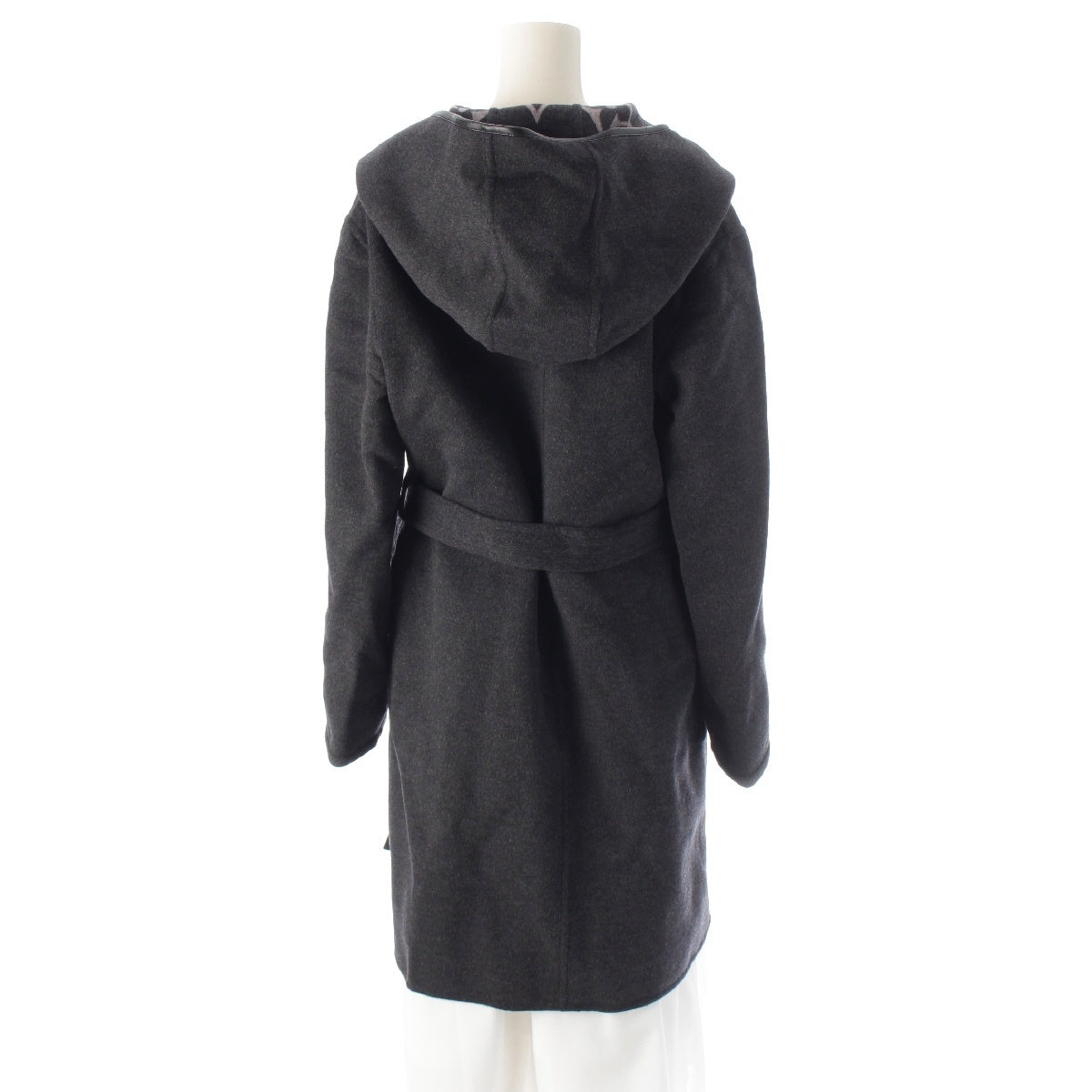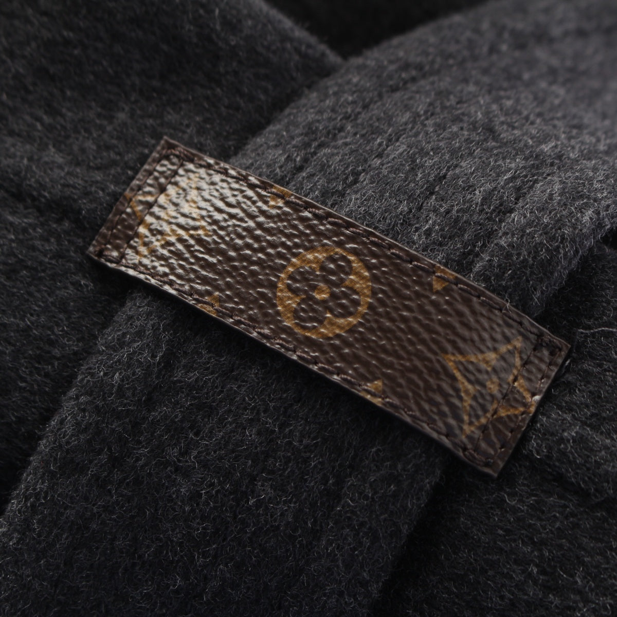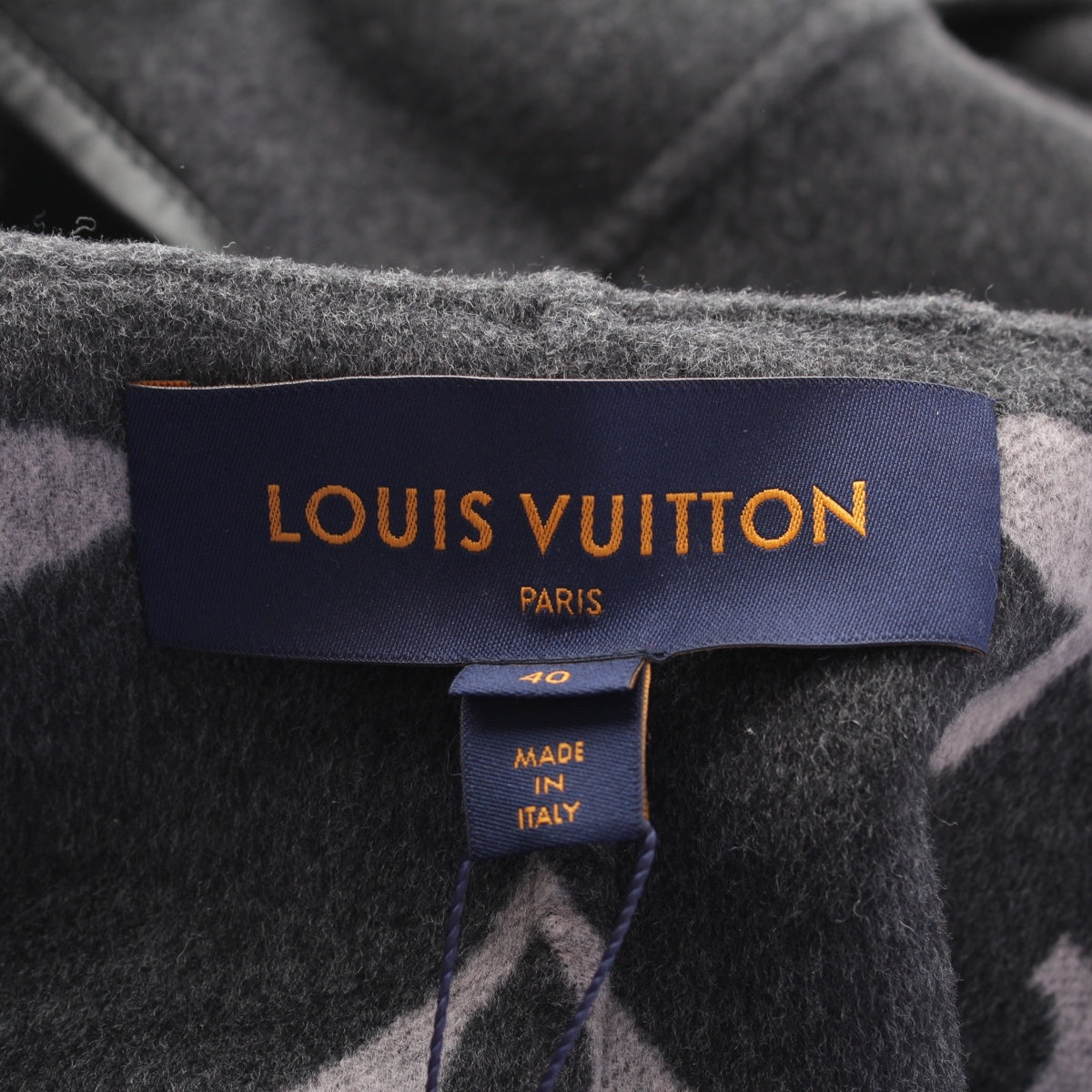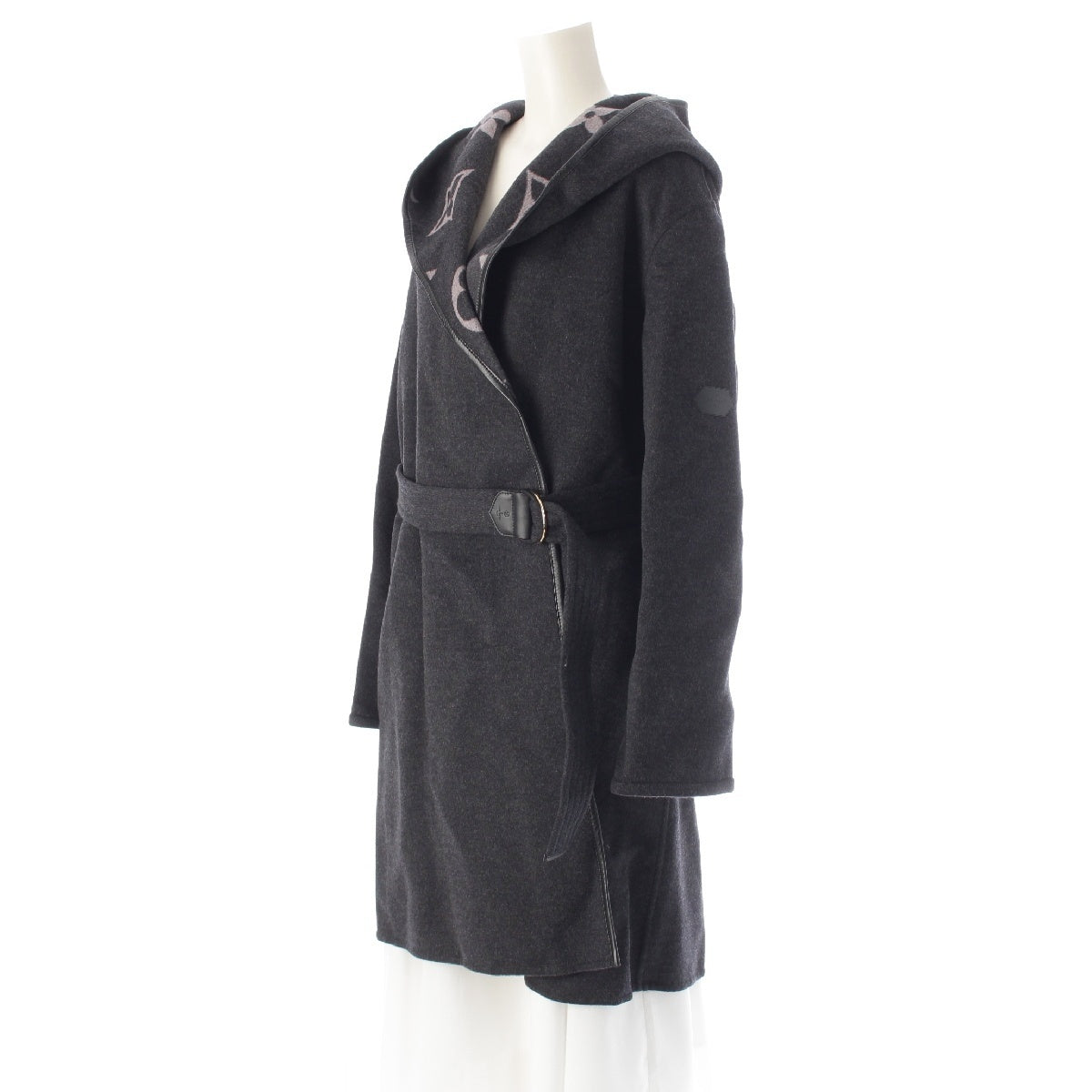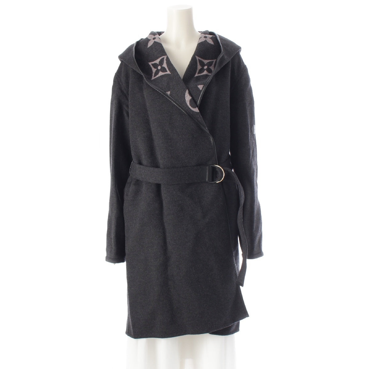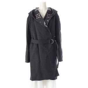 LOUIS VUITTON Monogram wool Hooded Wrap Coat outer Logo embossing FJC022NUV gray 40