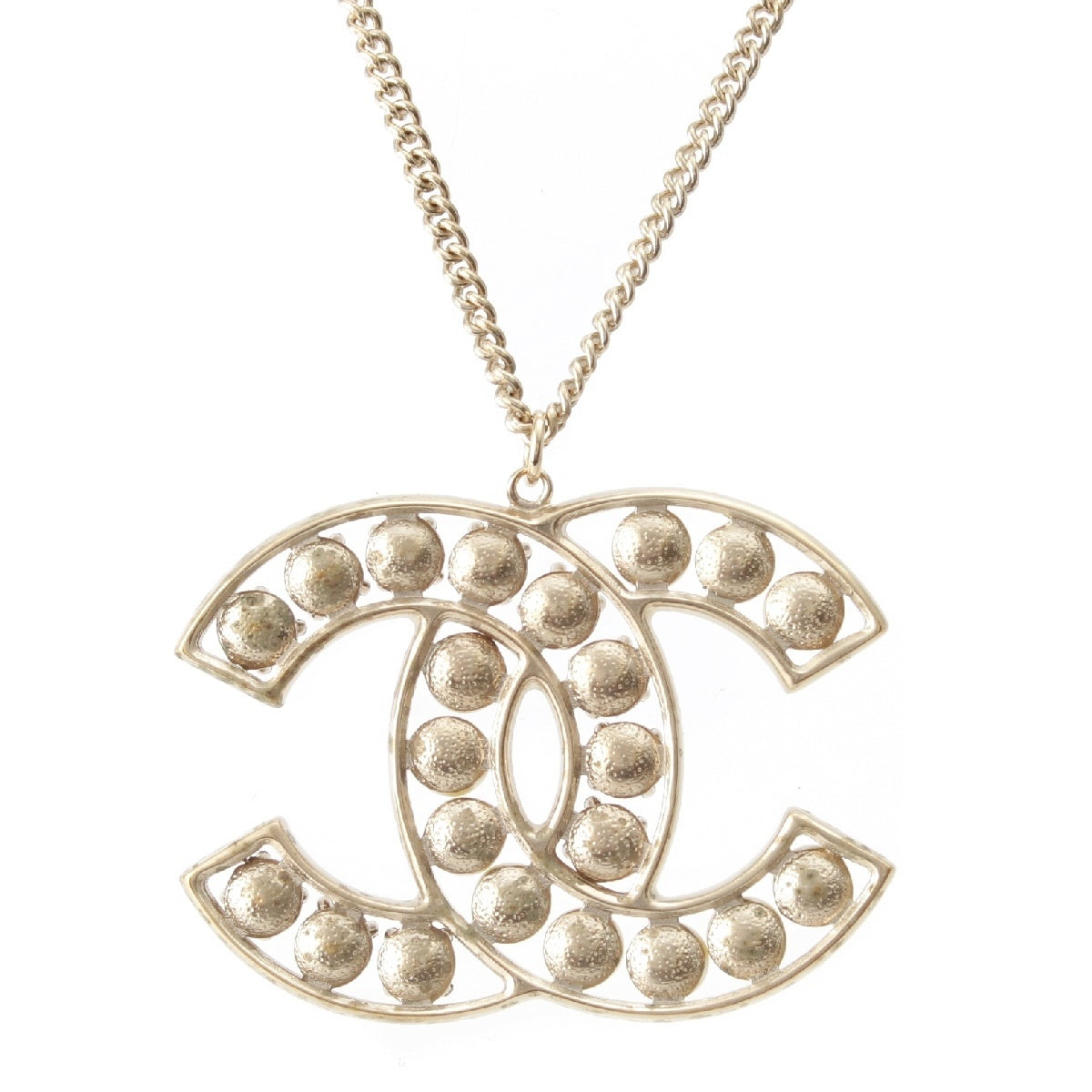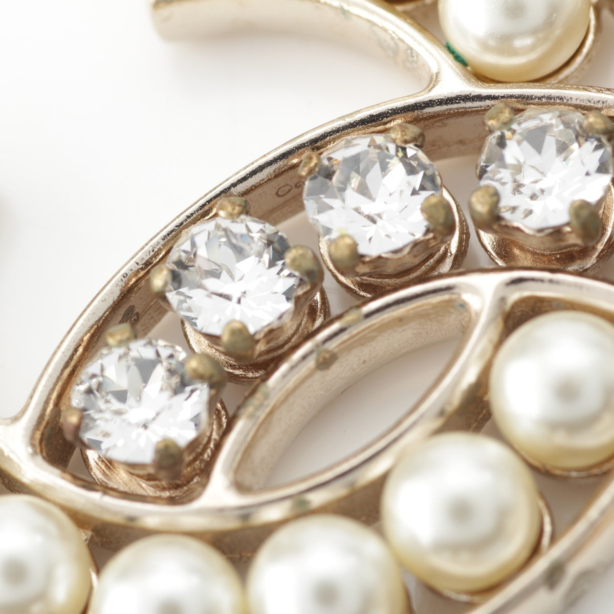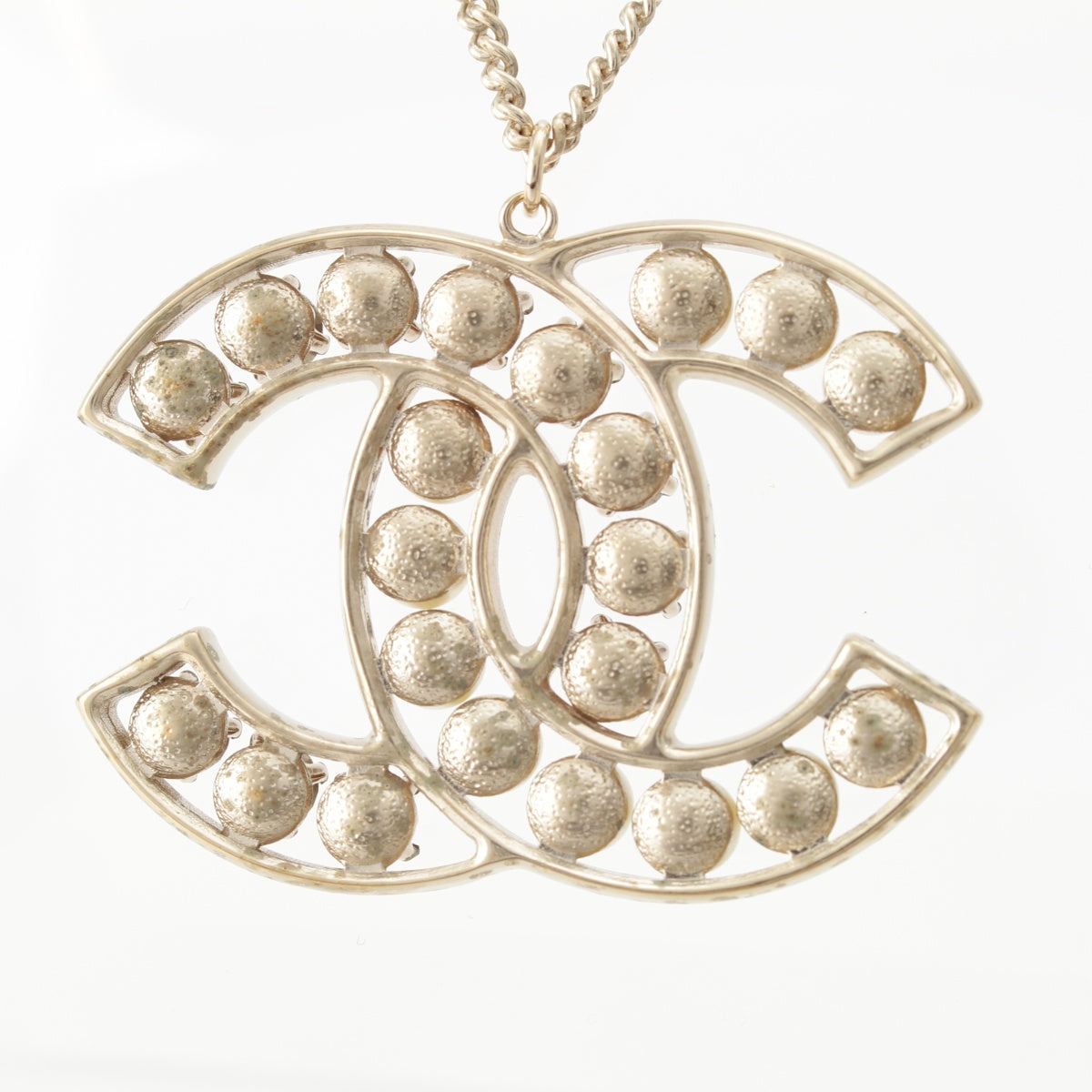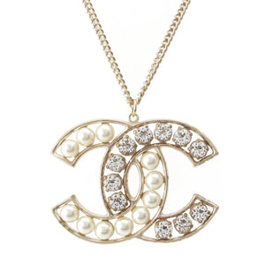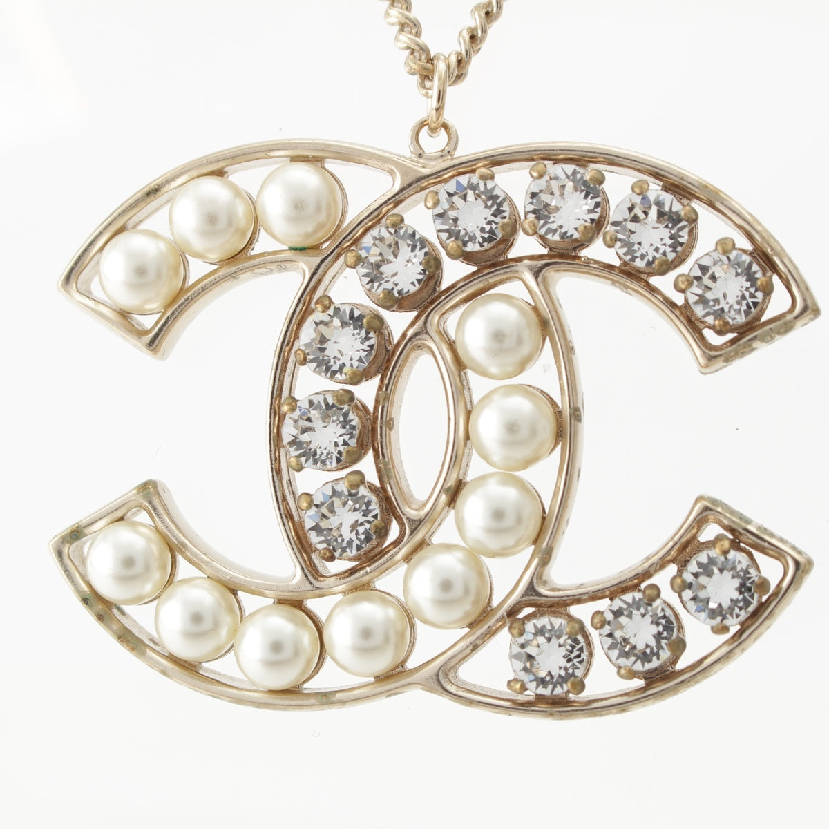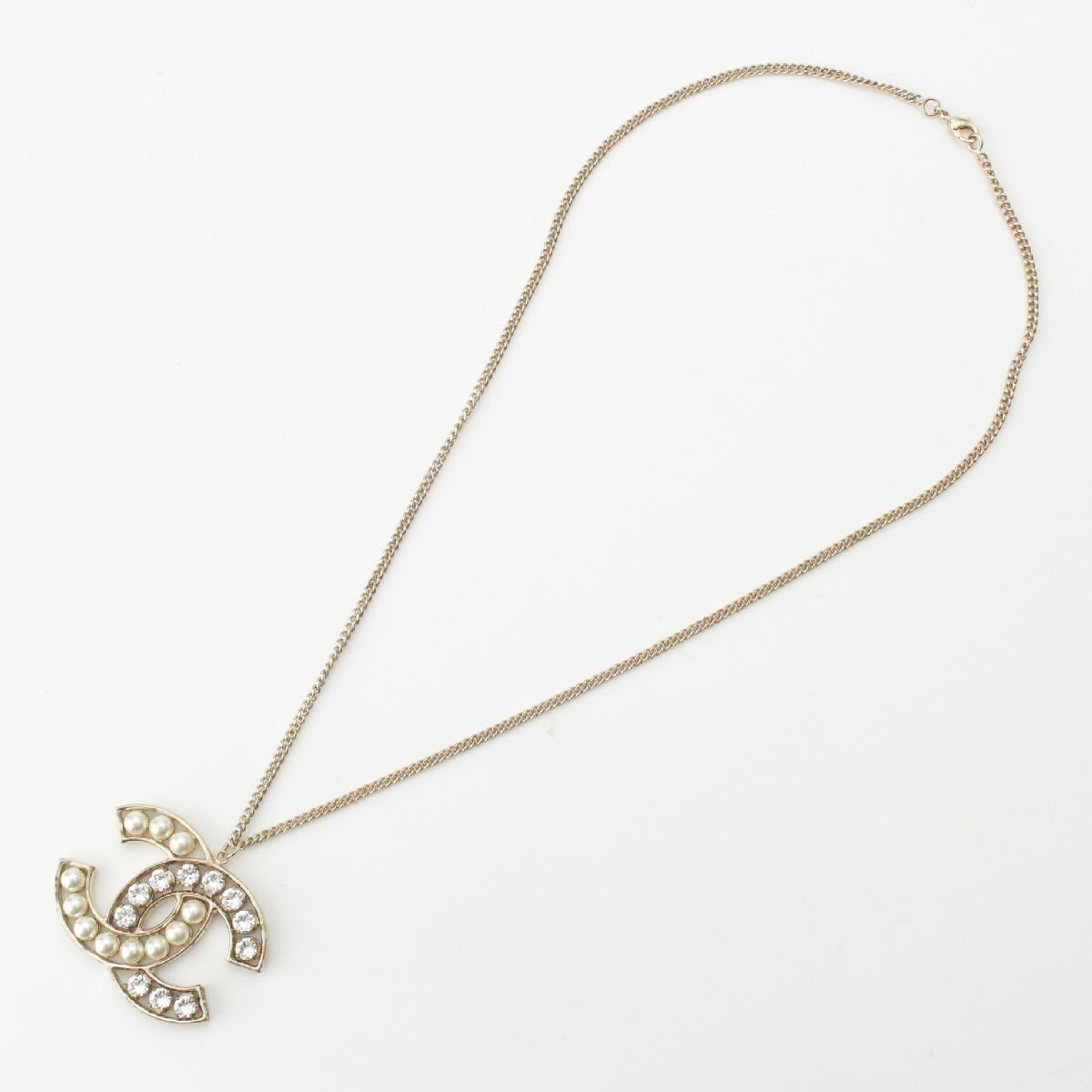 CHANEL B16V COCO Mark F Pearl Bijou Rhinestone Necklace Pendant accessories gold