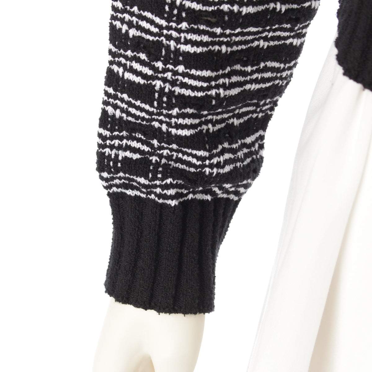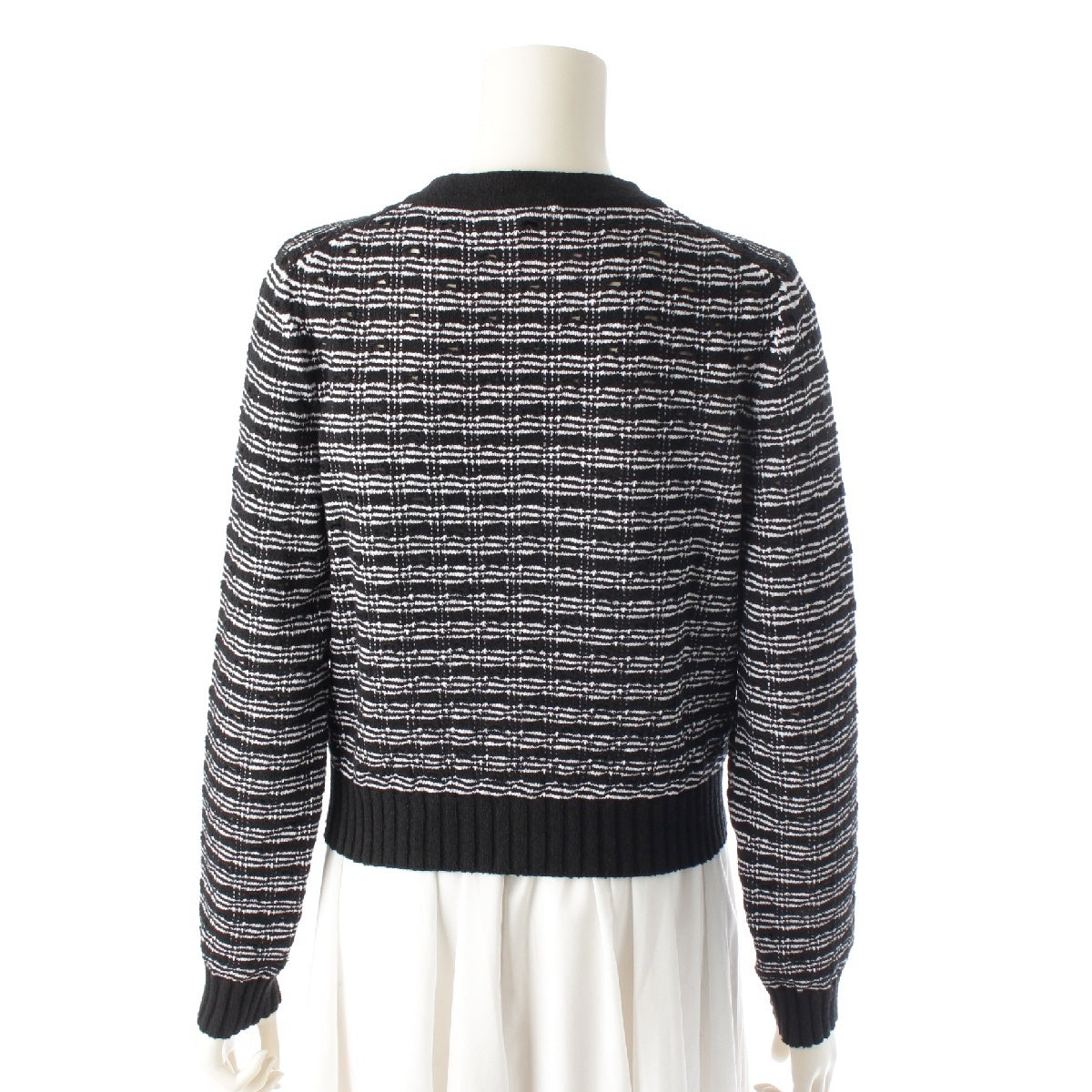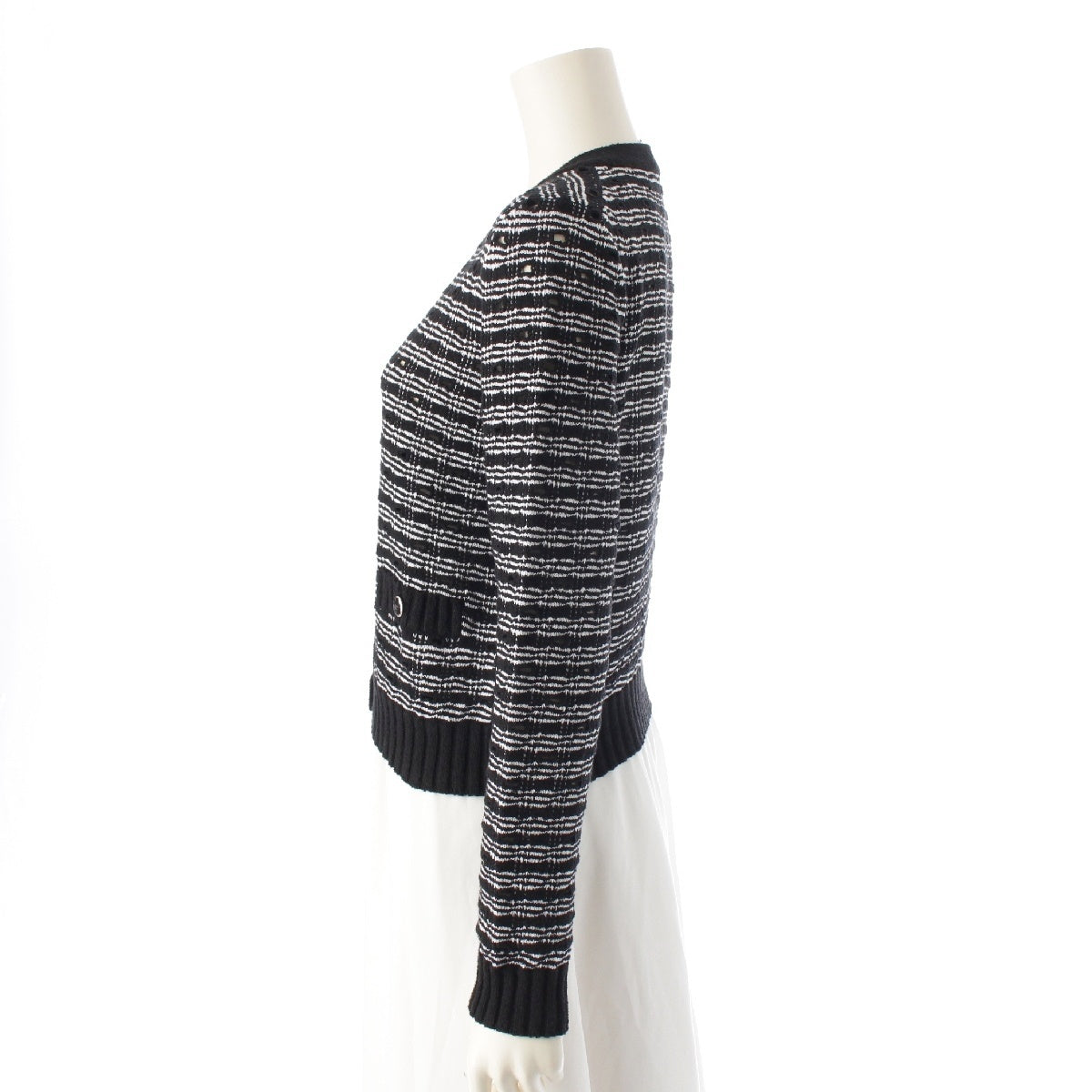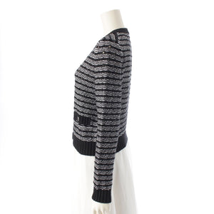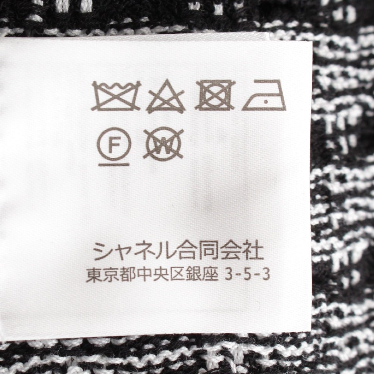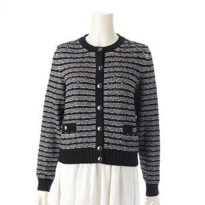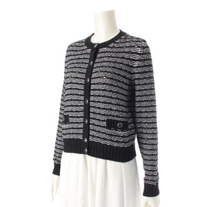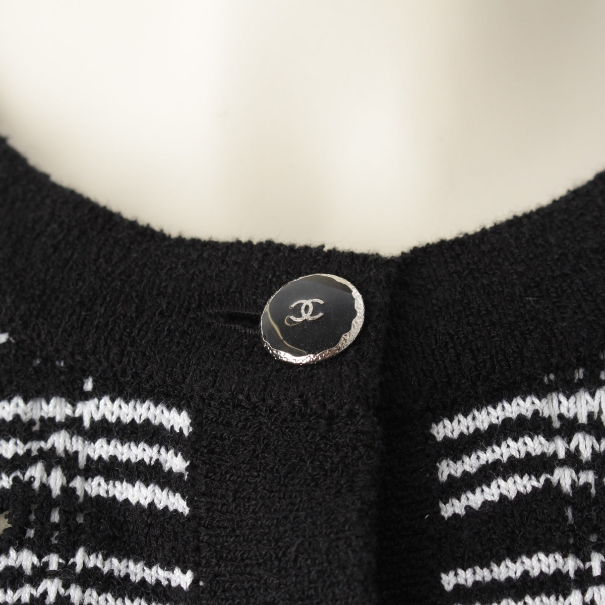 CHANEL 25P Cotton x silk COCO Button Border Knit cardigan tops Black x white 34