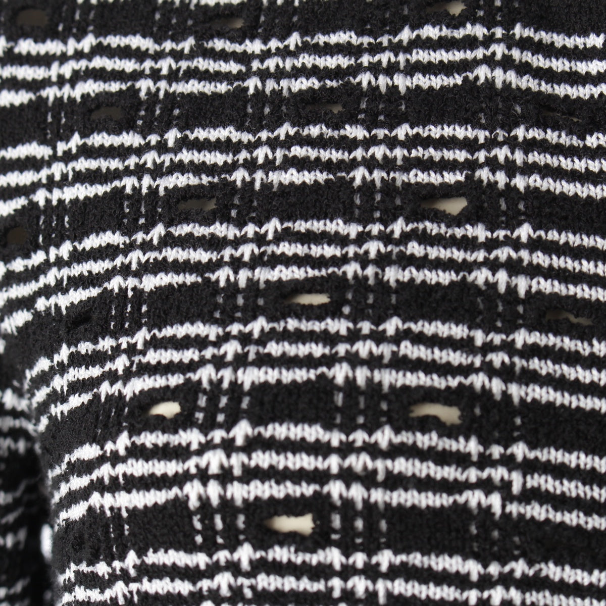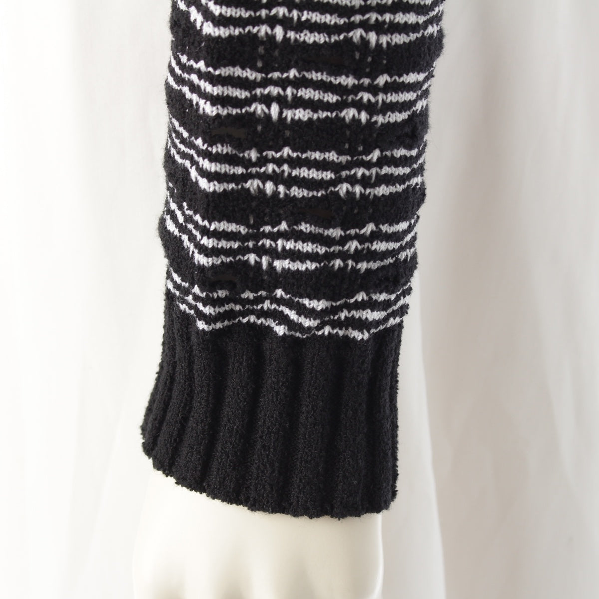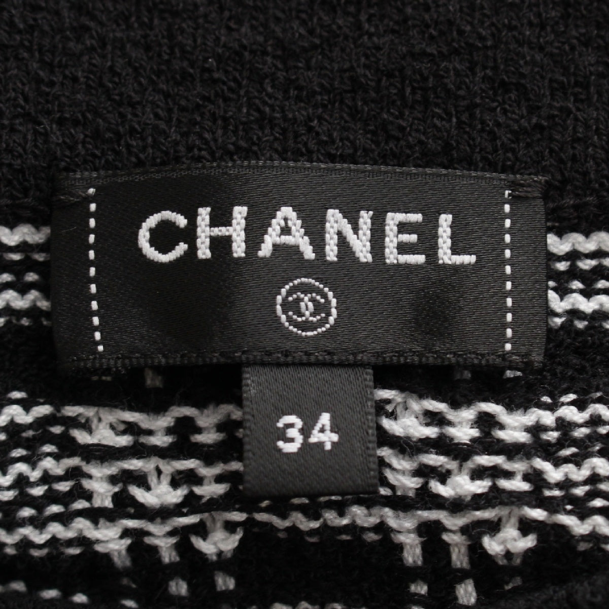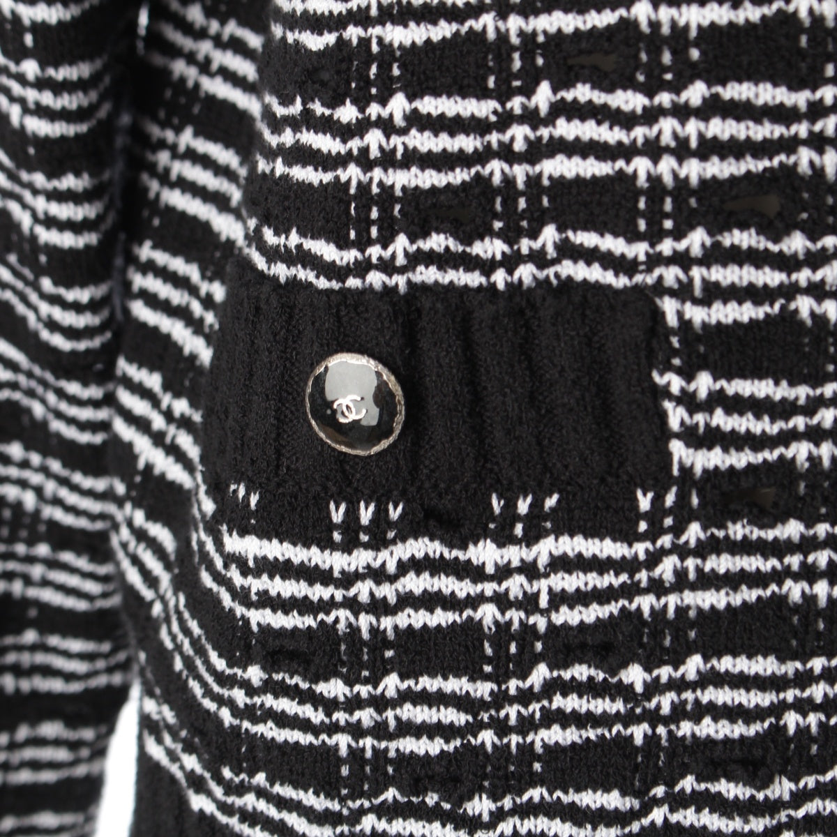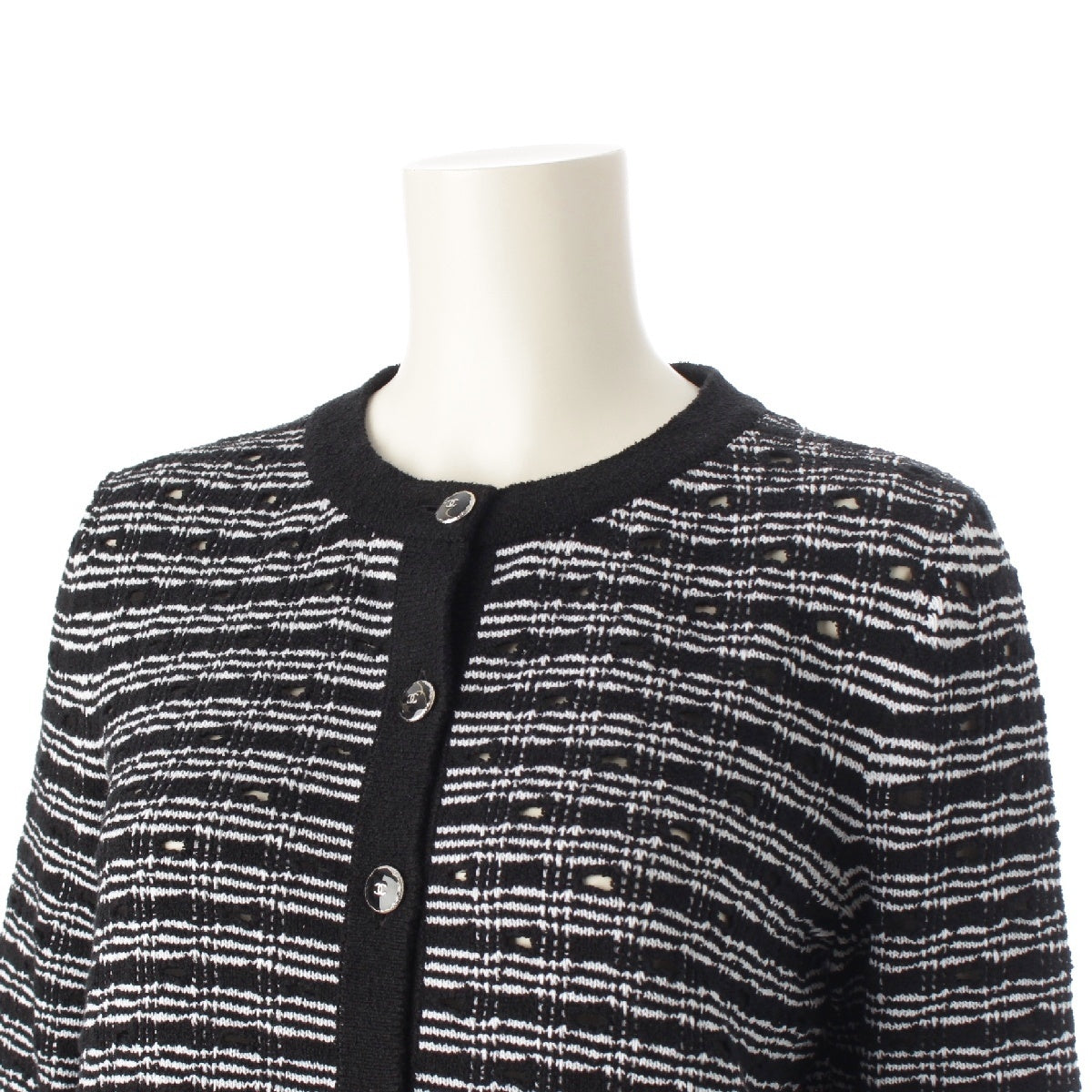CHANEL 25P Cotton x silk COCO Button Border Knit cardigan tops Black x white 34