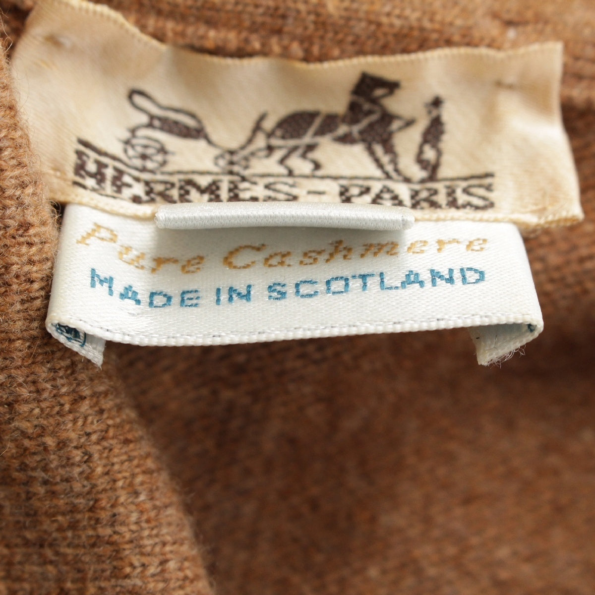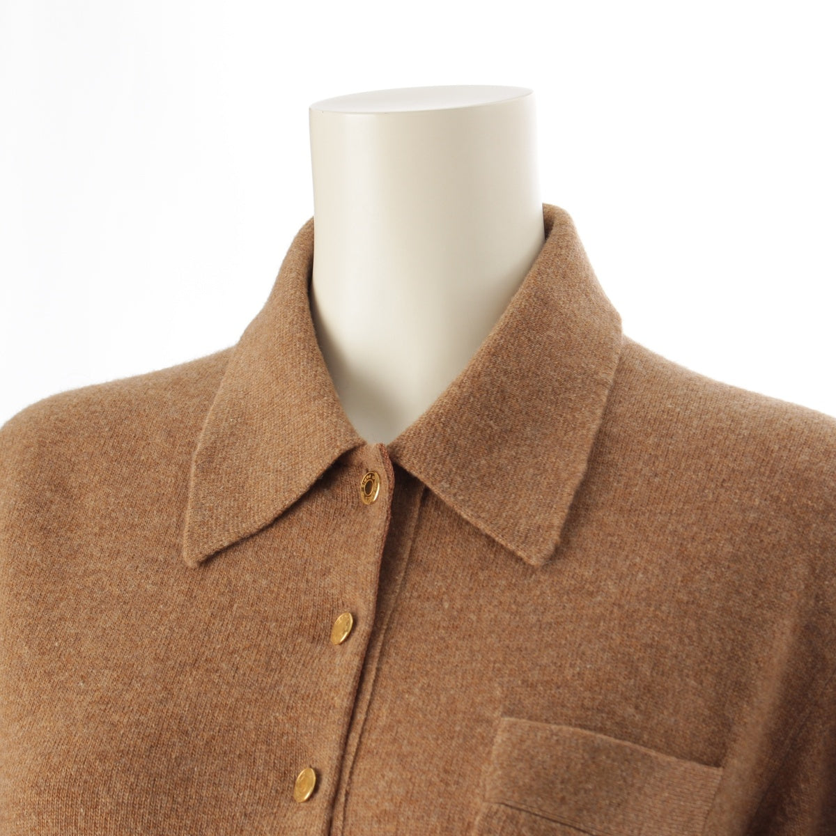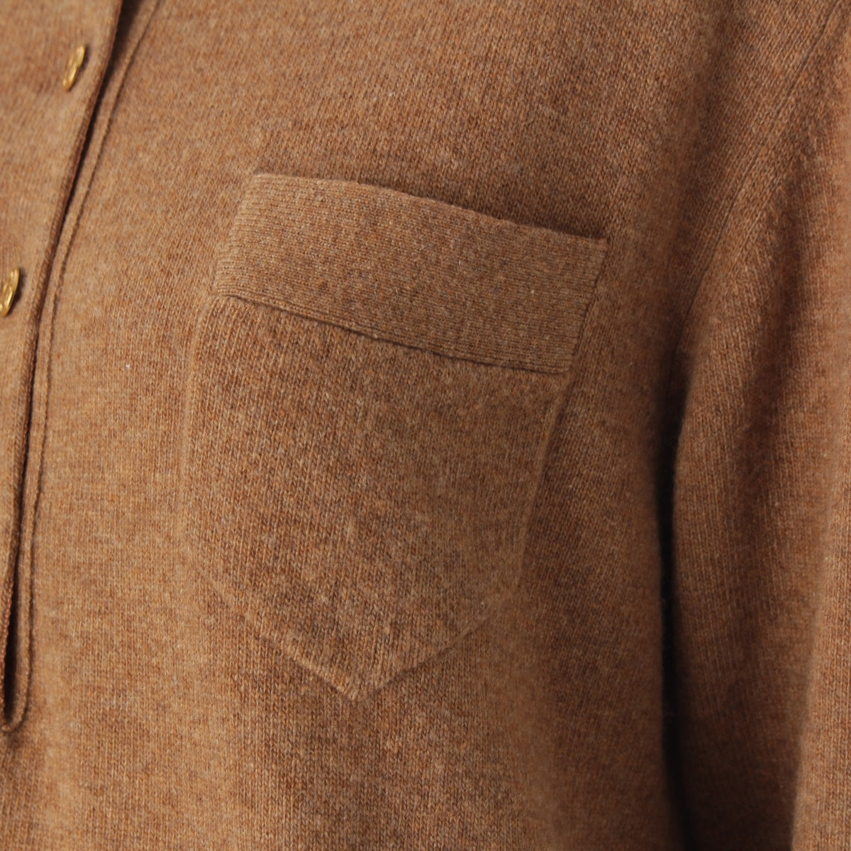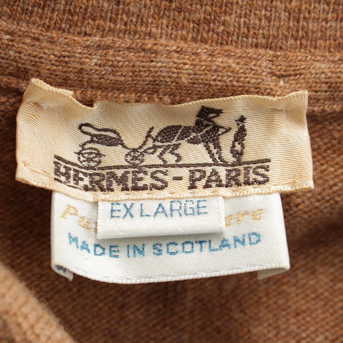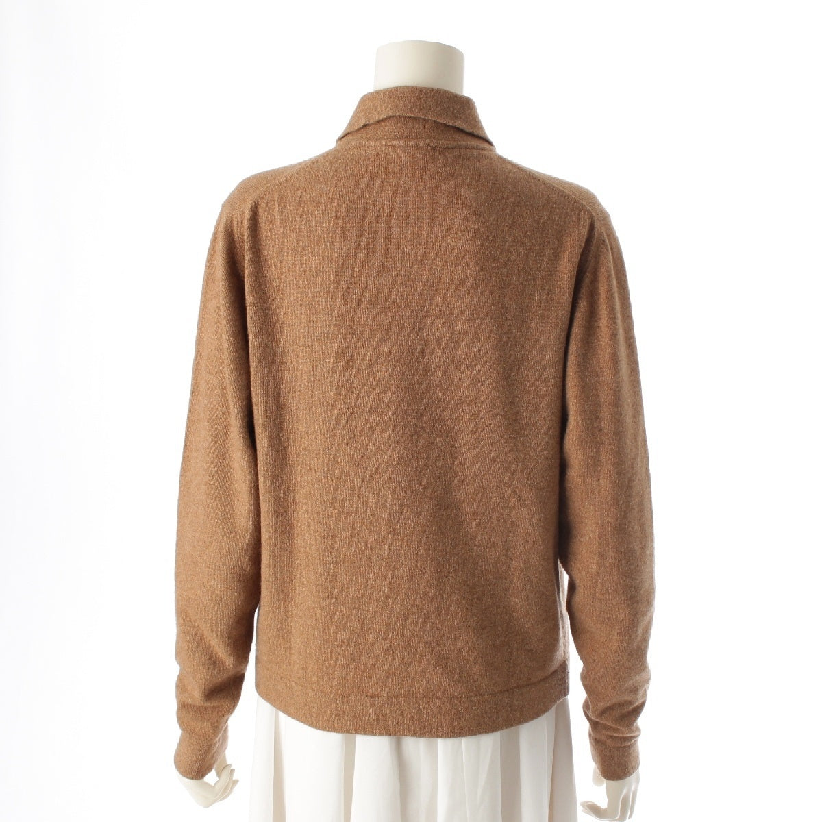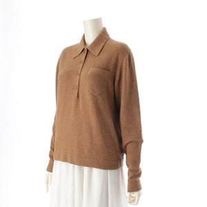 HERMES cashmere Vintage Serie Button Long Sleeve Knit Polo shirt Sweater tops Brown XL