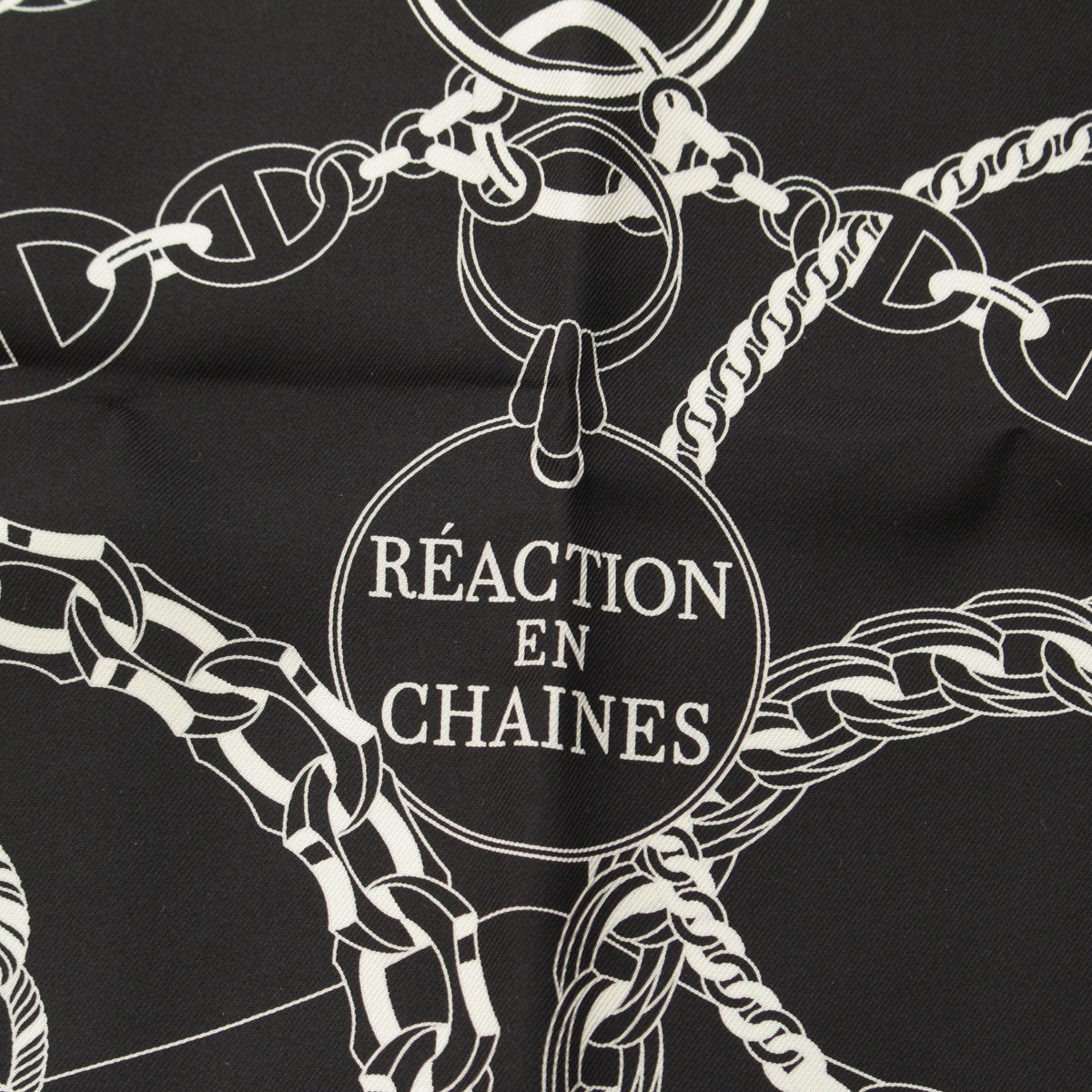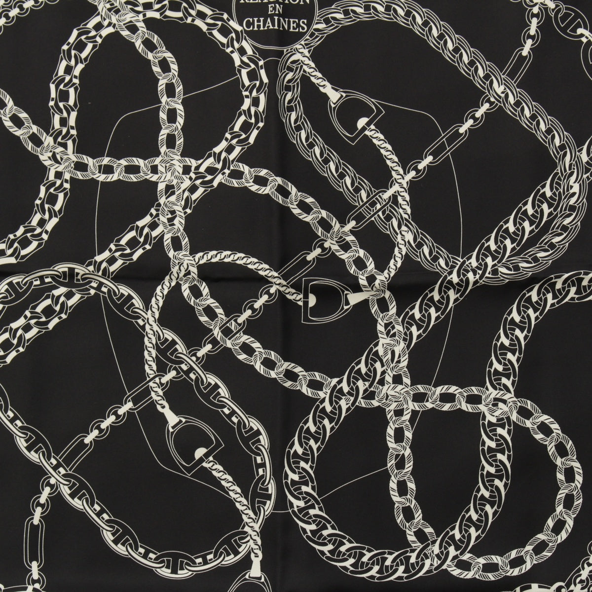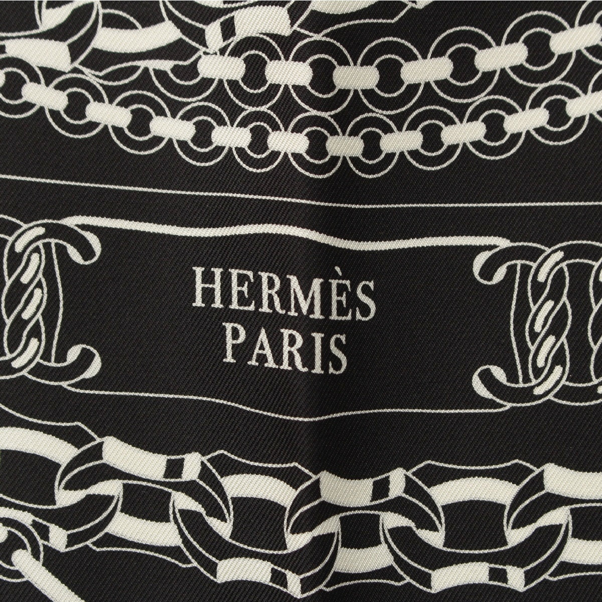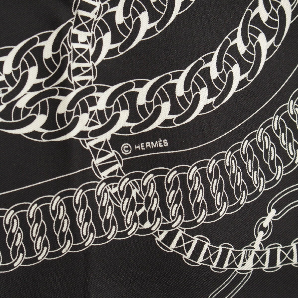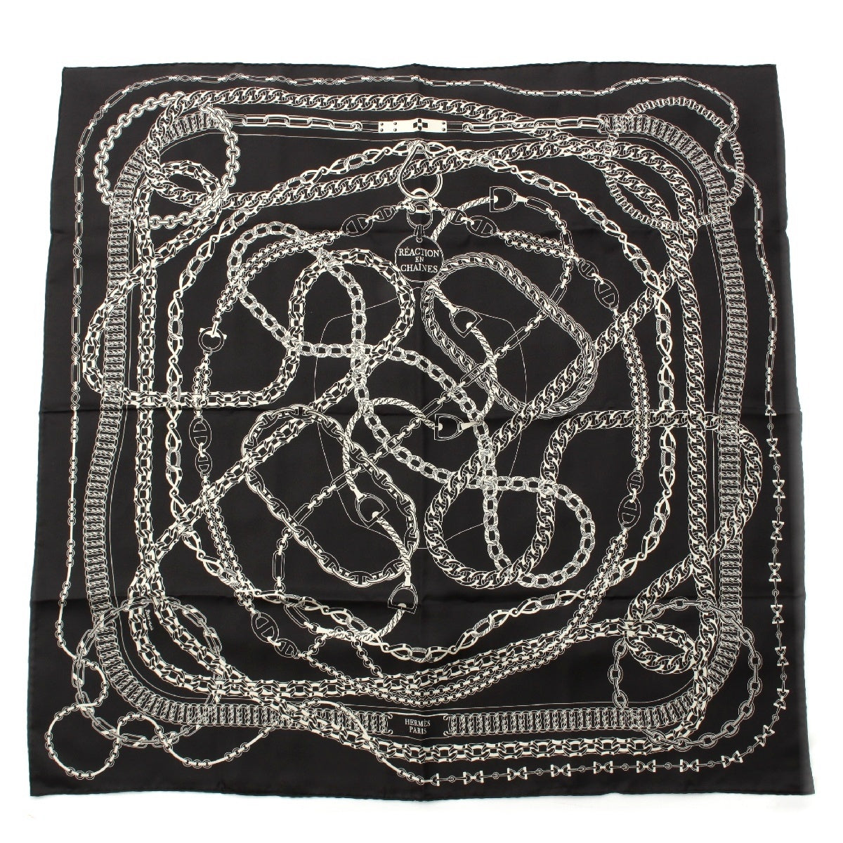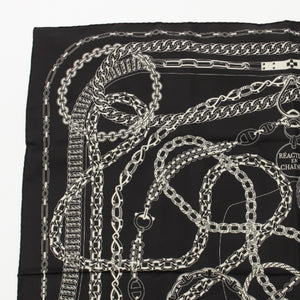 HERMES Calle 90 silk REACTION EN CHAINES scarf Black White