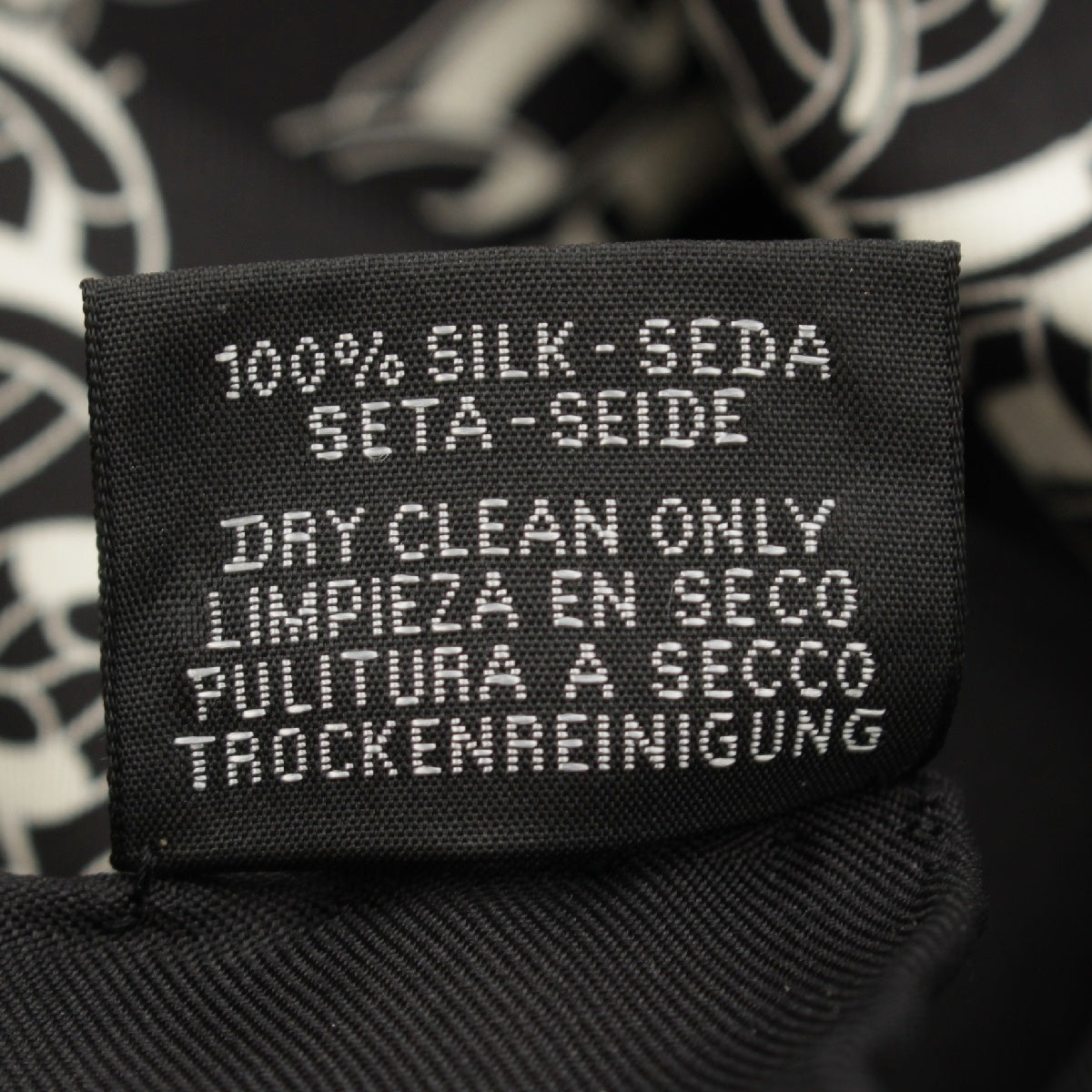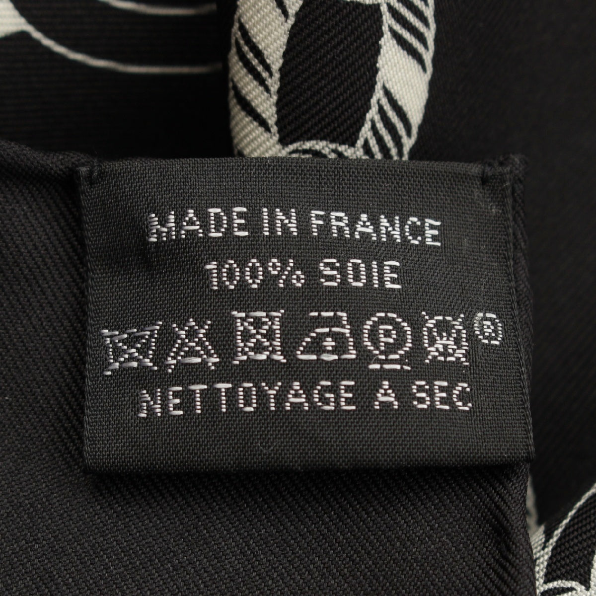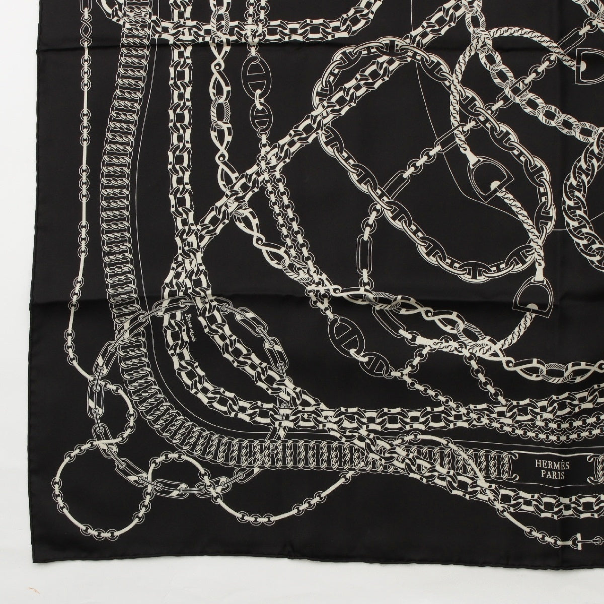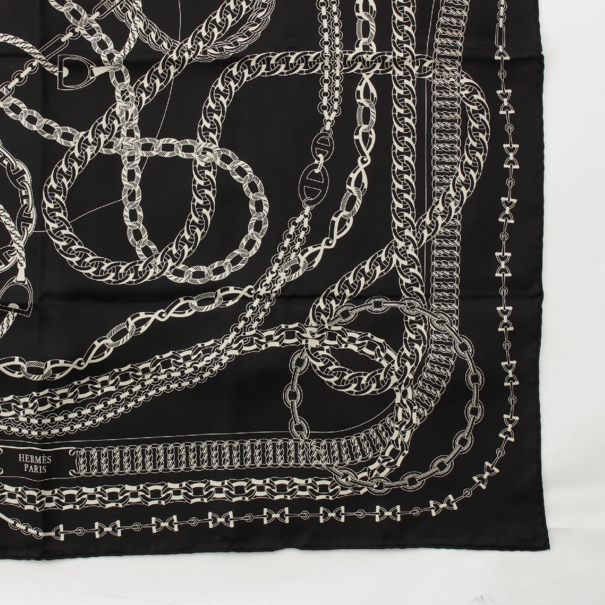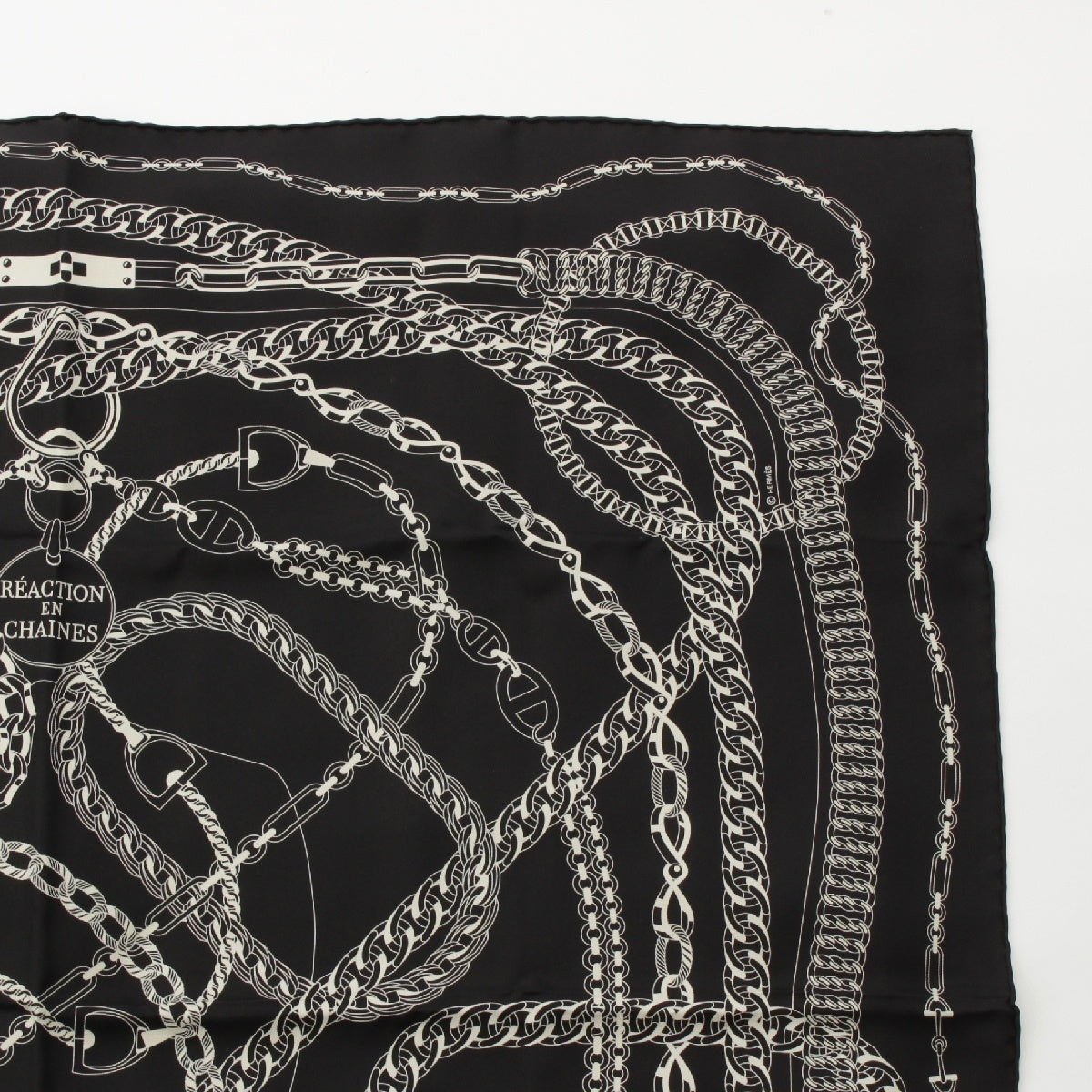 HERMES Calle 90 silk REACTION EN CHAINES scarf Black White