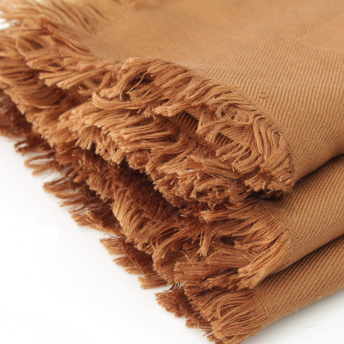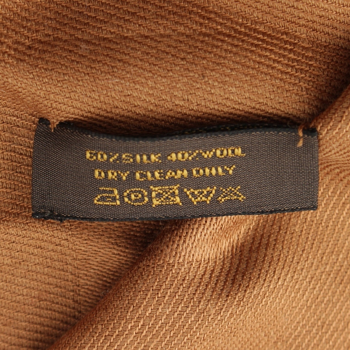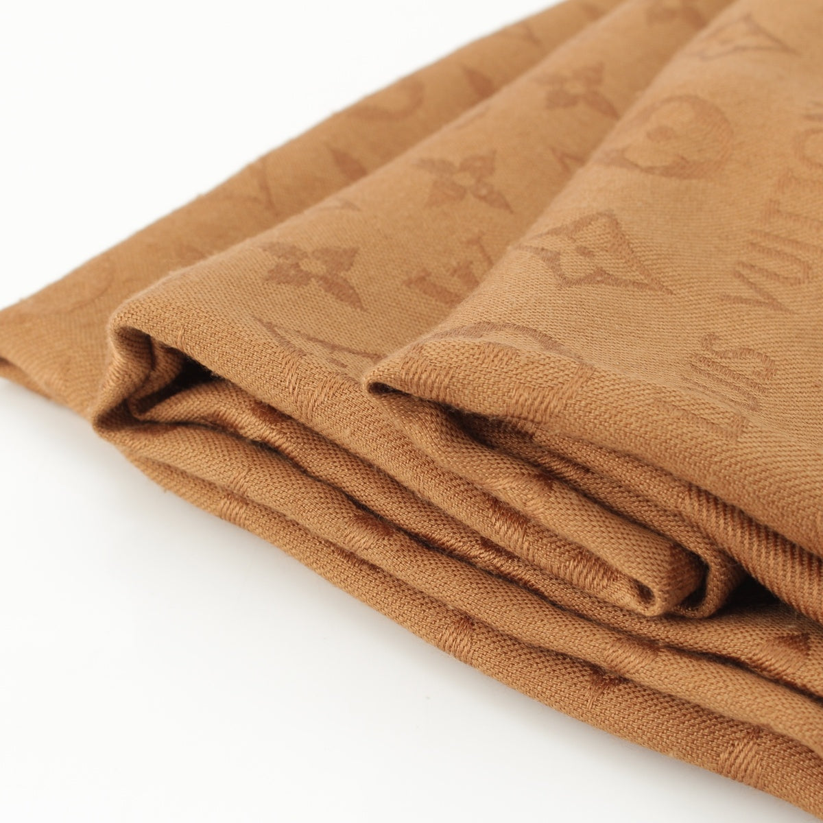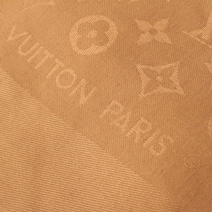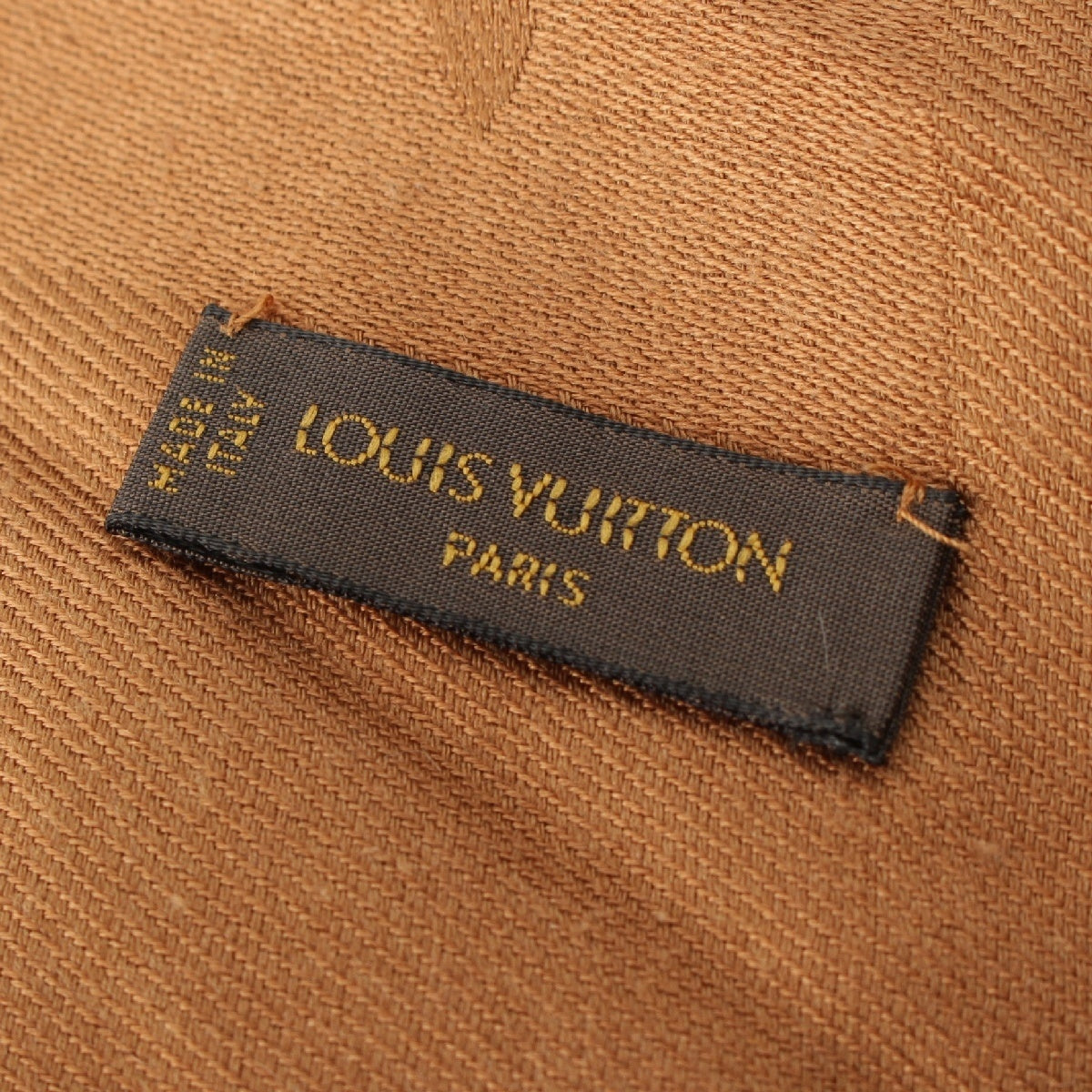 LOUIS VUITTON Silk wool Monogram Fringe Large Stall Scarf shawl Brown