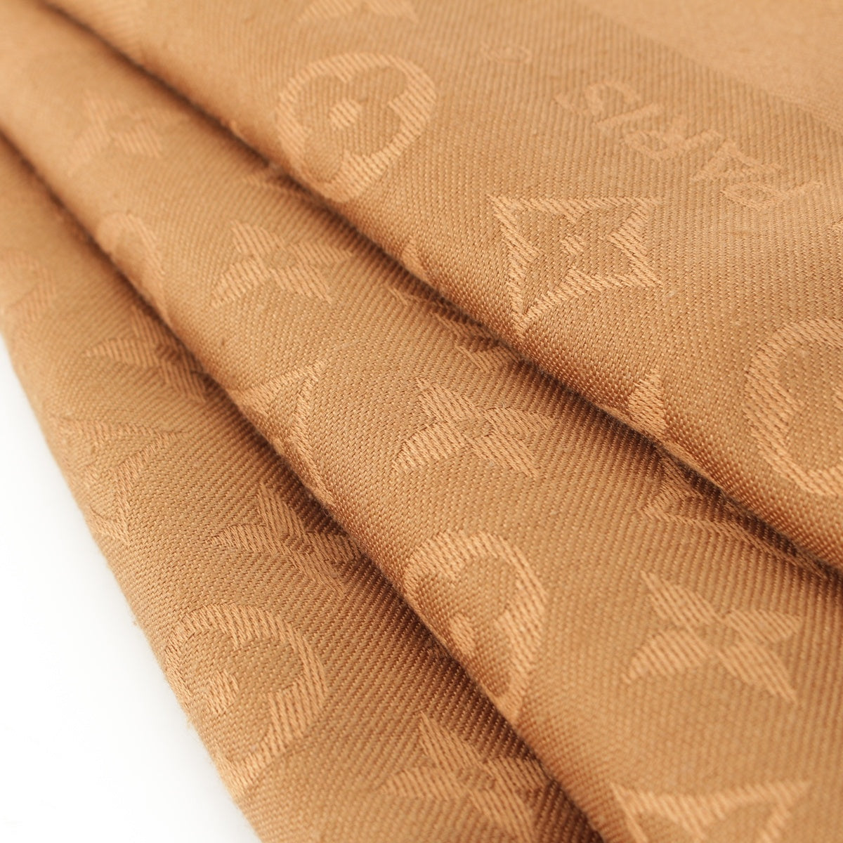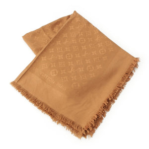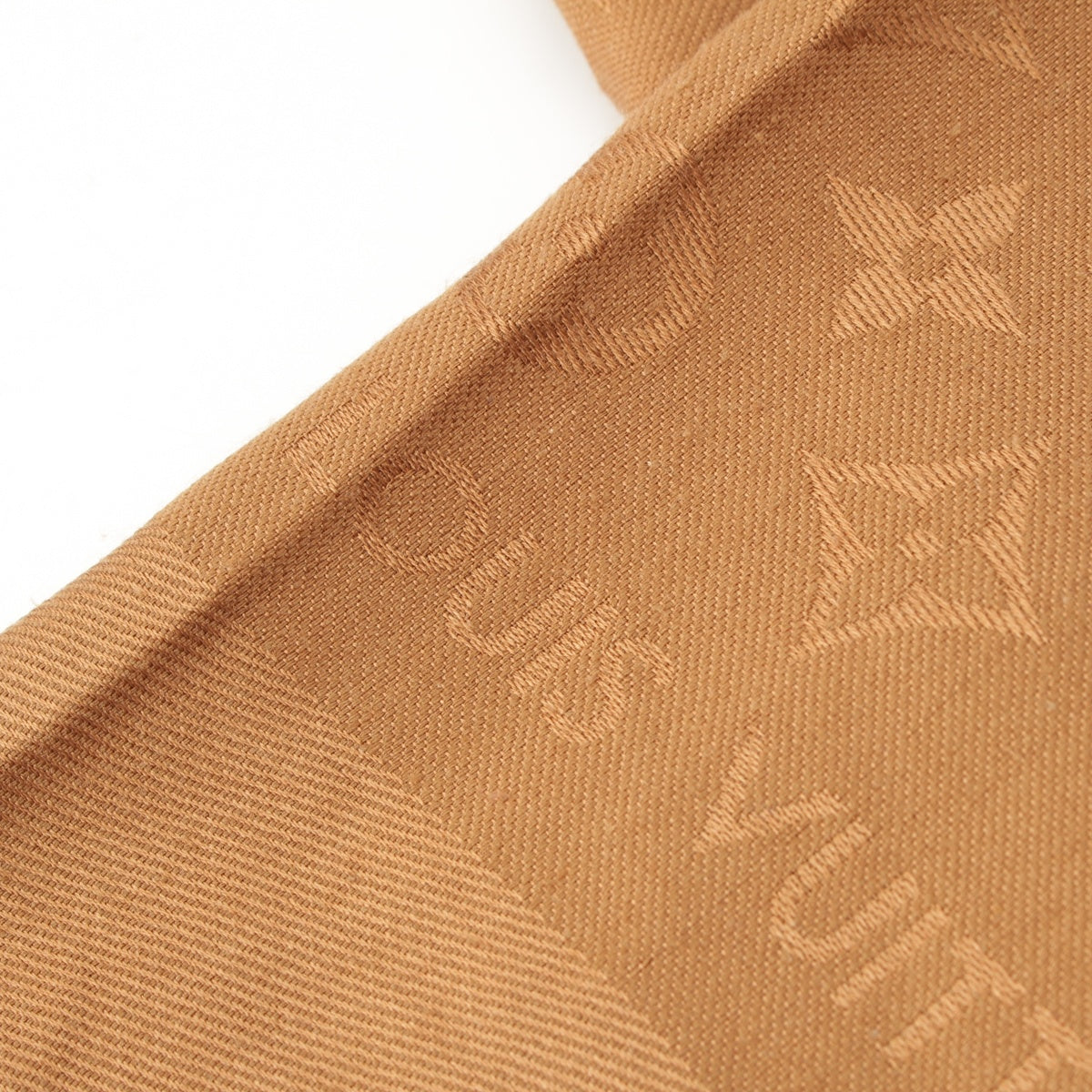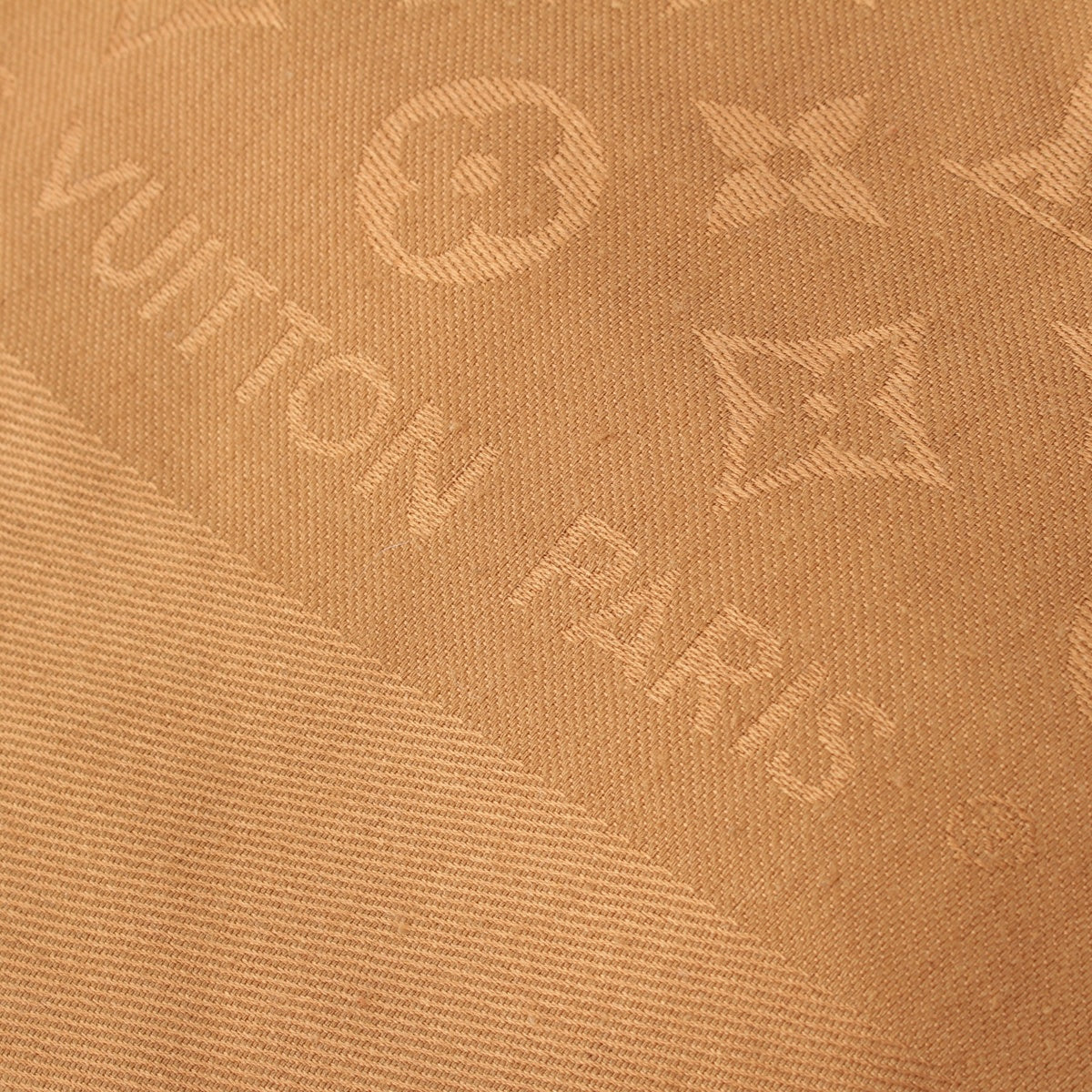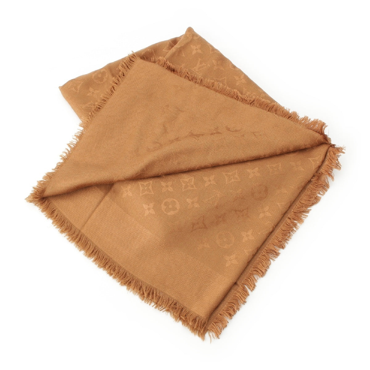 LOUIS VUITTON Silk wool Monogram Fringe Large Stall Scarf shawl Brown