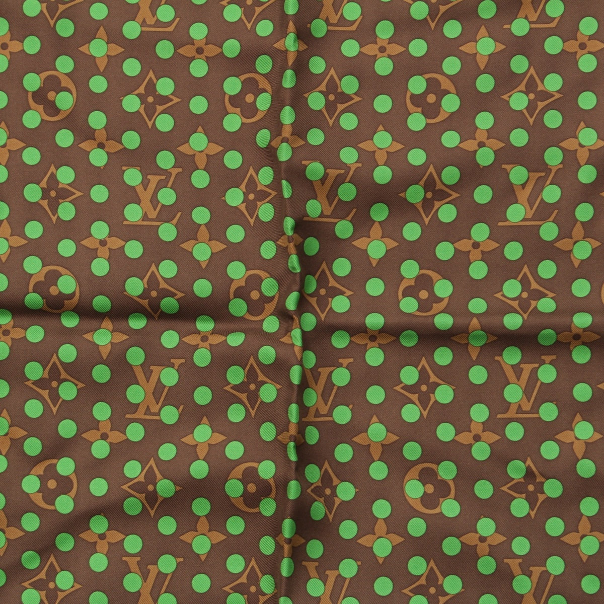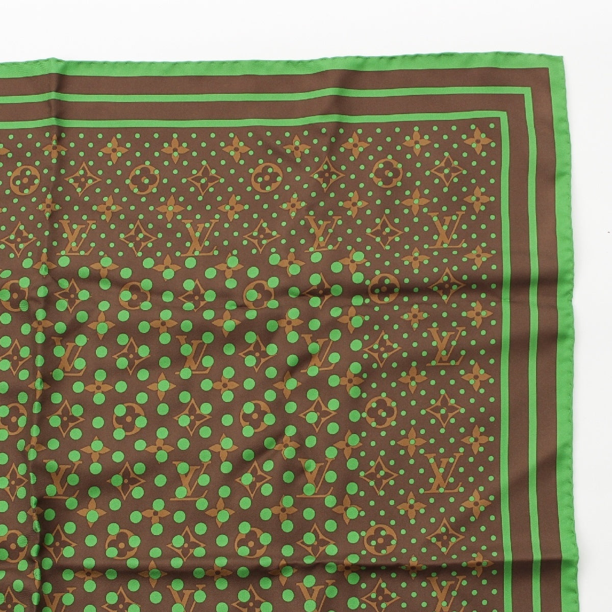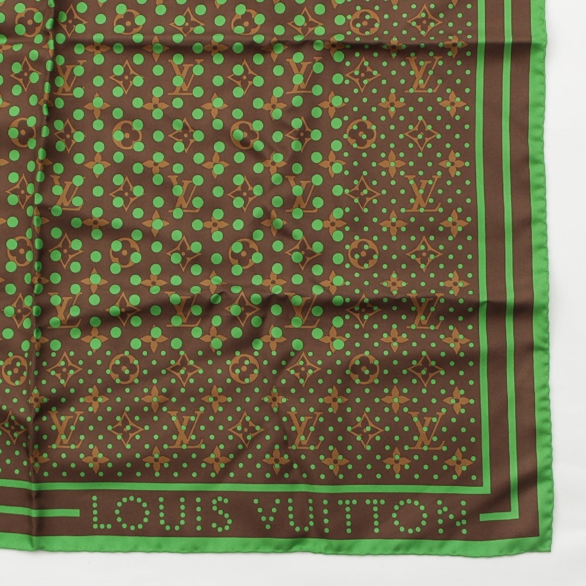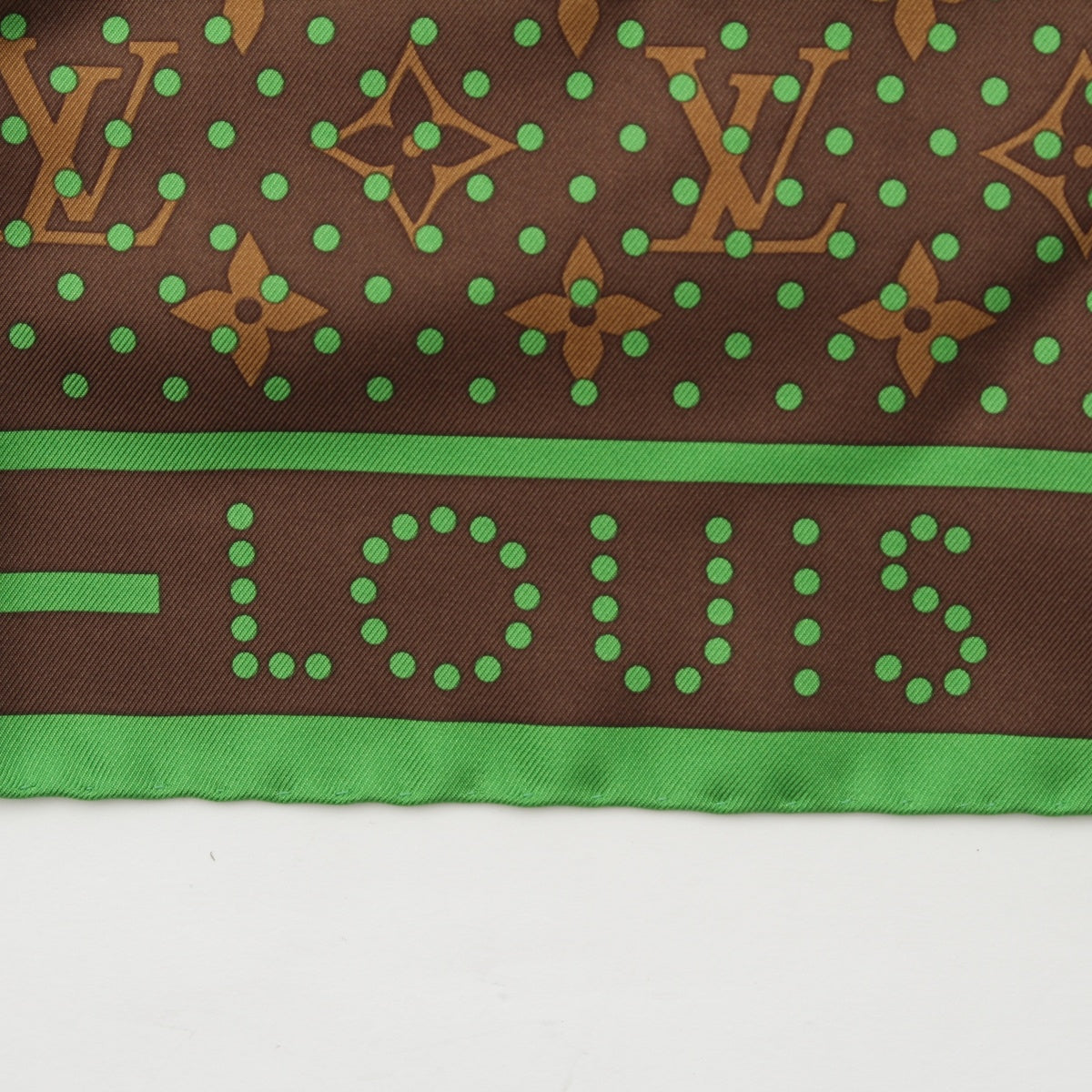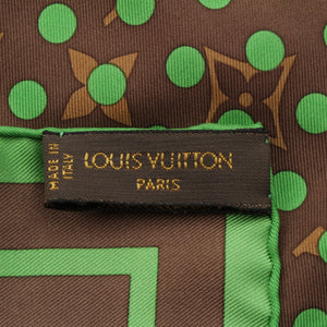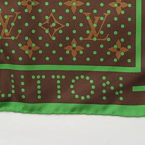 LOUIS VUITTON Monogram Perfo Silk LV logo dot pattern scarf Brown green