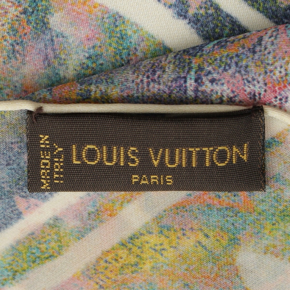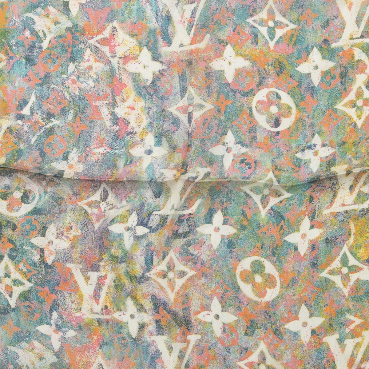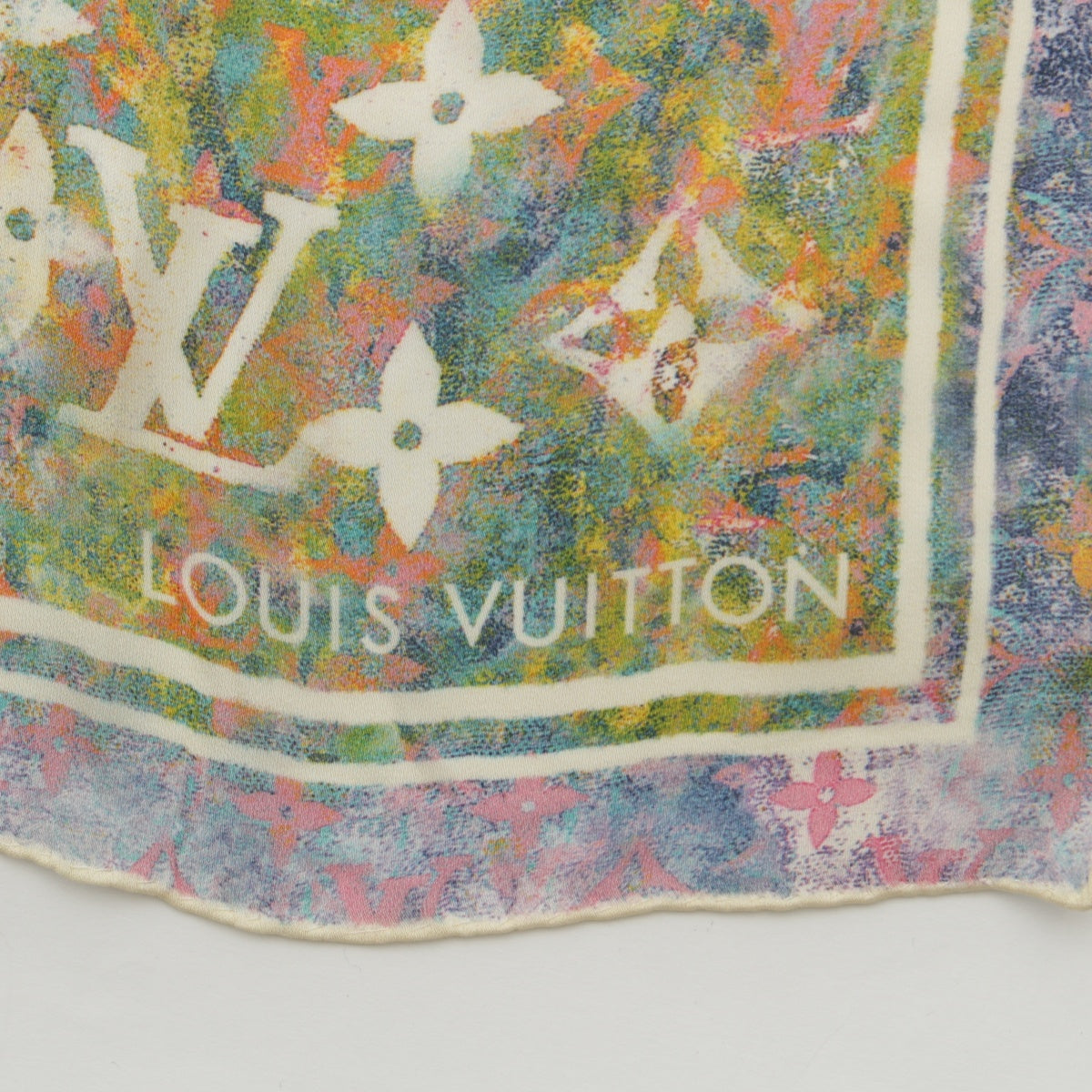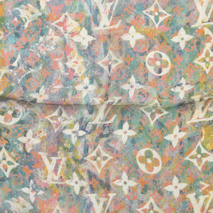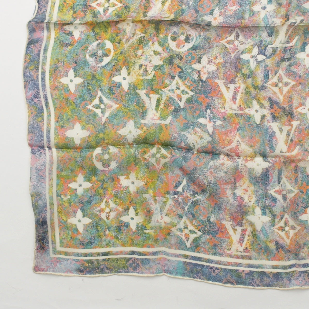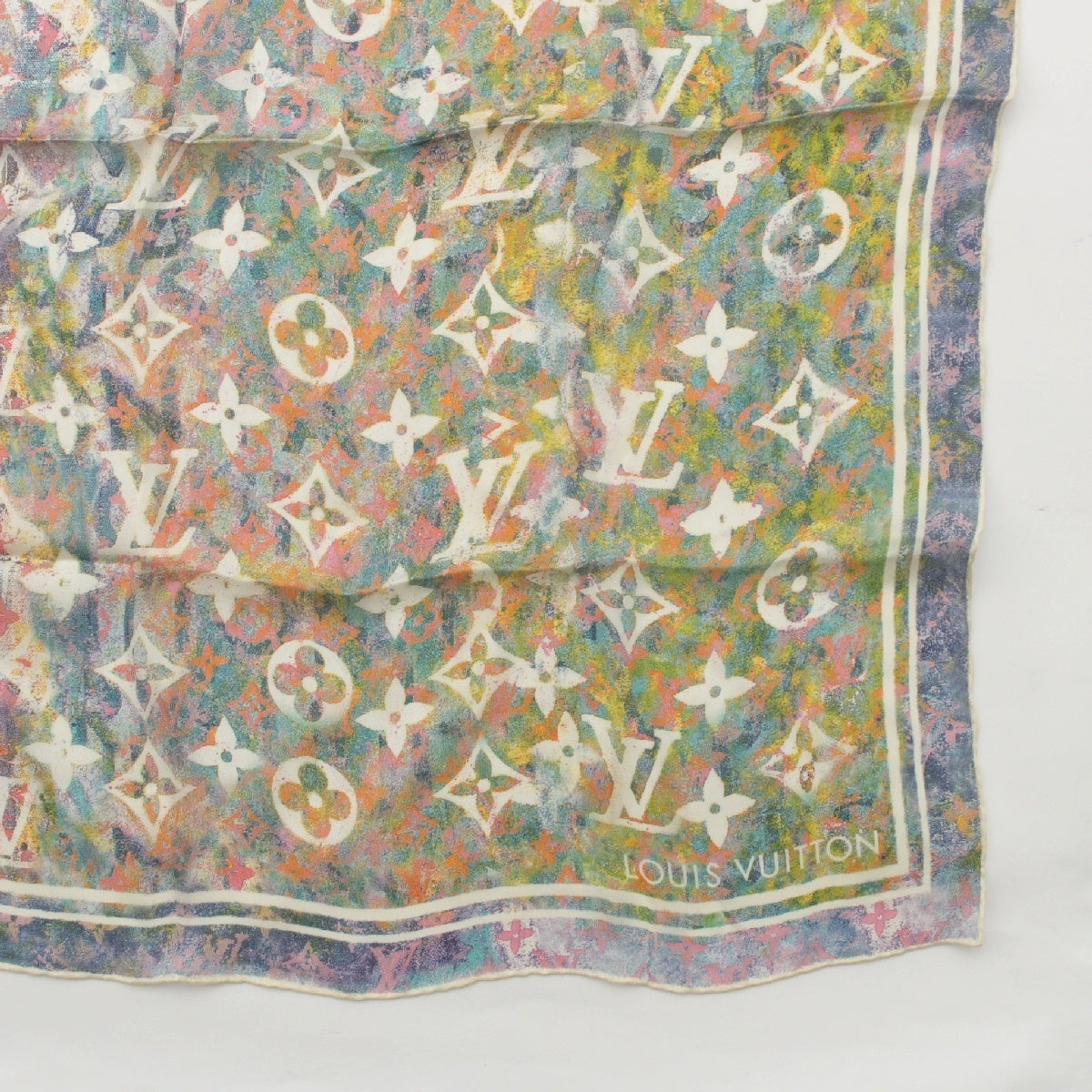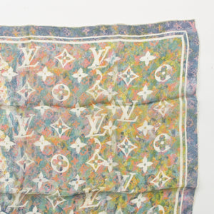 LOUIS VUITTON Monogram silk Chiffon LV logo scarf Green blue pink