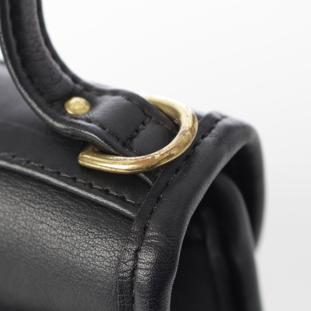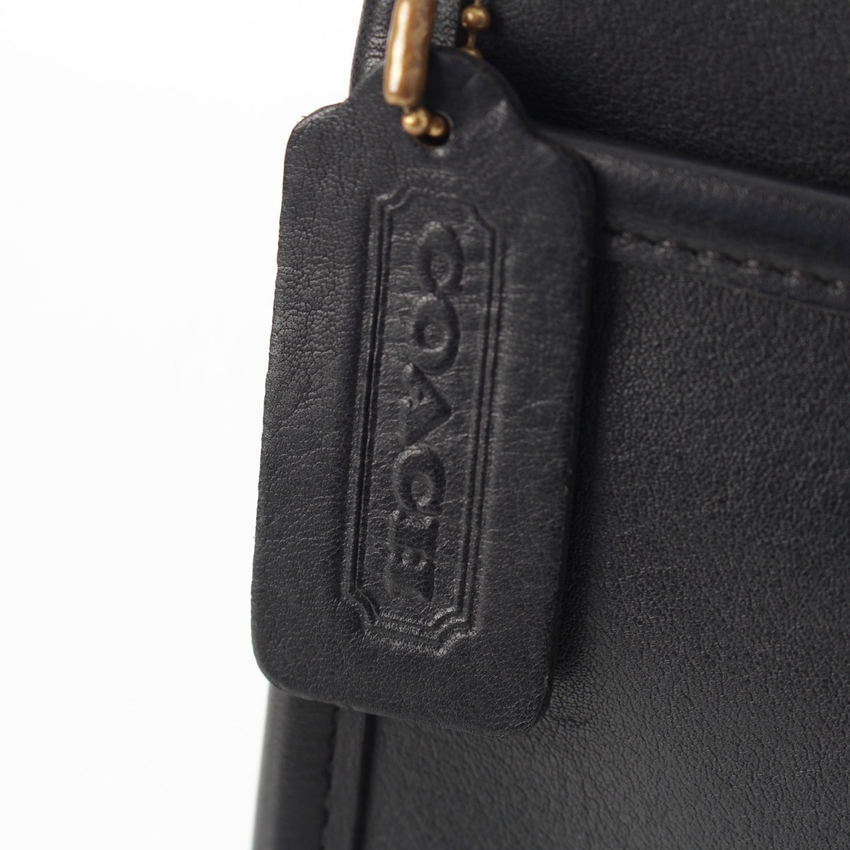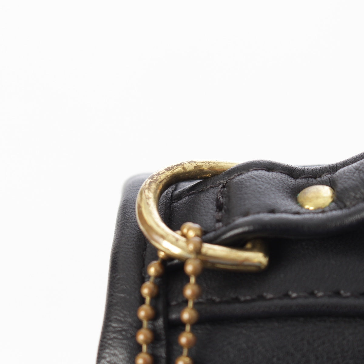 COACH vintage OLD leather Handbag Logo embossed charm 9985 Black Gold Metal