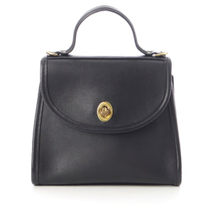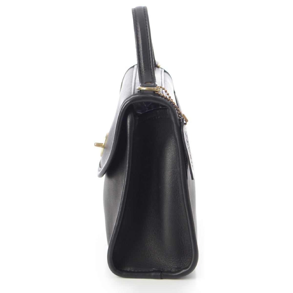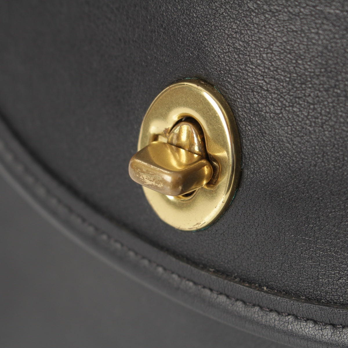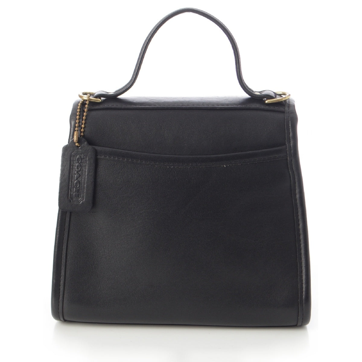 COACH vintage OLD leather Handbag Logo embossed charm 9985 Black Gold Metal