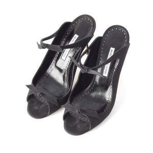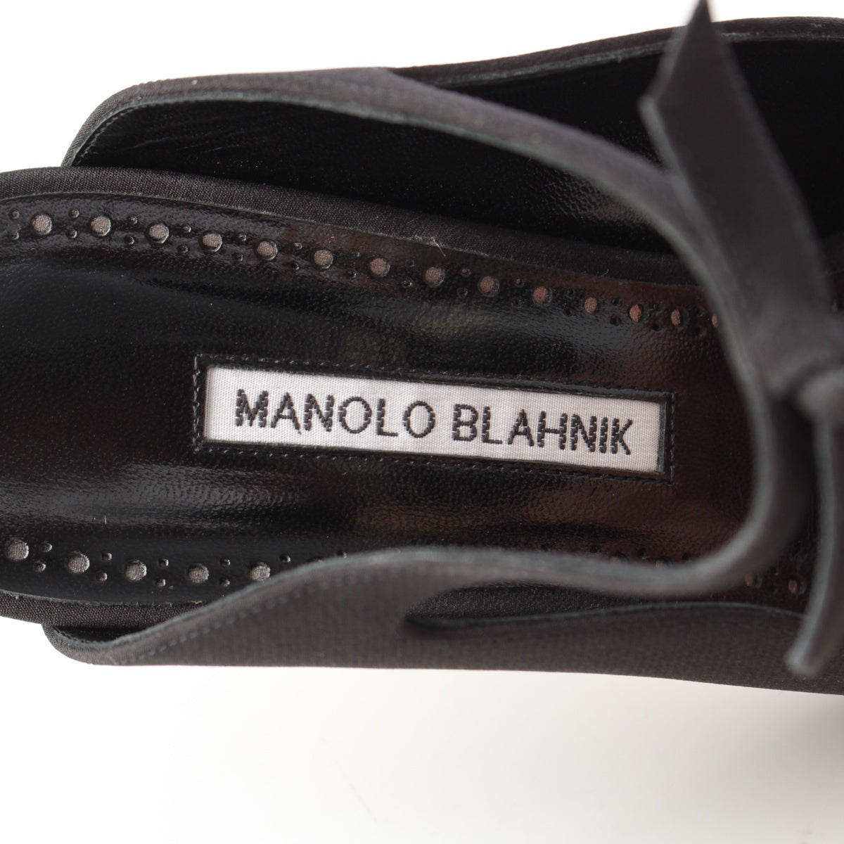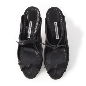MANOLO BLAHNIK fiocchetti 90 ankle strap open toe heel pumps Mule black 38 1/2