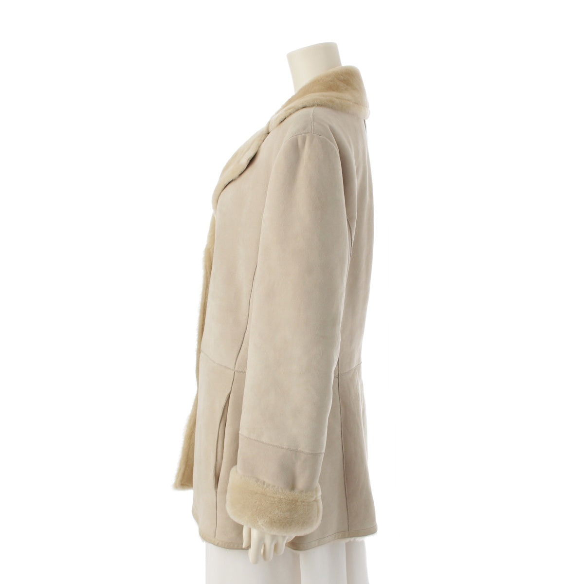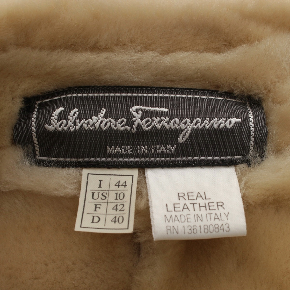 Salvatore Ferragamo Mouton fur leather Jacket outer Ivory beige 44