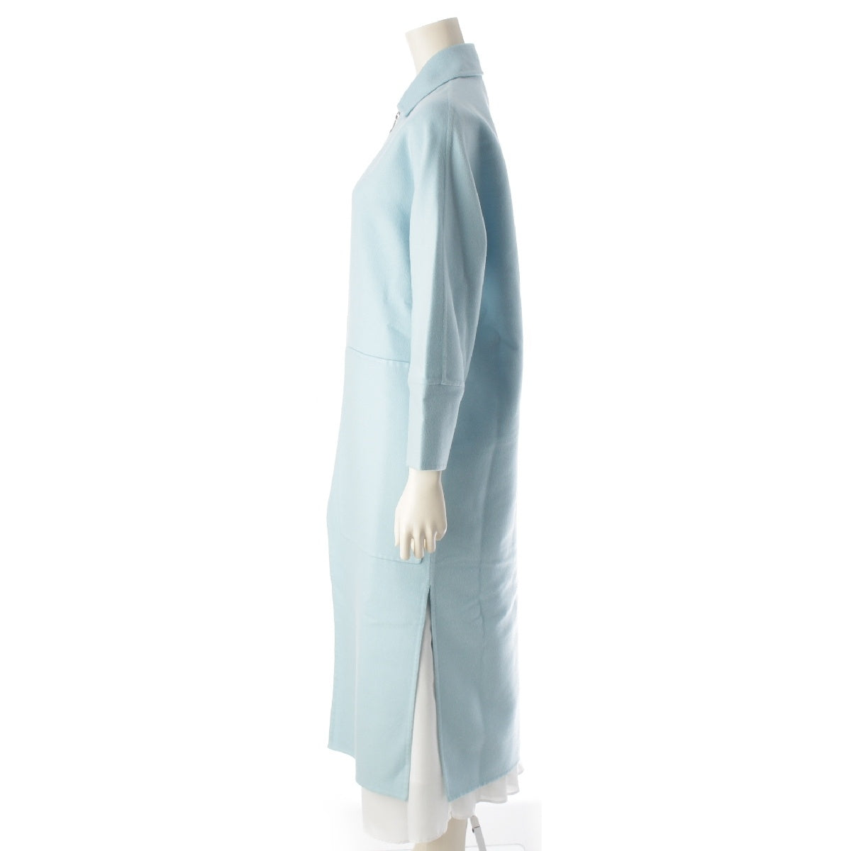 HERMES cashmere Double Face Zip coat outer Light Blue Sax 34