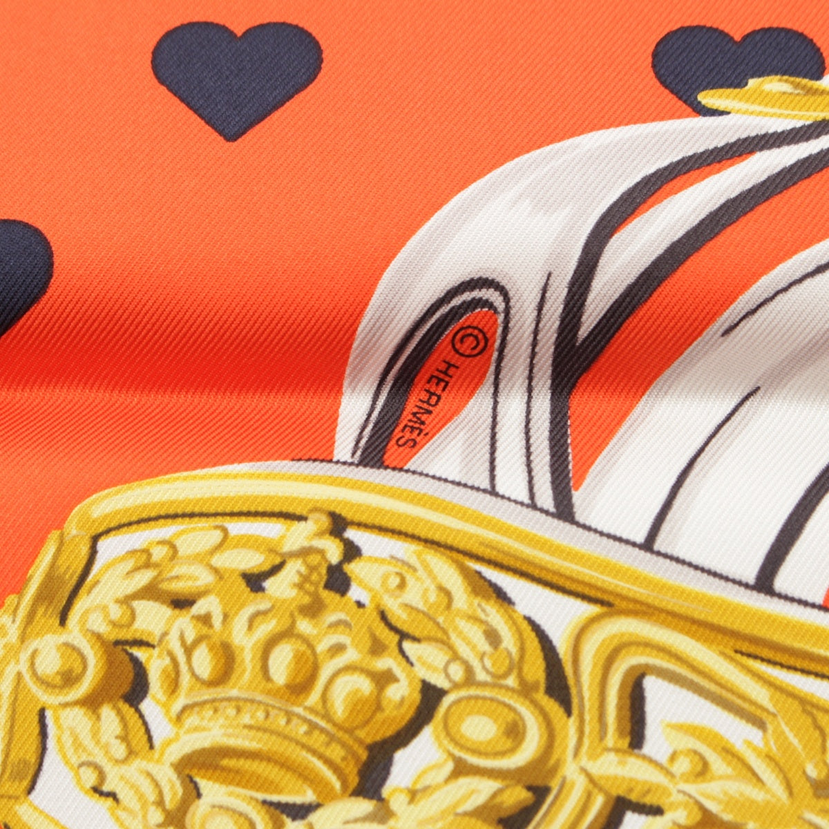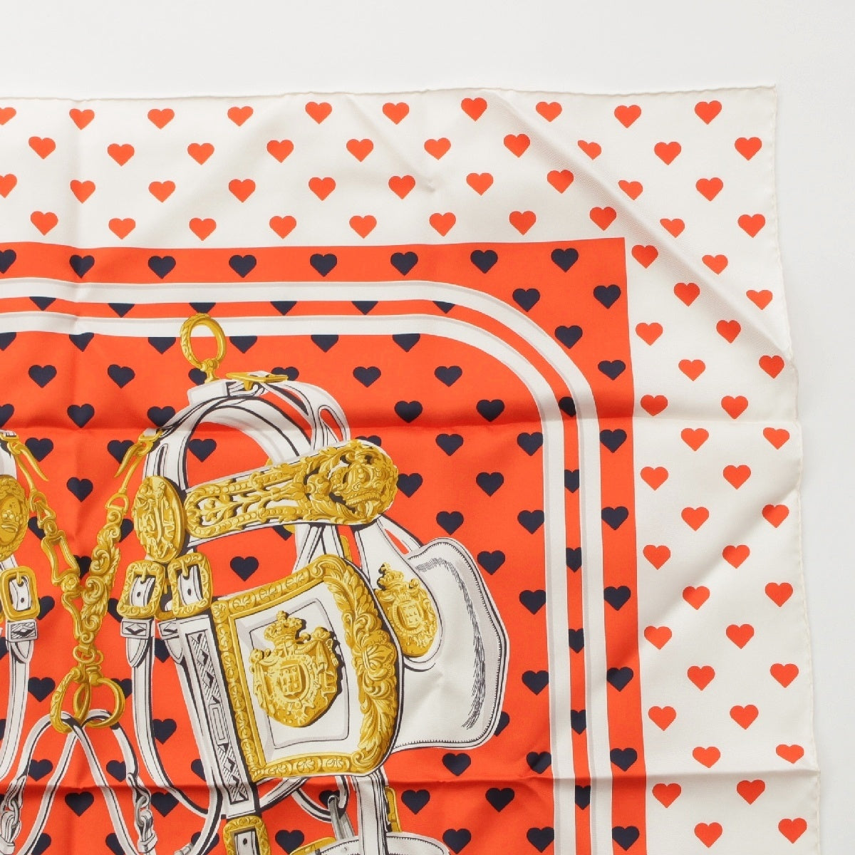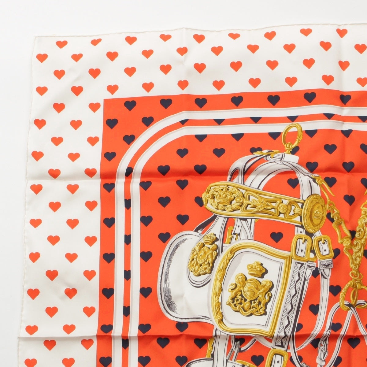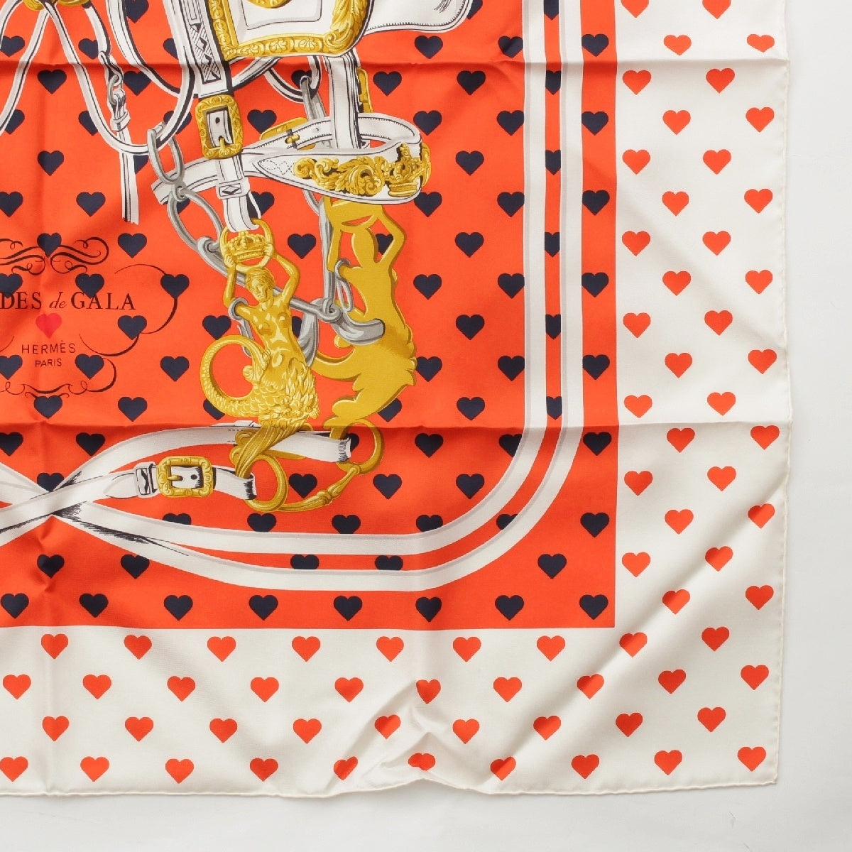 HERMES Limited Edition Carre 90 silk BRIDES de GALA LOVE Ceremonial Bridle Heart Dot scarf Orange white