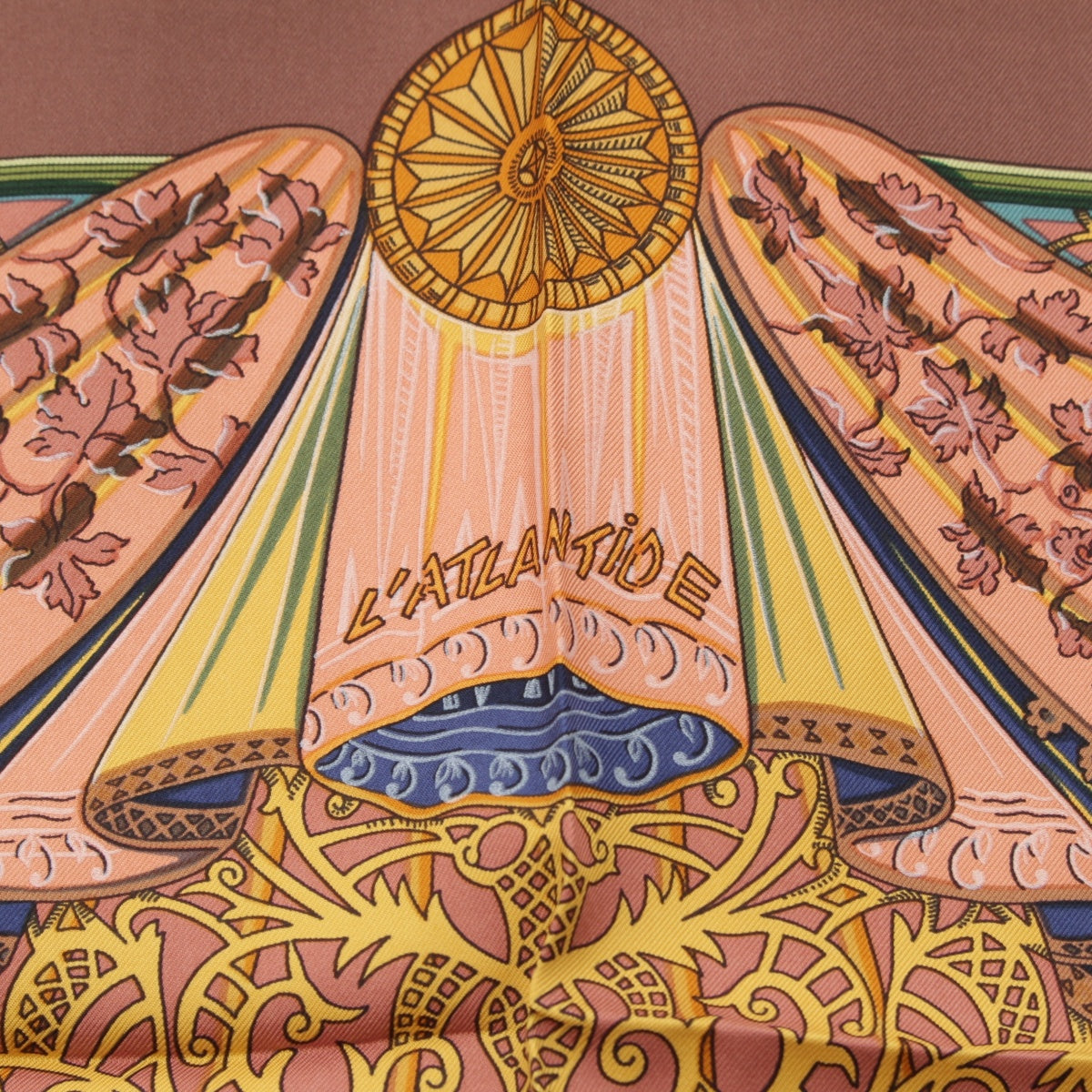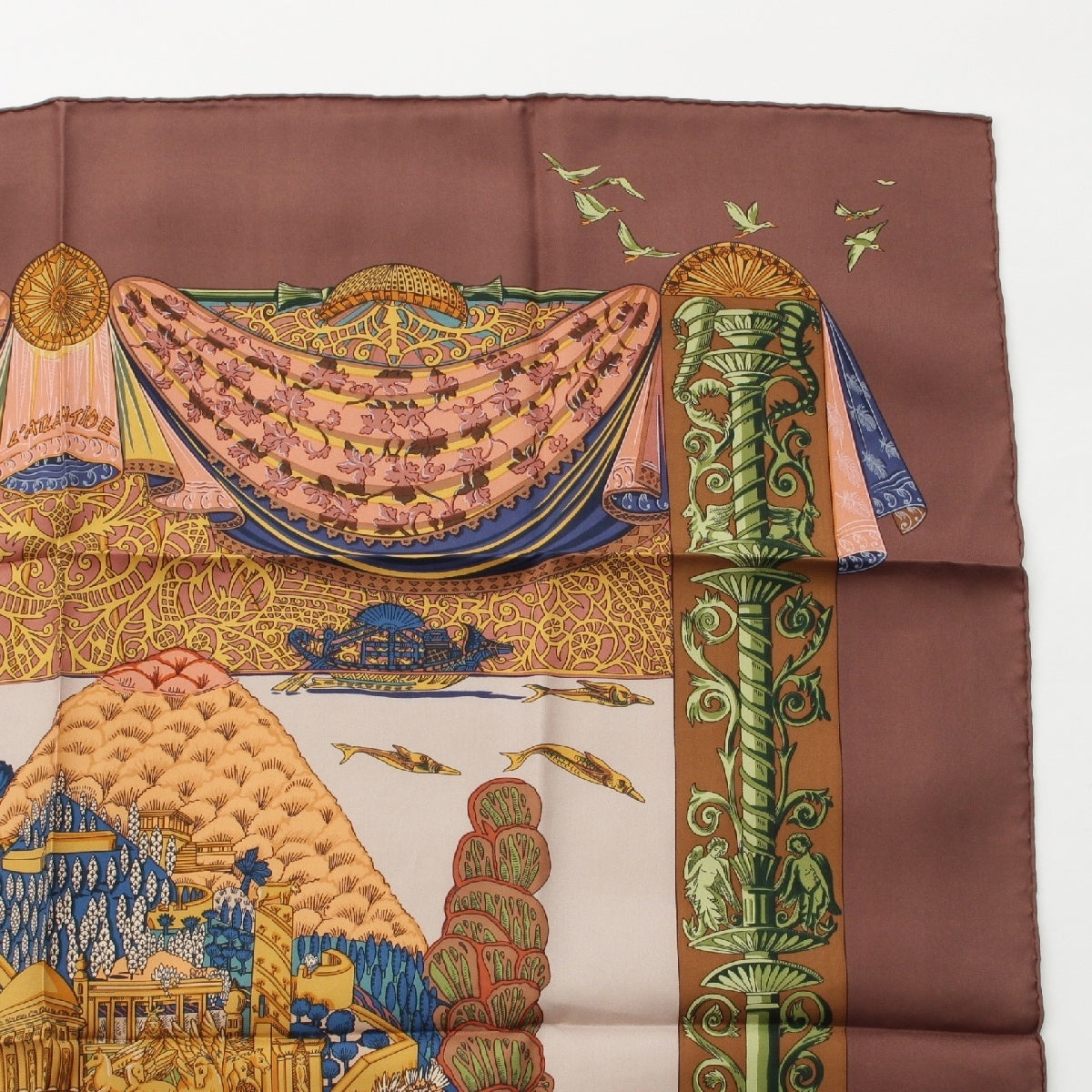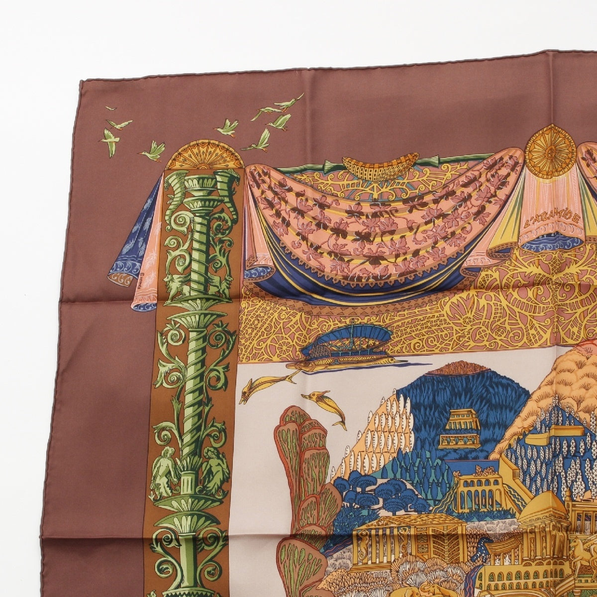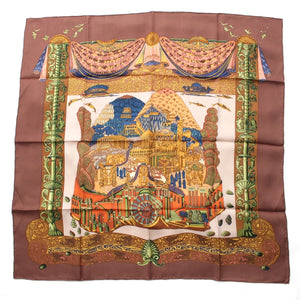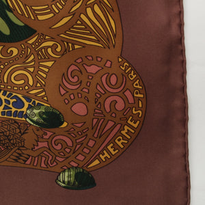 HERMES Calle 90 silk L'ATLANTIDE Atlantis Continent scarf Animal Landscape Brown