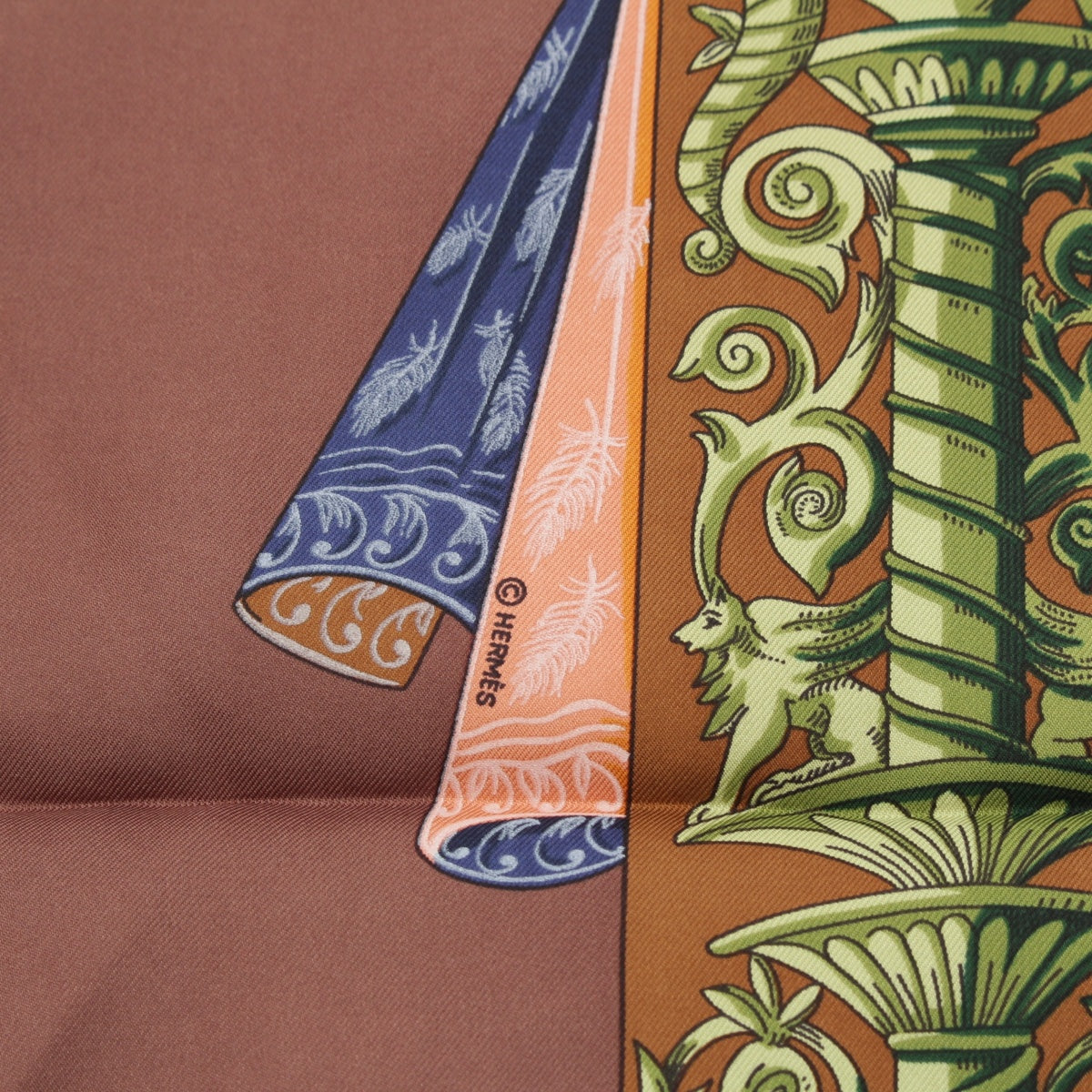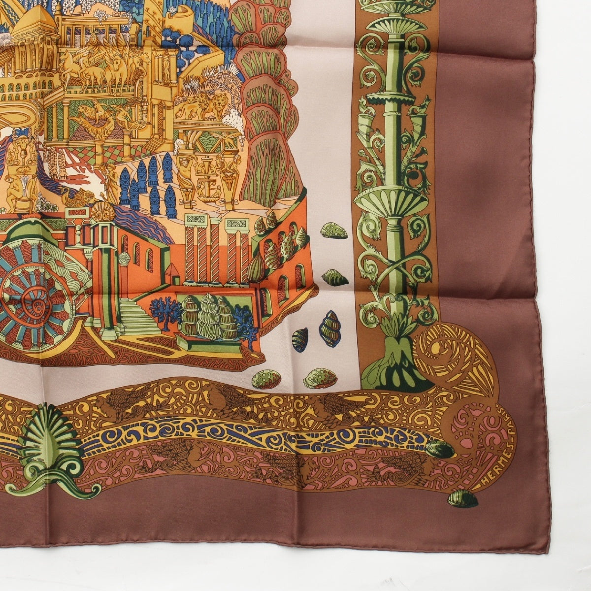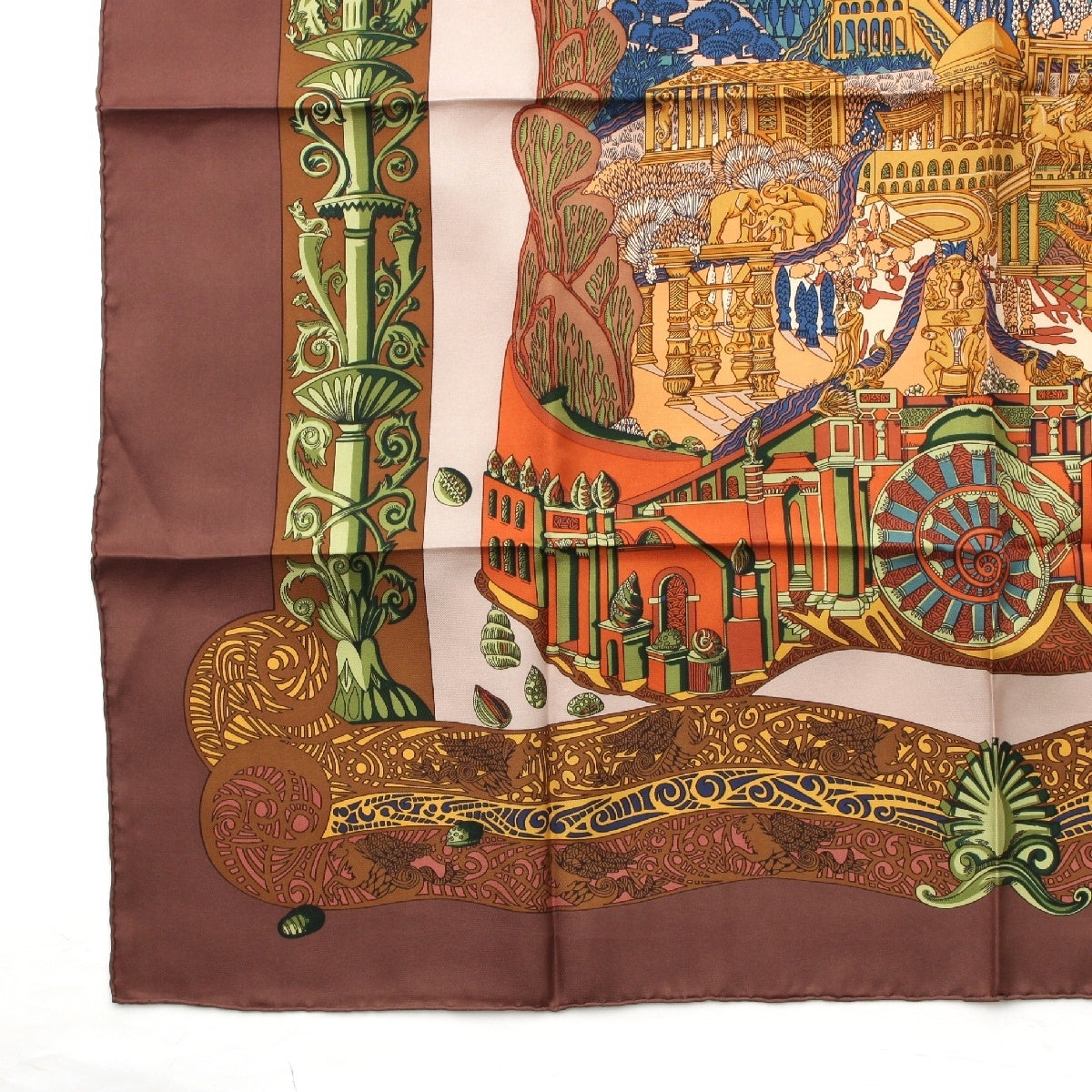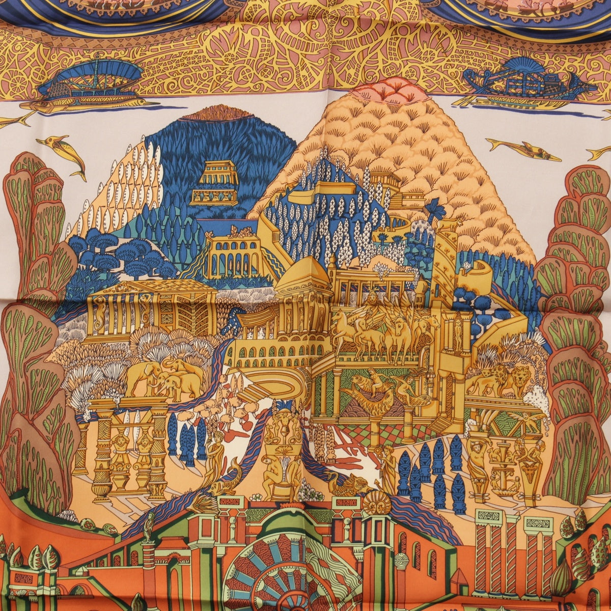 HERMES Calle 90 silk L'ATLANTIDE Atlantis Continent scarf Animal Landscape Brown