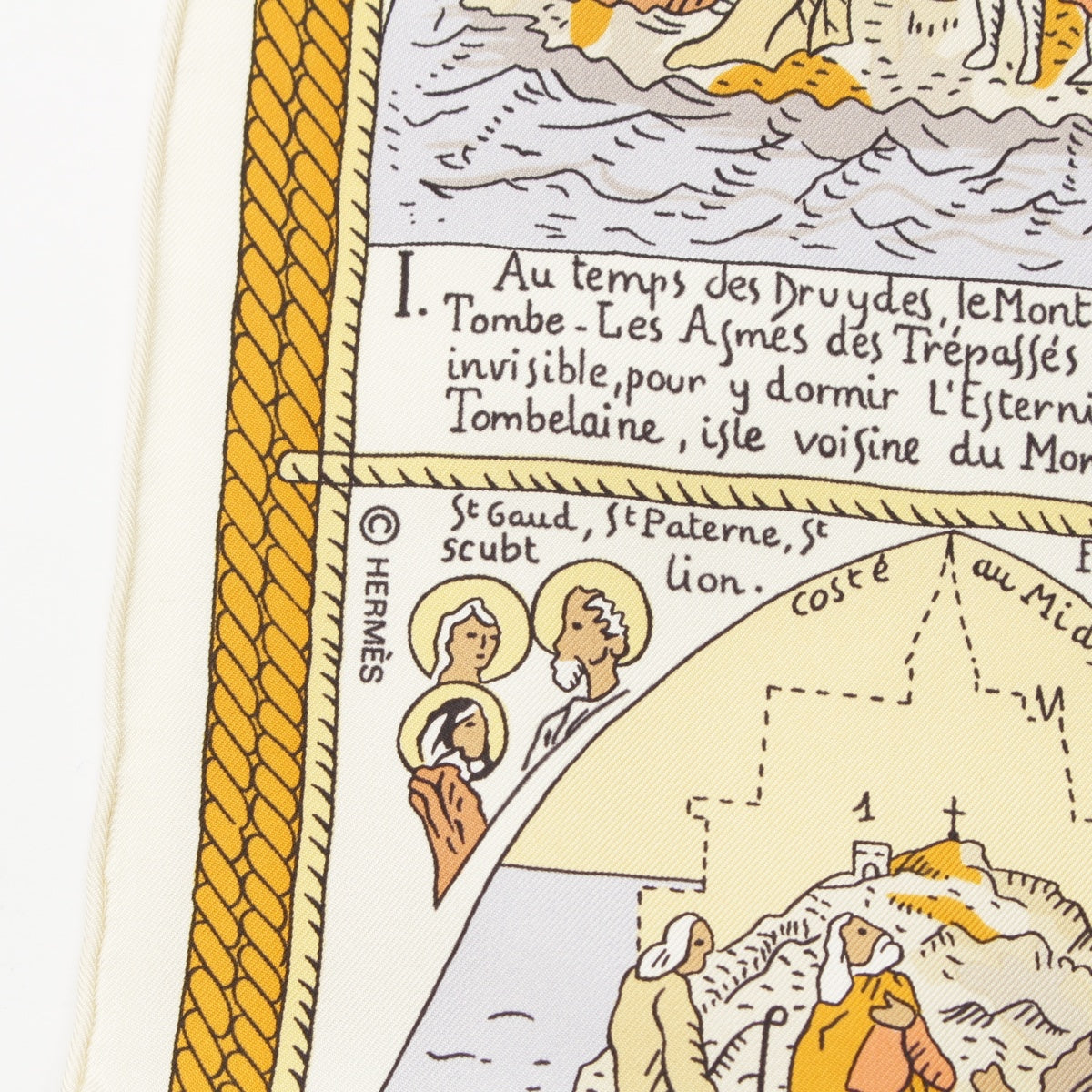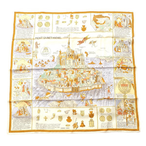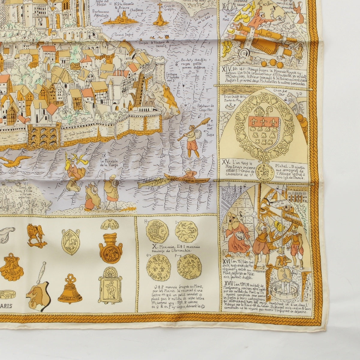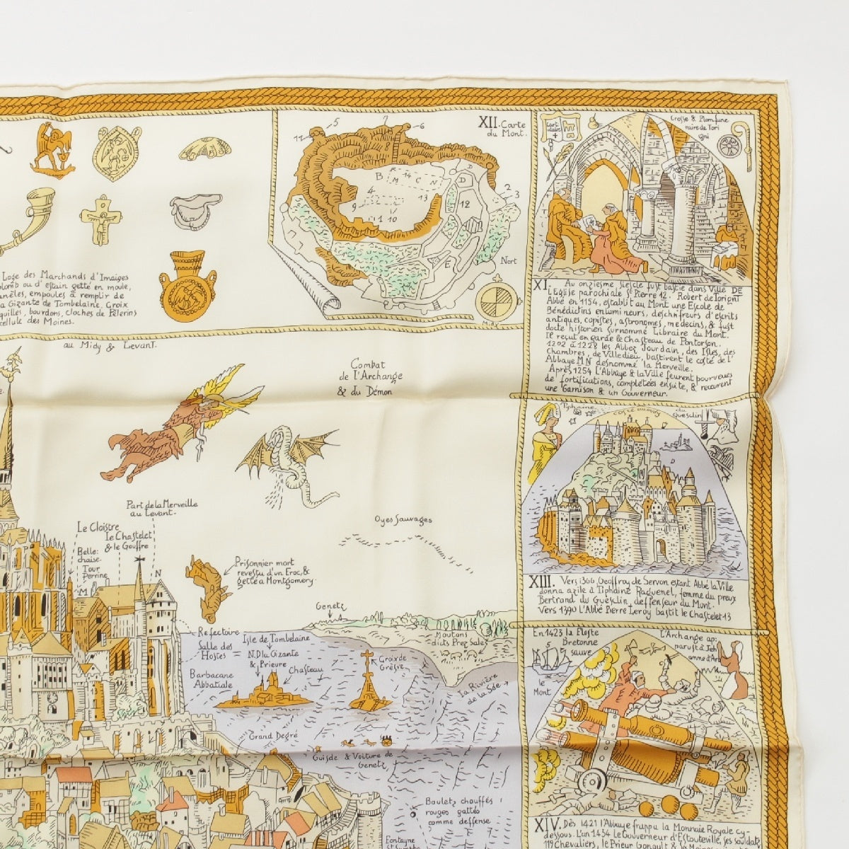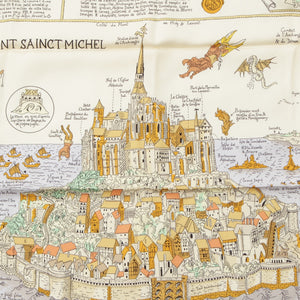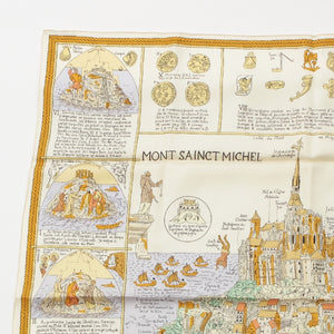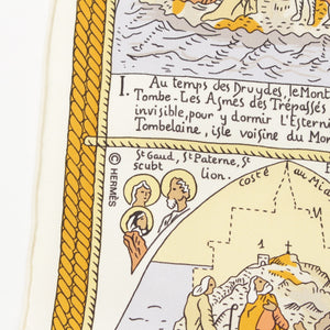 HERMES Carre 90 MONT SAINCT MICHEL silk scarf Beige cream