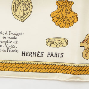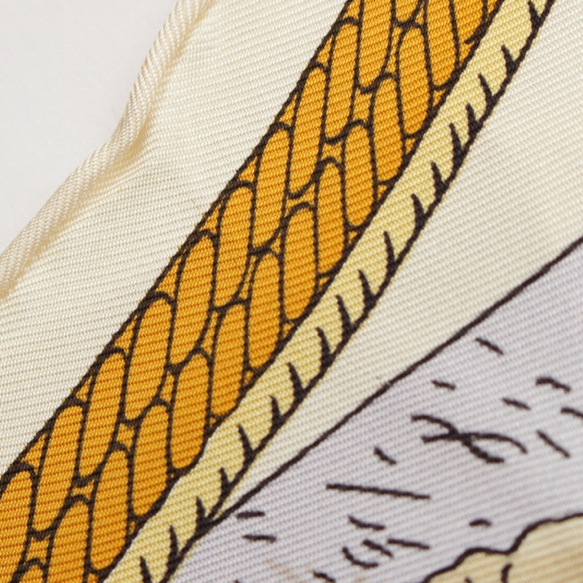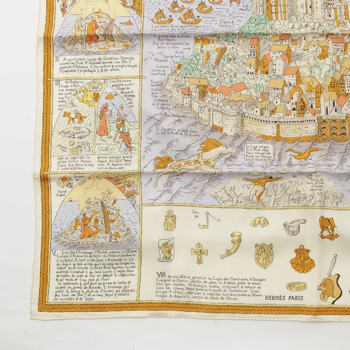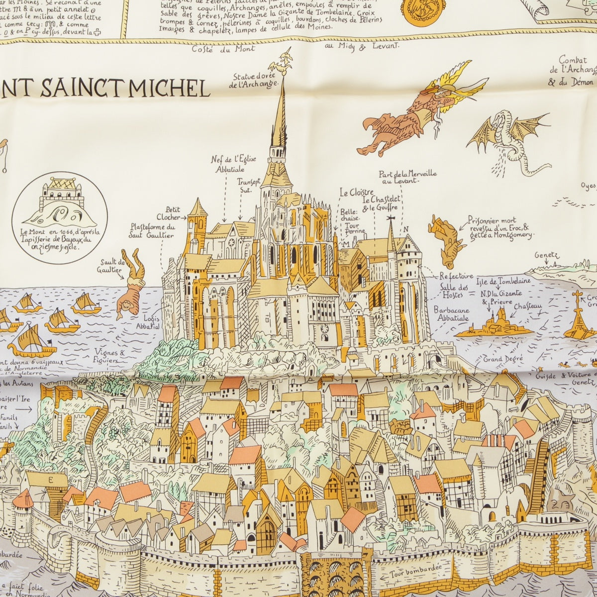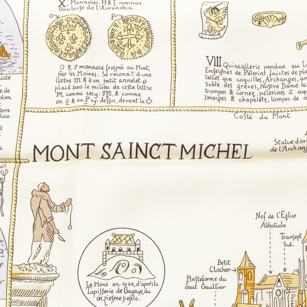 HERMES Carre 90 MONT SAINCT MICHEL silk scarf Beige cream