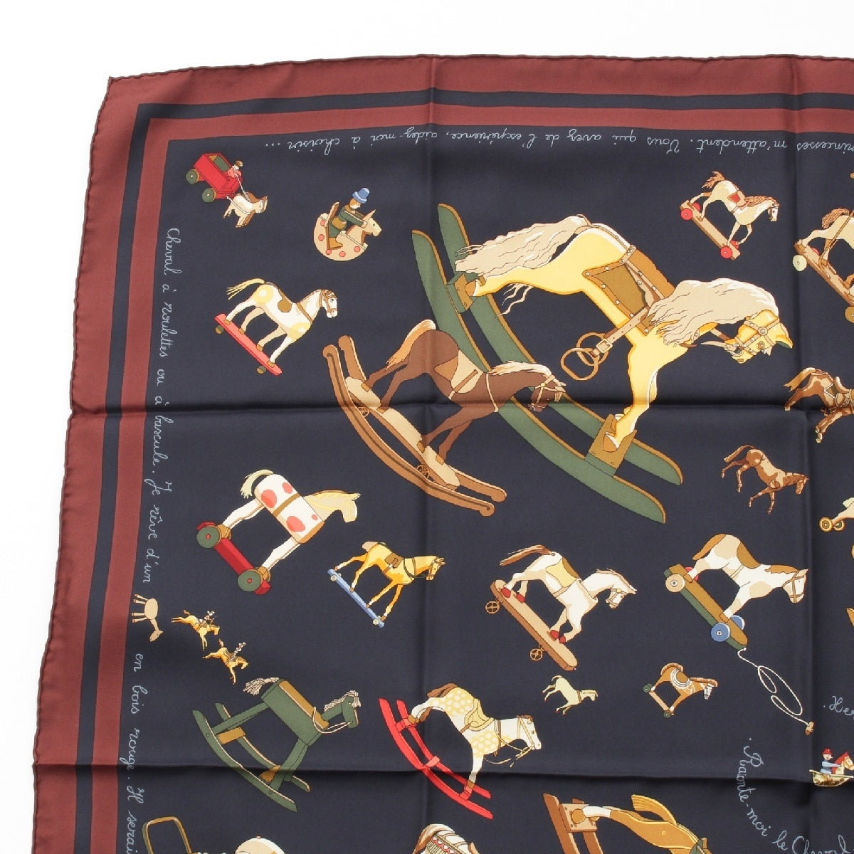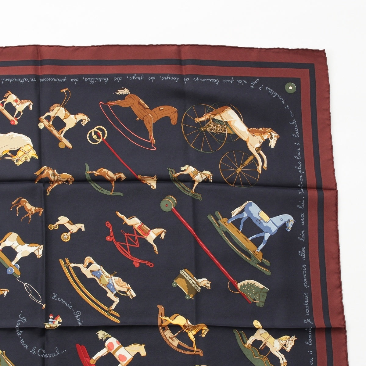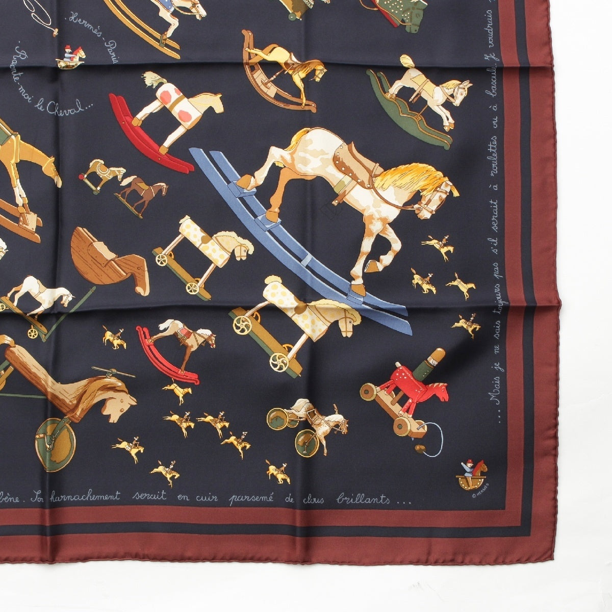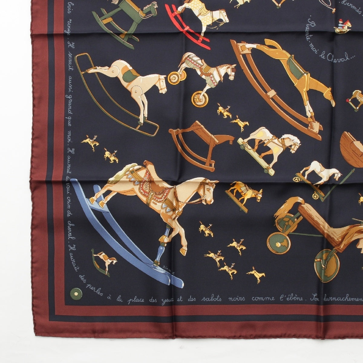 HERMES silk Carre 90 Raconte moi Le Cheval Talking about horses scarf Black x brown