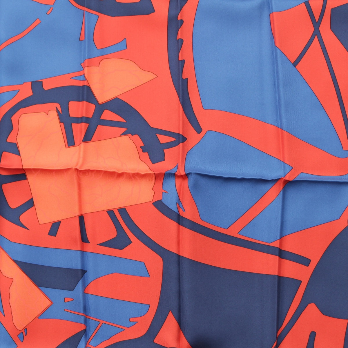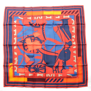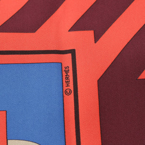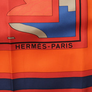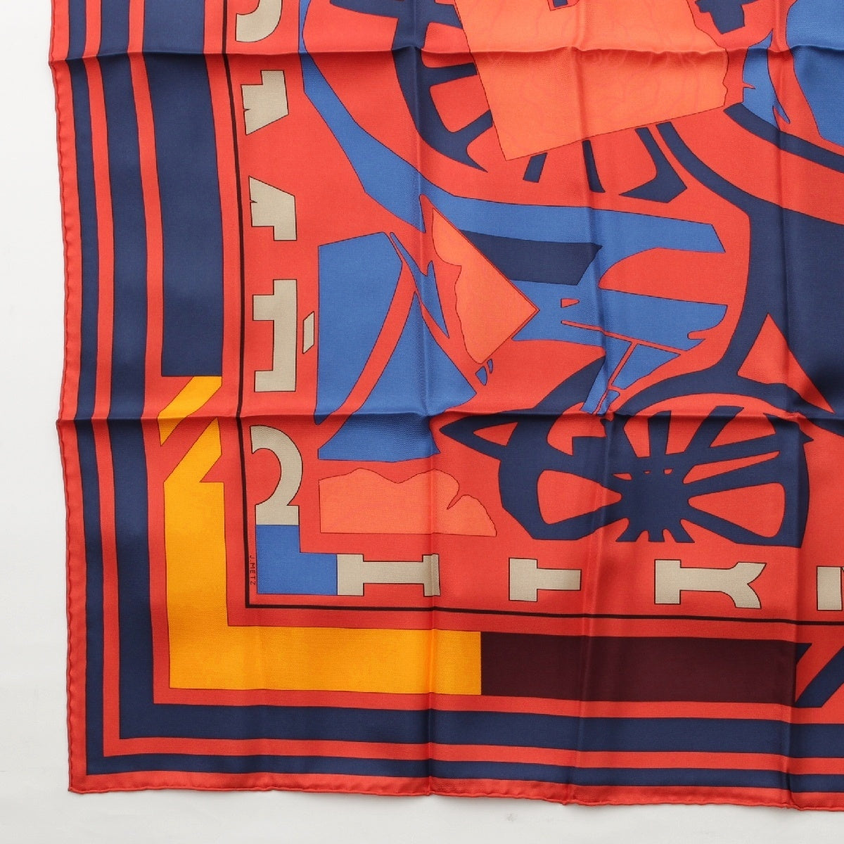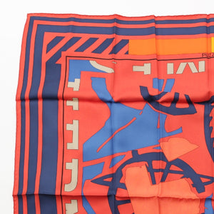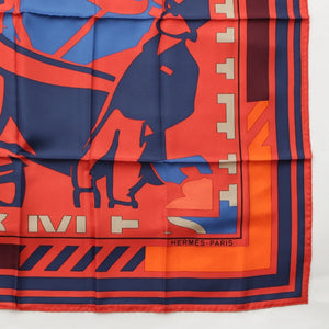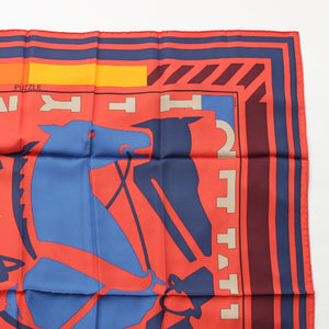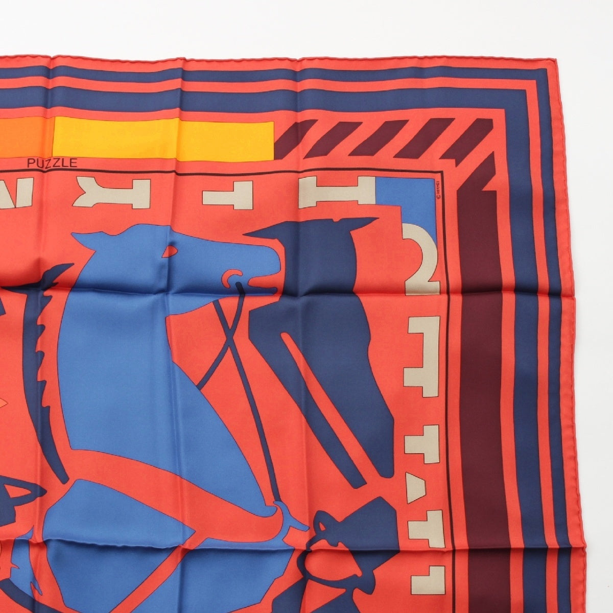 HERMES Calle 90 silk PUZZLE puzzle scarf Horse horse motif Red x navy