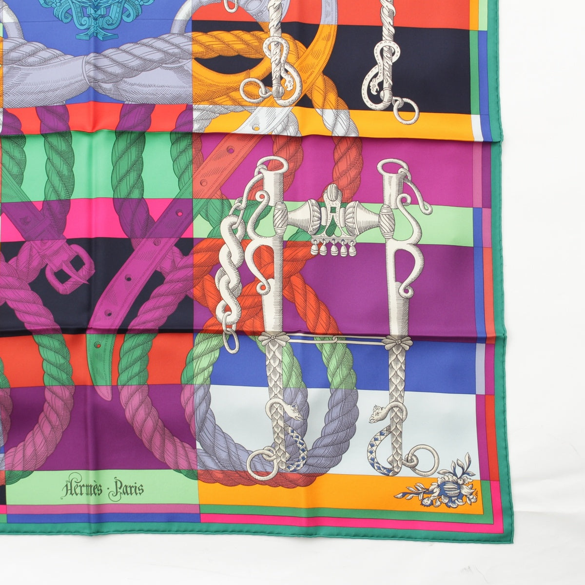 HERMES Calle 90 silk DELLA CAVALLERIA scarf multicolor